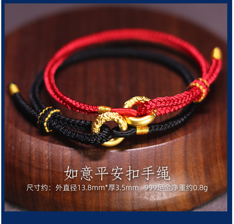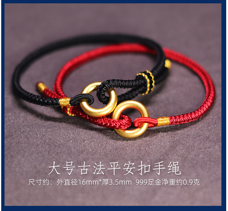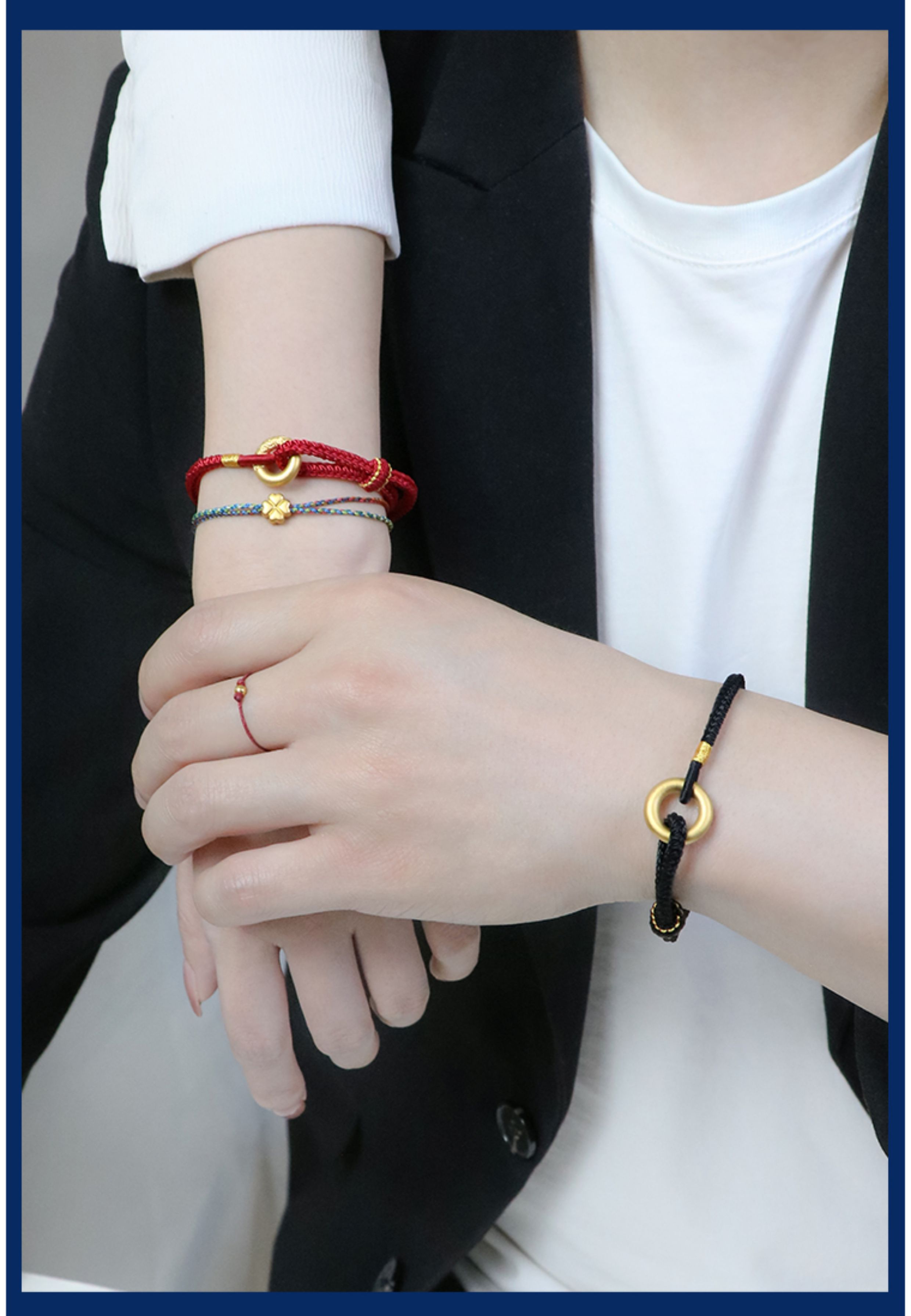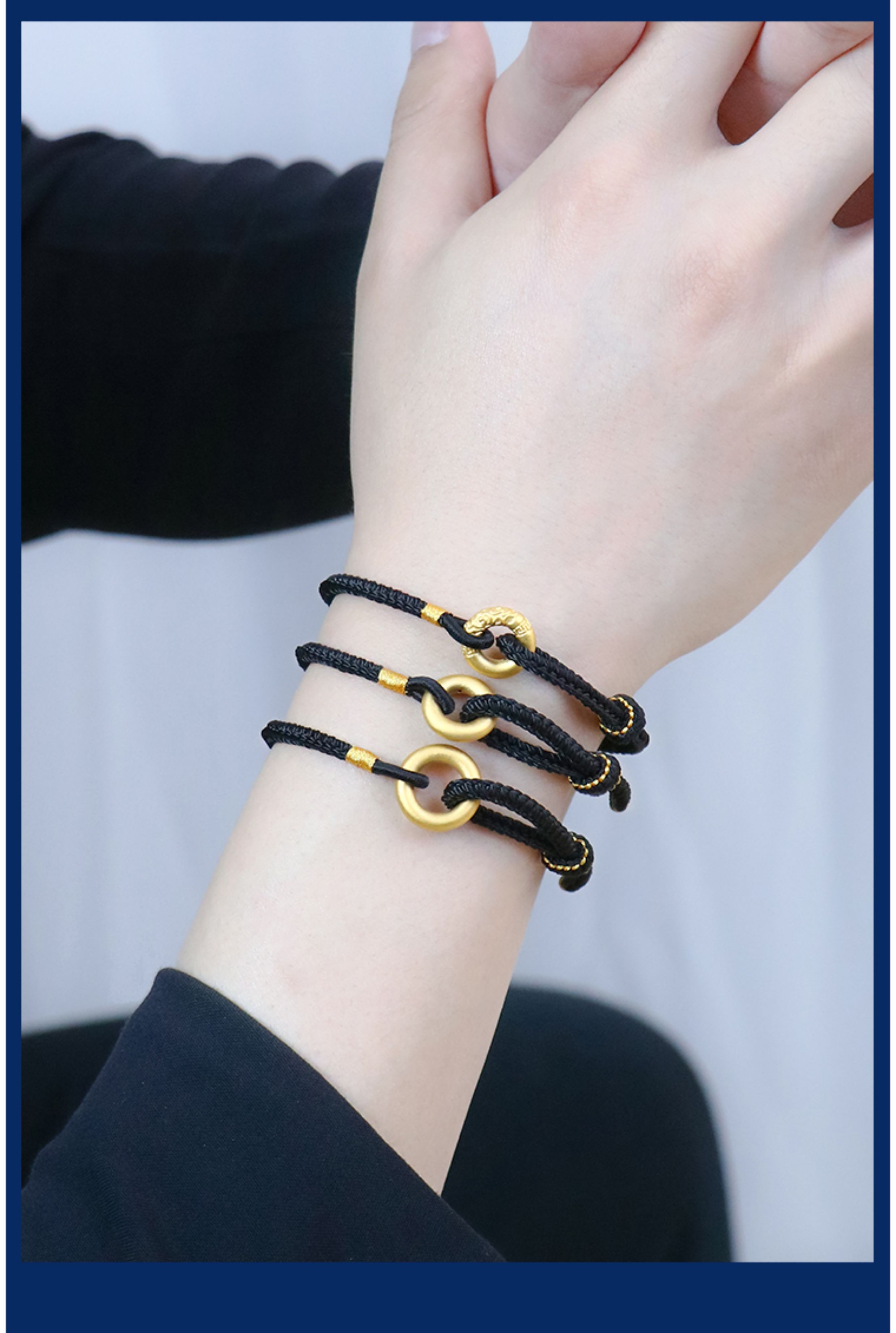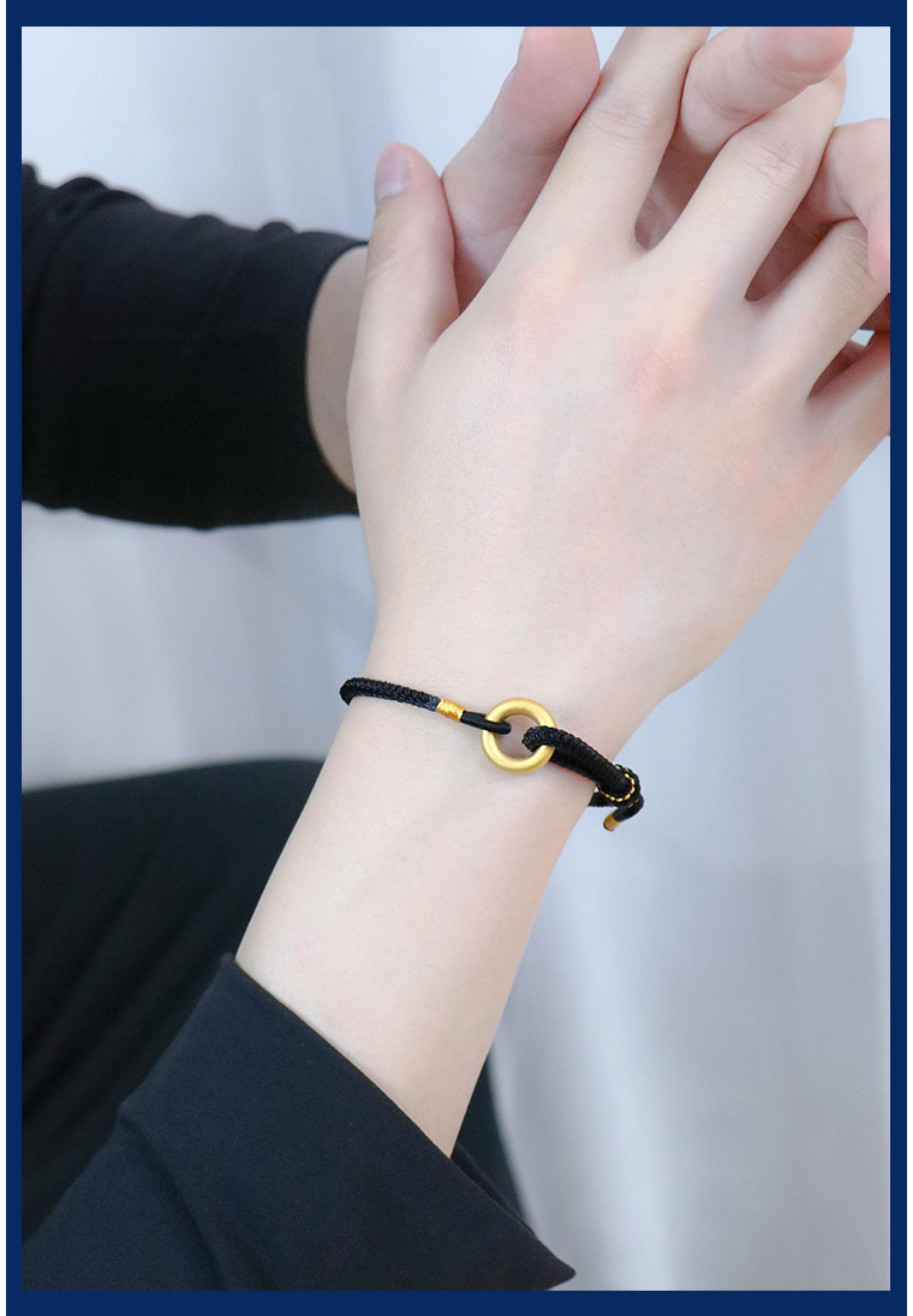 Gold Bracelet with Peace Charm for Men and Women, Handmade Woven Red String Gift, Small Weight Pure Gold 999 Couple Bracelet