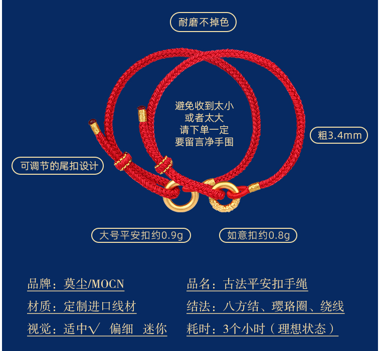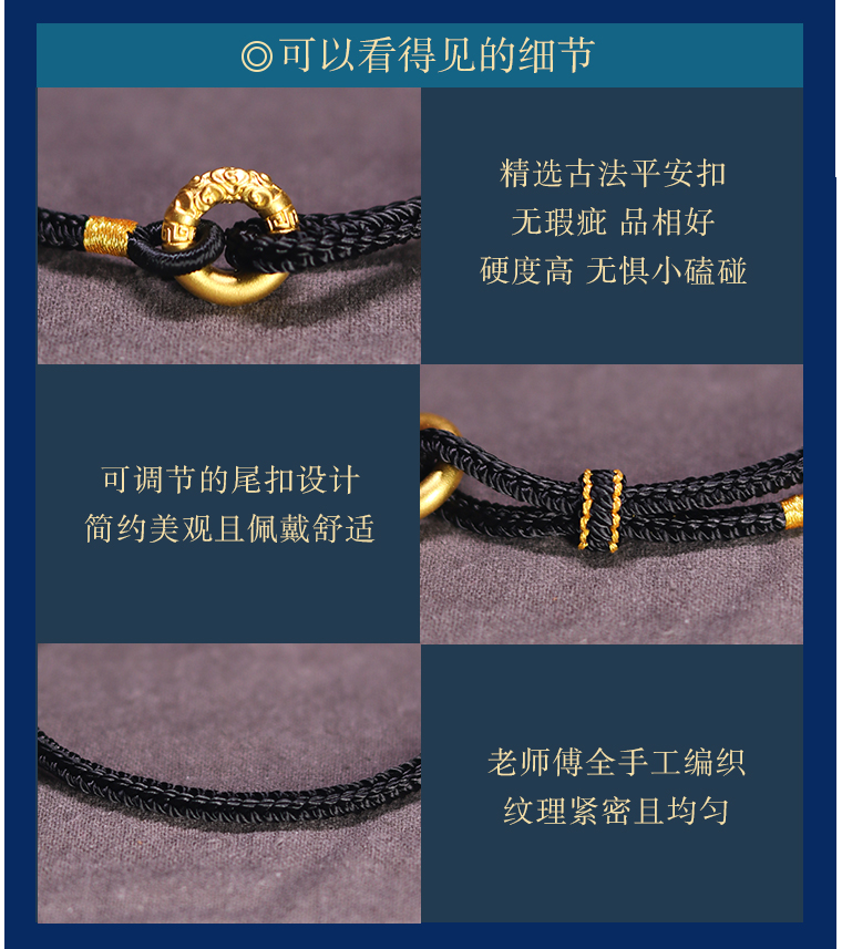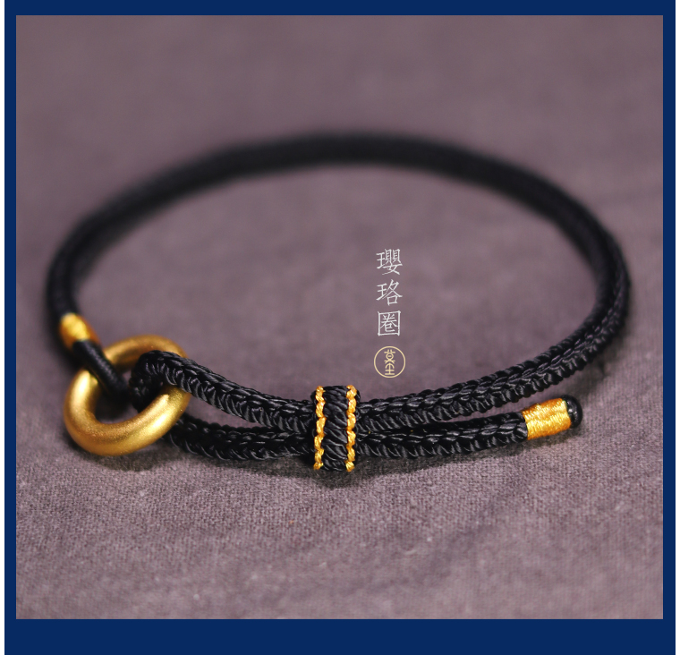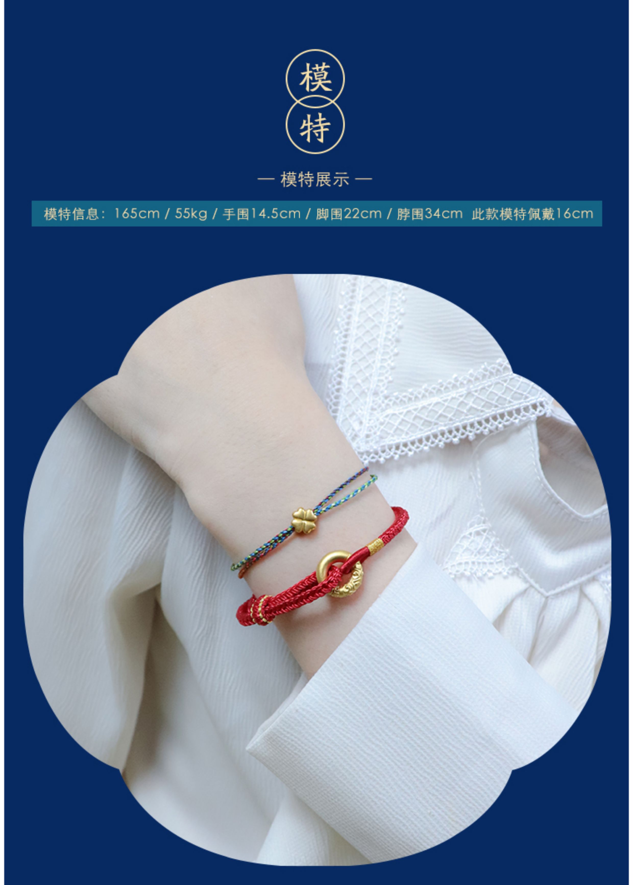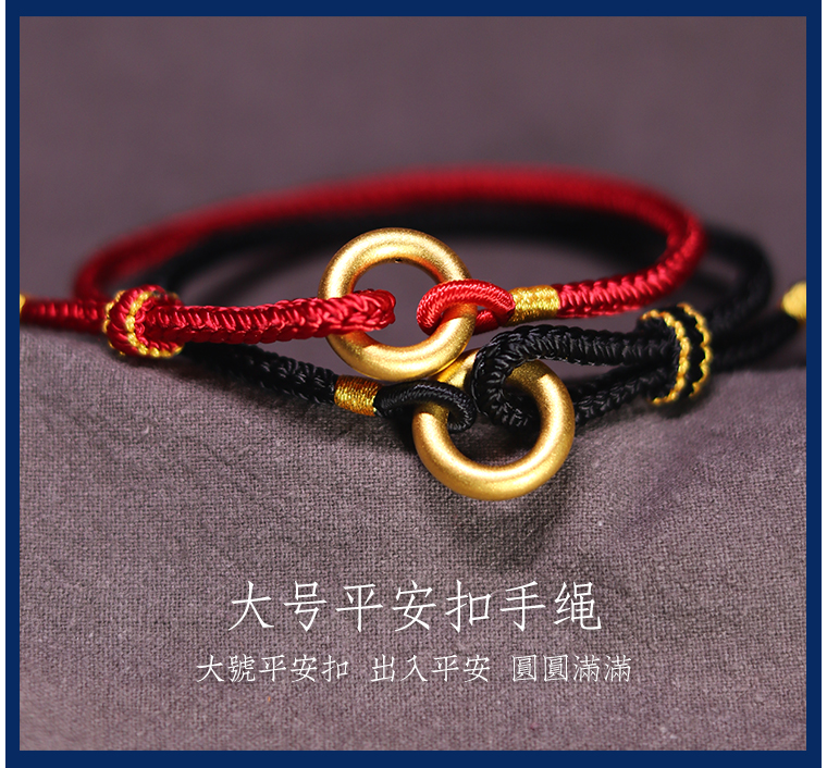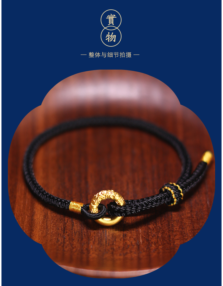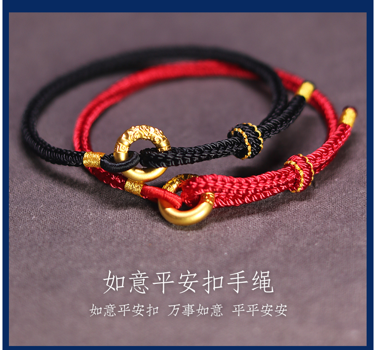 Gold Bracelet with Peace Charm for Men and Women, Handmade Woven Red String Gift, Small Weight Pure Gold 999 Couple Bracelet