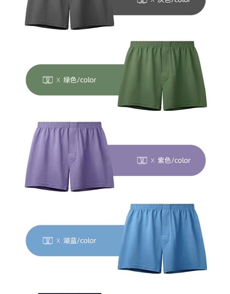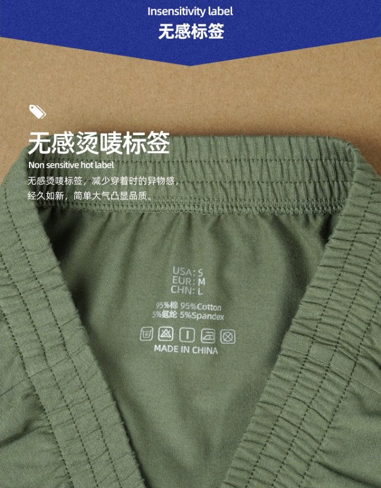Loose Military Green Men's Underwear, Boys' Pure Cotton Large Size Boxer Shorts, Military Style Flat-Angle Pants, Mid-Waist Sleep Pants, Home Style