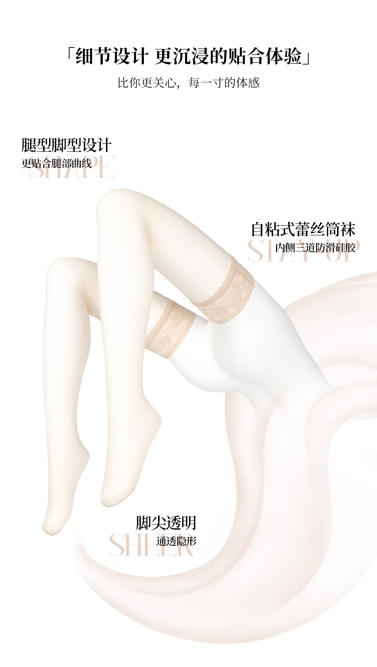 Lai Mi "Silky 0.01" sexy Long Tube Stockings Women's Spring & Fall Thin Retro Lace Non Slip Knee High Knee Socks