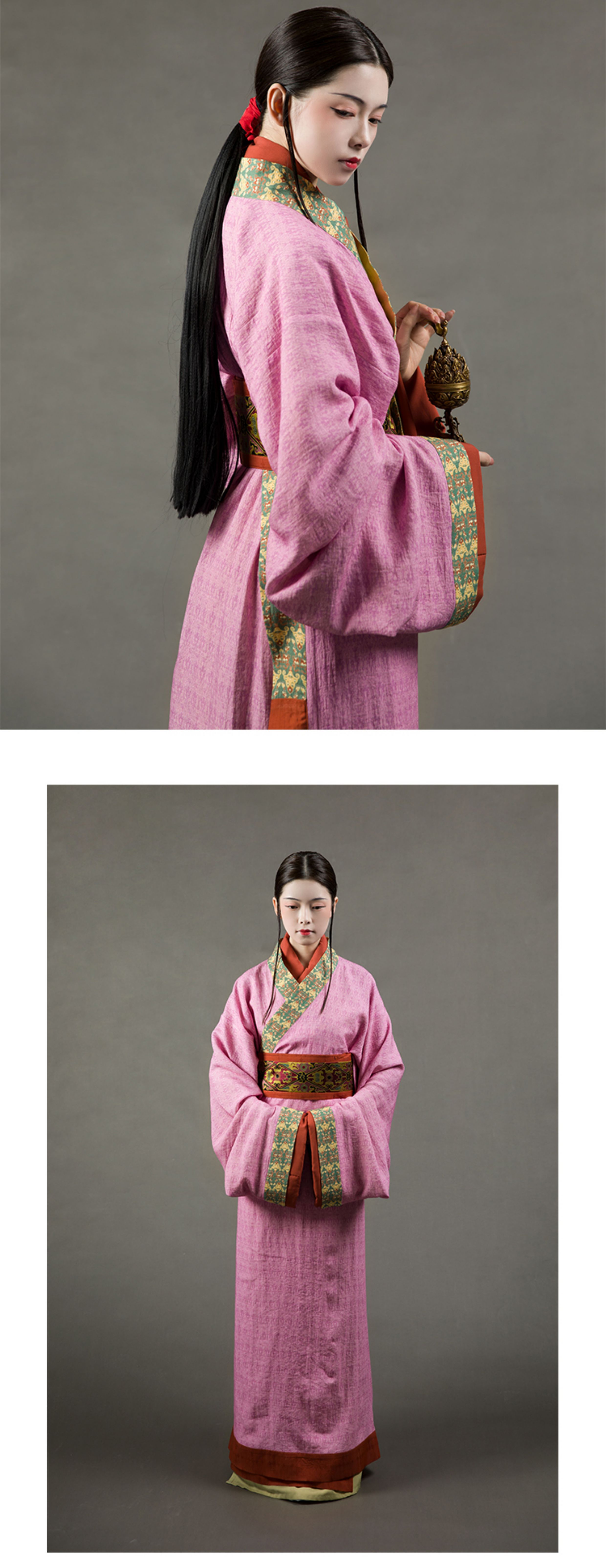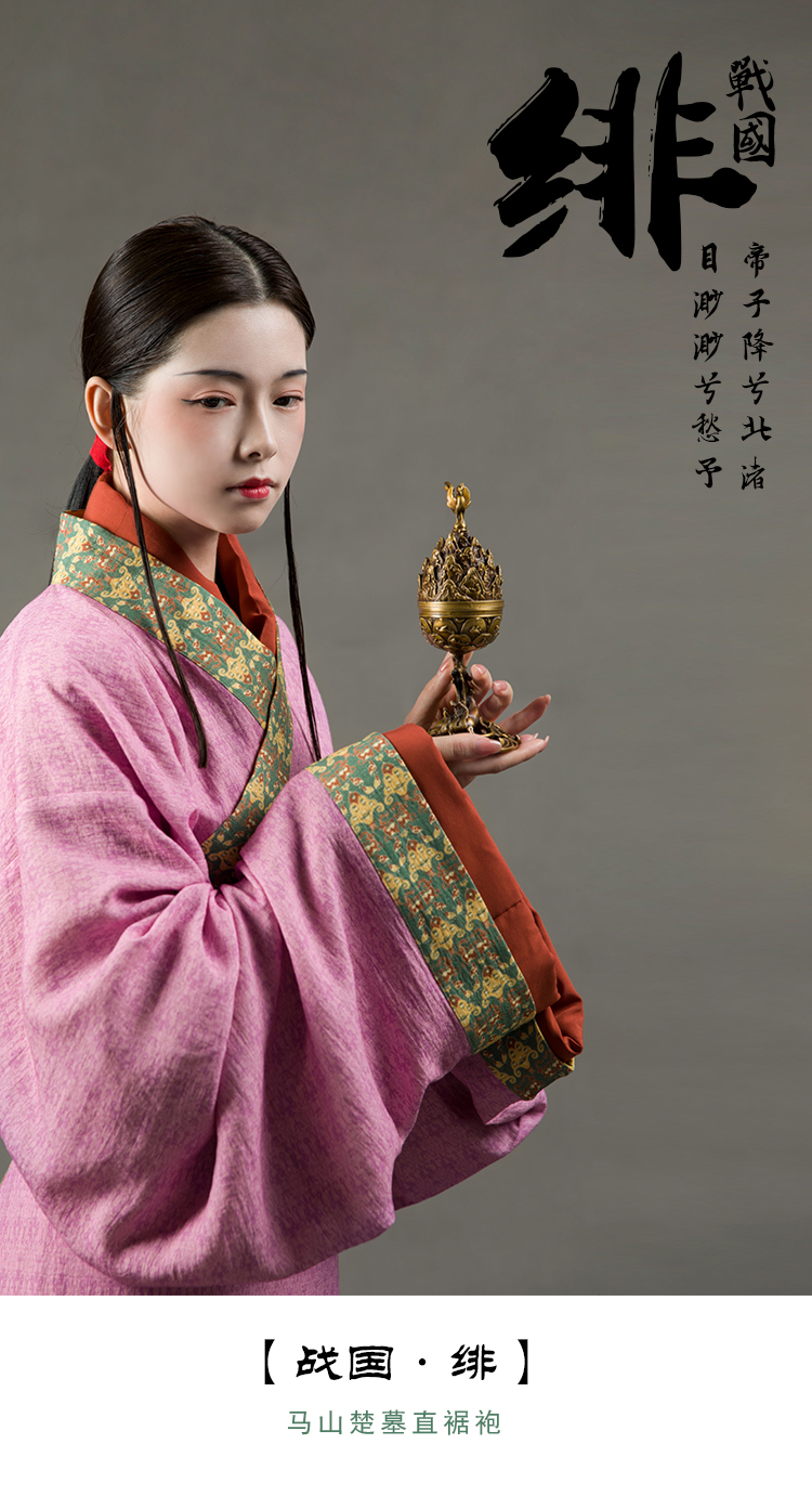 [Jingqi] Spring and Autumn Warring States First Qin, Ma, Mountain, Chu Tomb, Restored Straight-Haired Women’S Printed Han Dynasty - Scarlet (Daily Edition