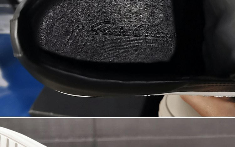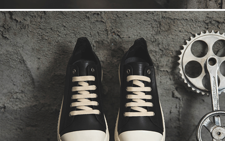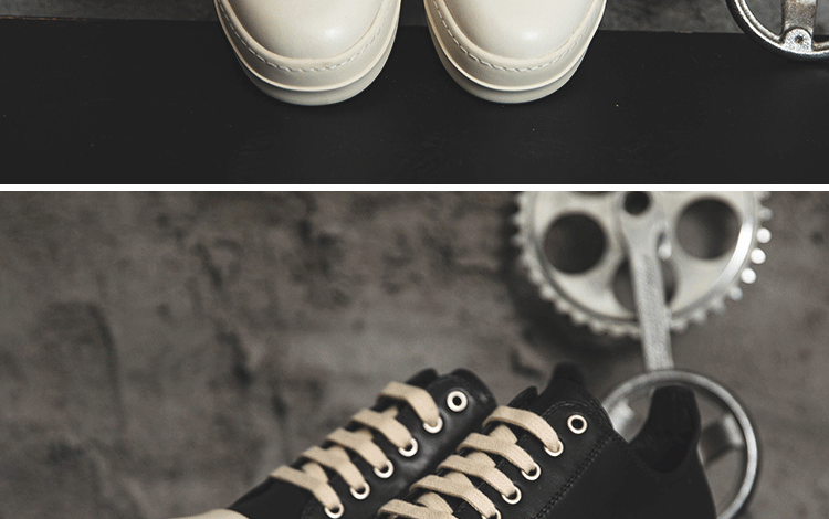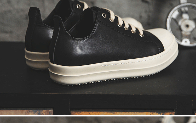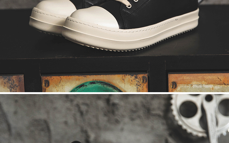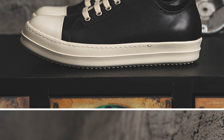 Ro Low-Top Genuine Leather Men's Shoes with Milky White Soles, Thick Soles, Height-Increasing Lace-Up Black and White Couple Shoes, Fashionable Versatile Sneakers for Women