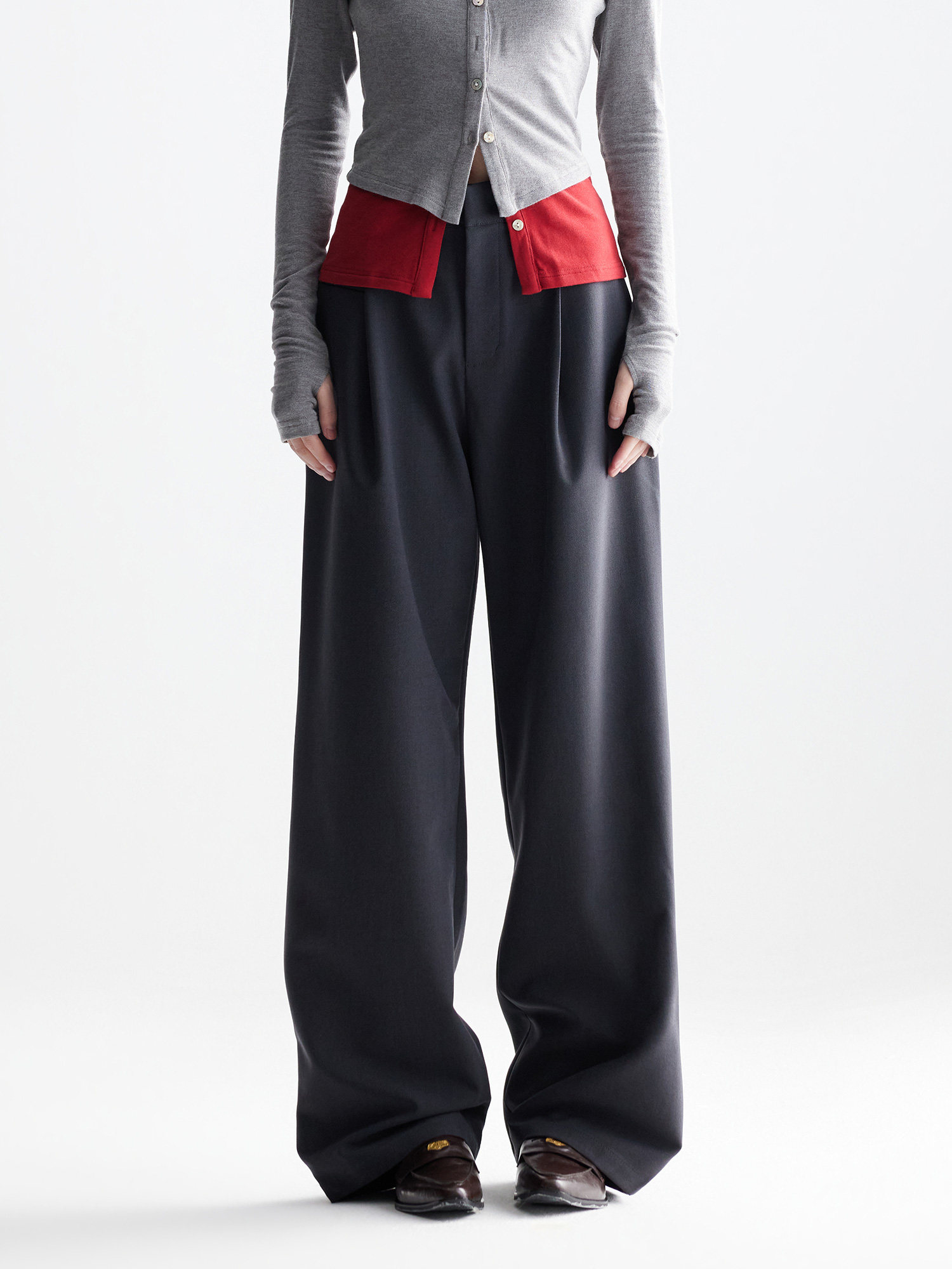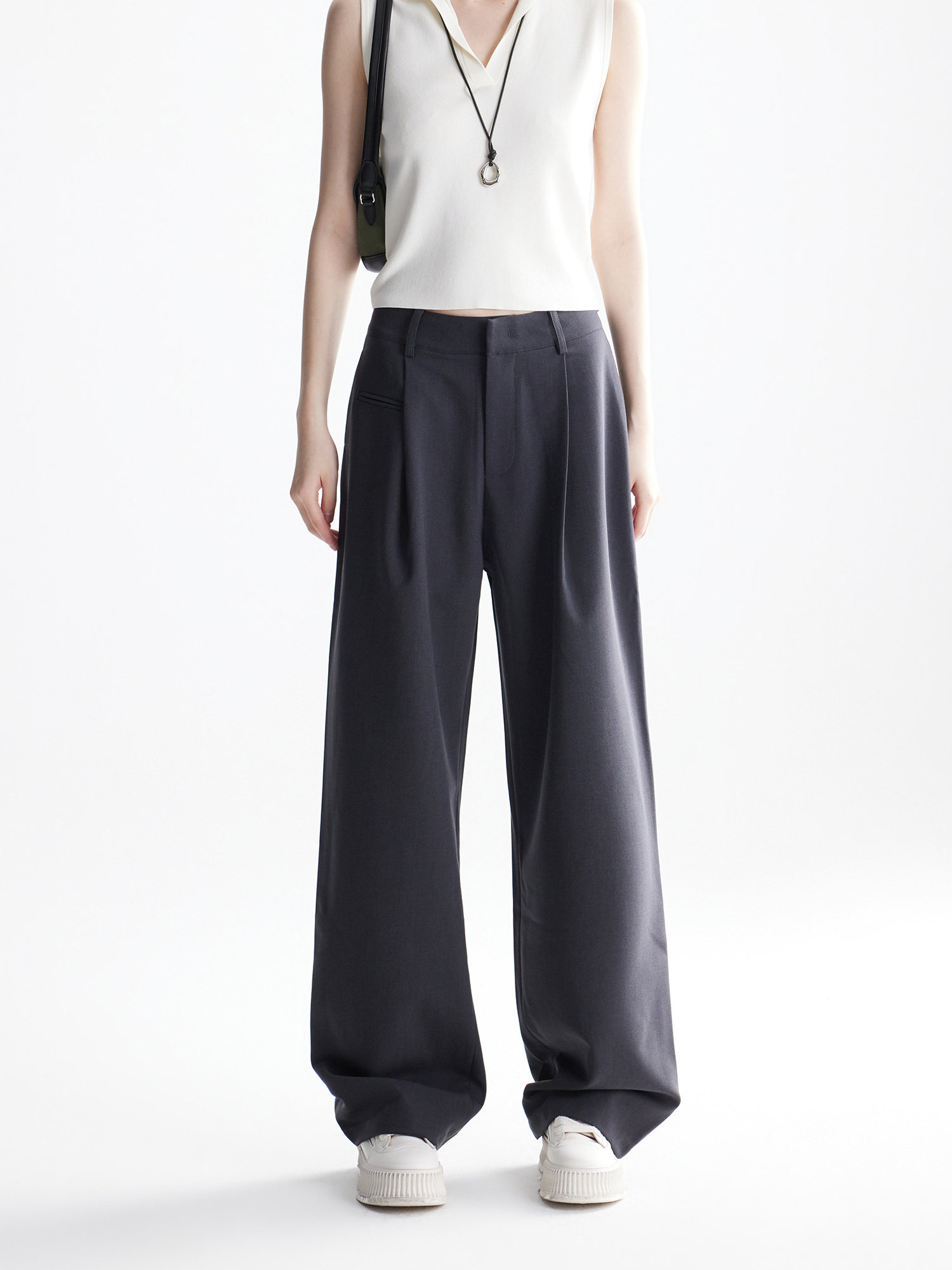 Londlond 2026 Suit Pocket Design Casual Black Suit Pants High-Waisted Slimming Wide-Leg Suit Pants