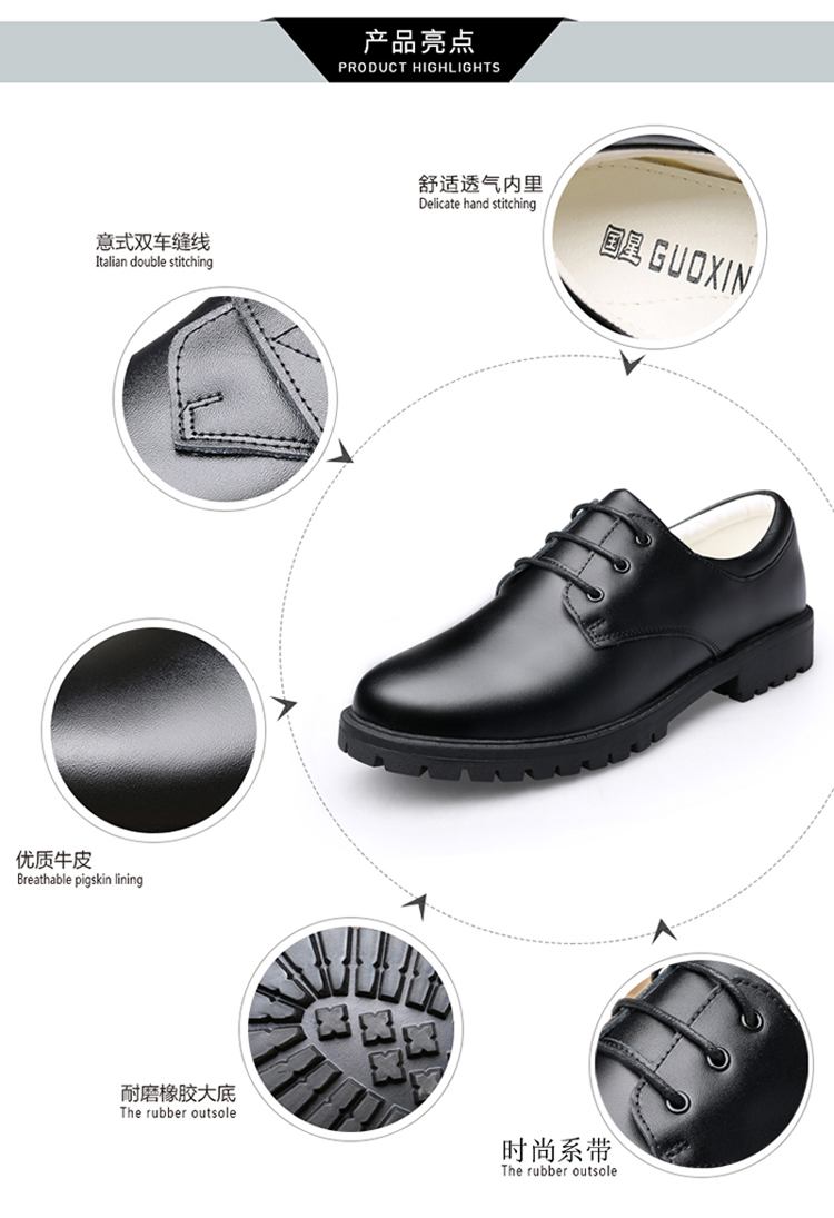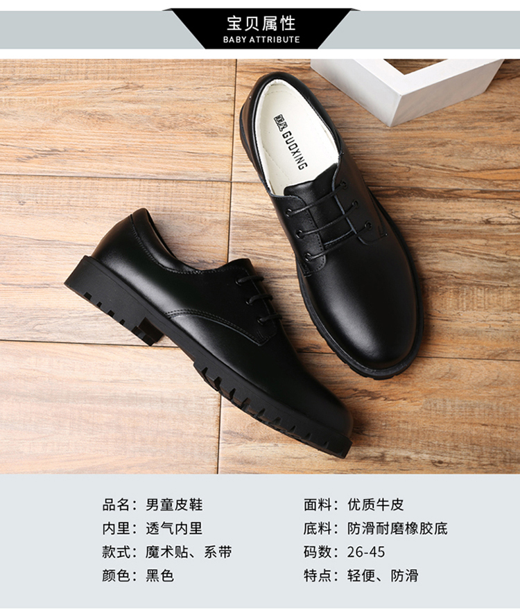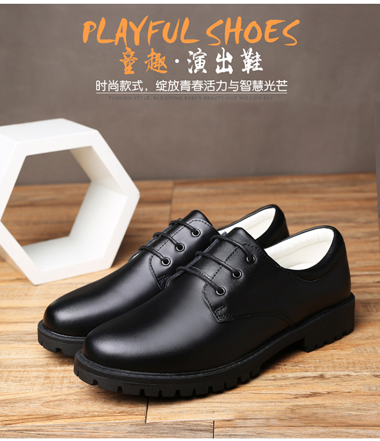 Boys' Large Size Leather Shoes for Teenagers, Casual Genuine Leather Shoes for Junior High School Students, Black Leather Shoes with Soft Soles for Performances