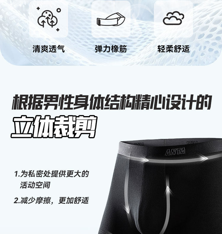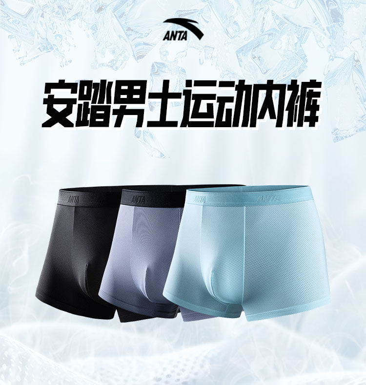 Anta Sports Underwear Three-Pack Men's Lightweight Ice Silk Skin-Friendly Breathable Quick-Drying Anti-Odor Running Briefs Mid-Waist Pants