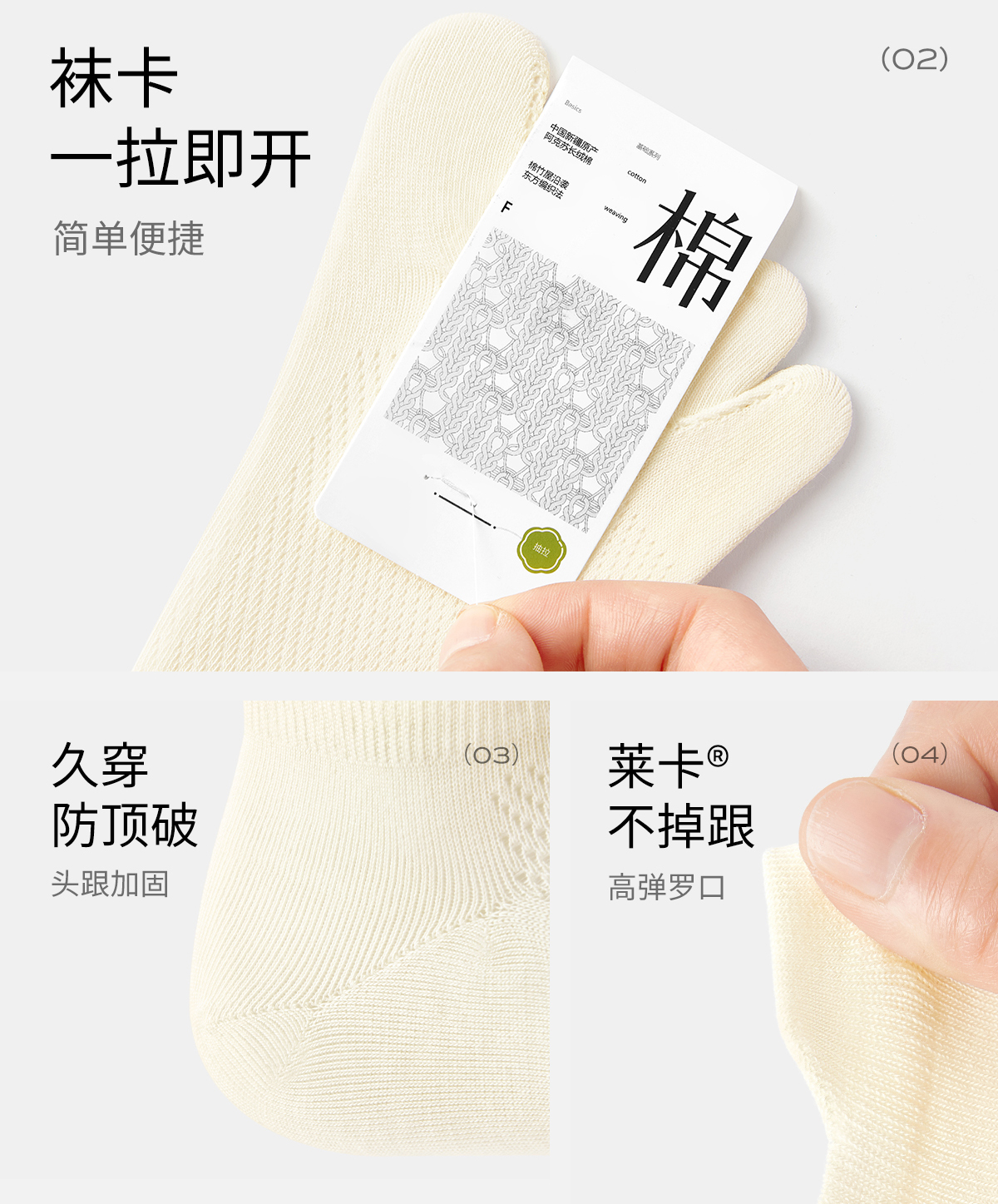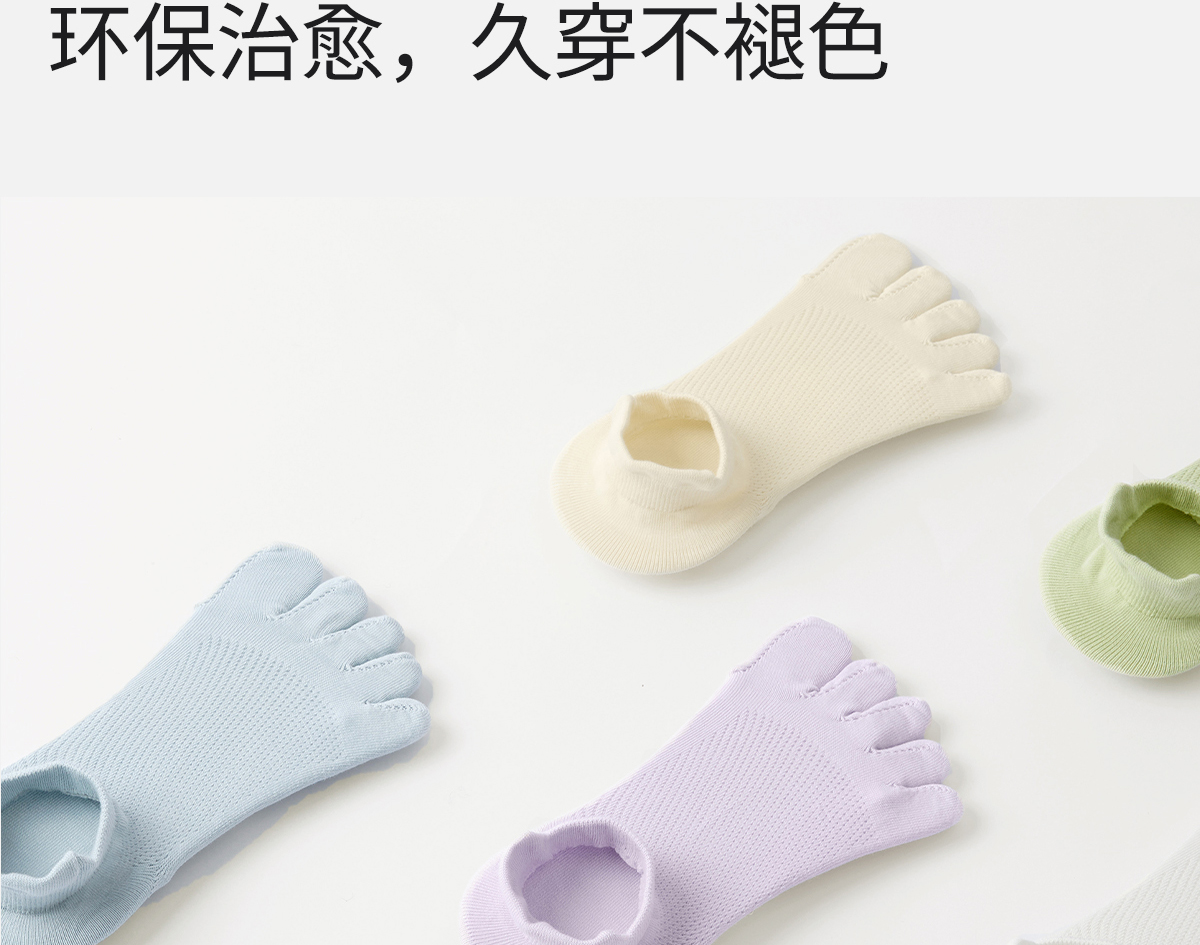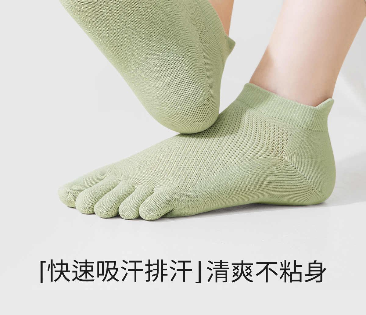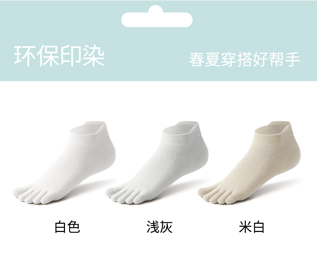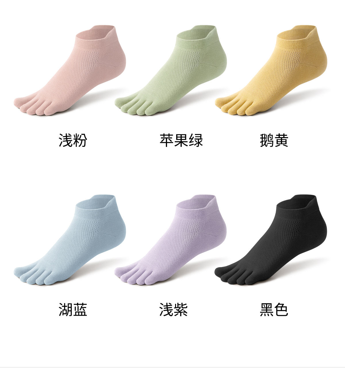Cotton Bamboo Five-Toe Socks for Women, Spring and Autumn, Pure Cotton Yarn, Breathable, Antibacterial, Deodorant, Sweat-Absorbent, Women's Short Socks