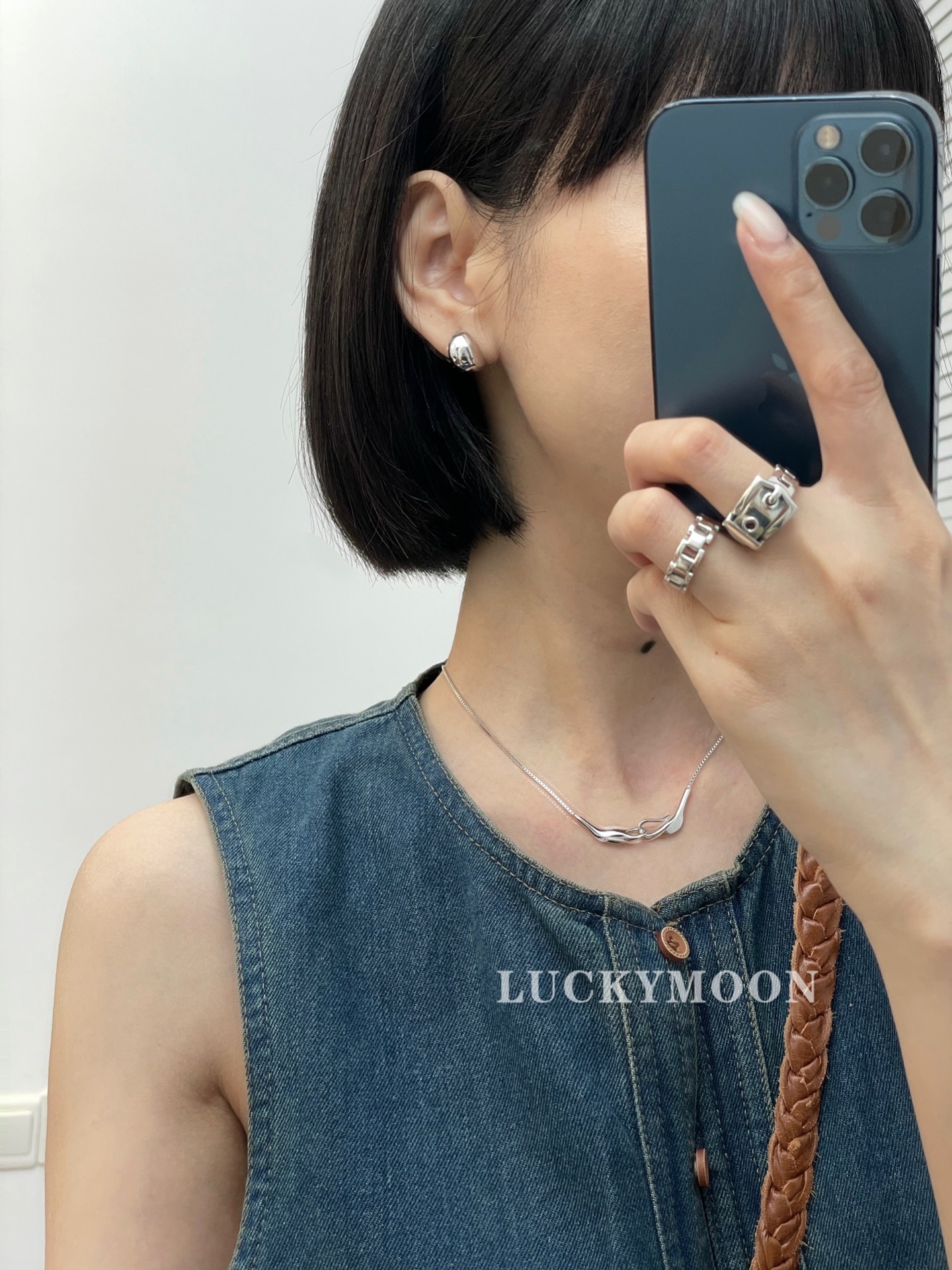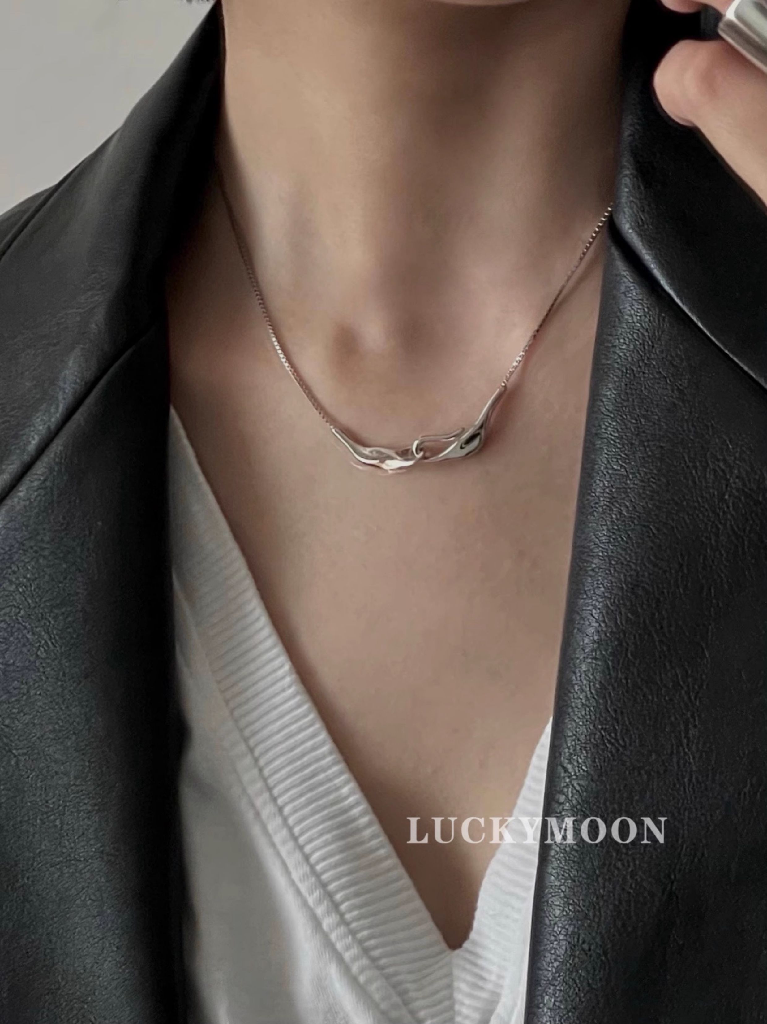 Luckymoon Cool and Stylish Unisex High-End Hook Necklace S925 All-Over Sterling Silver N004