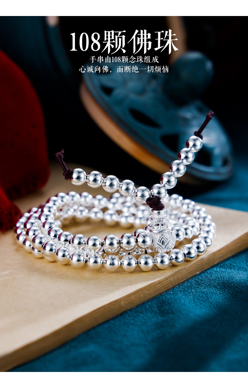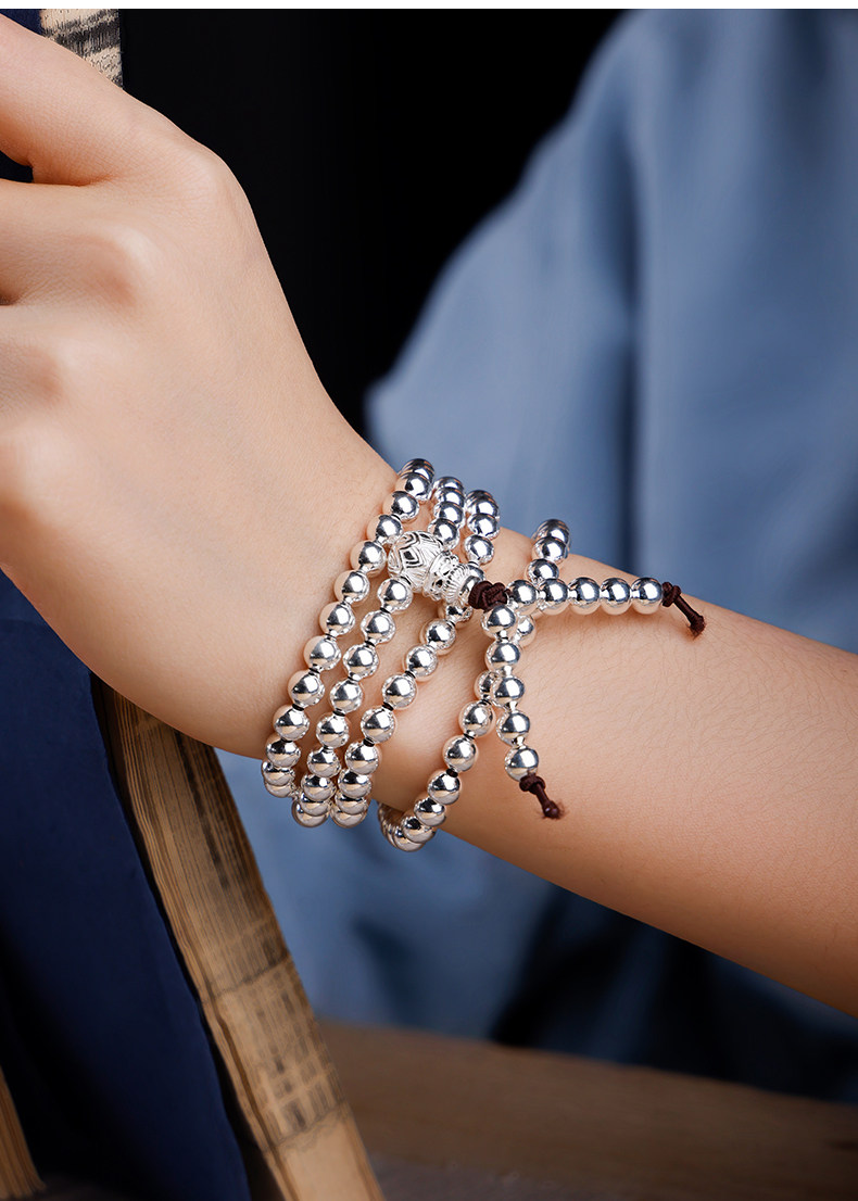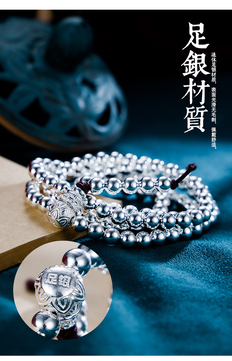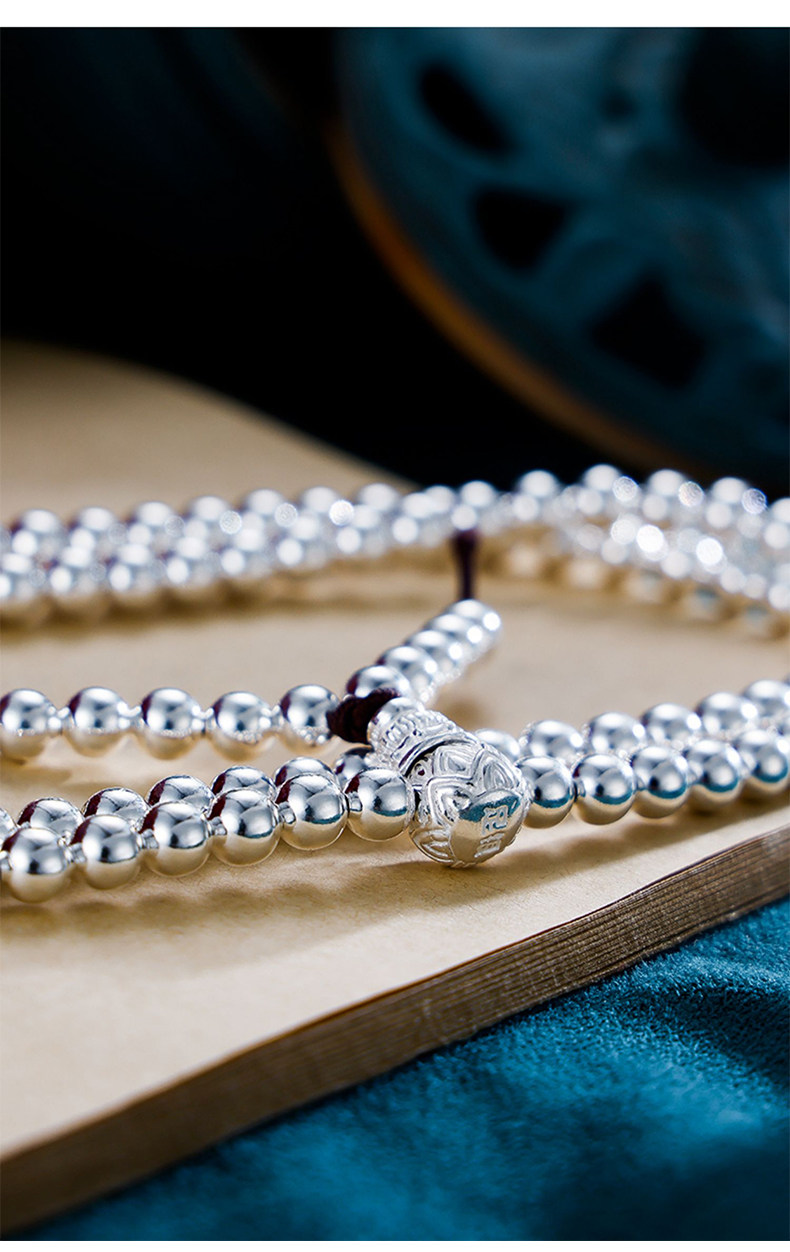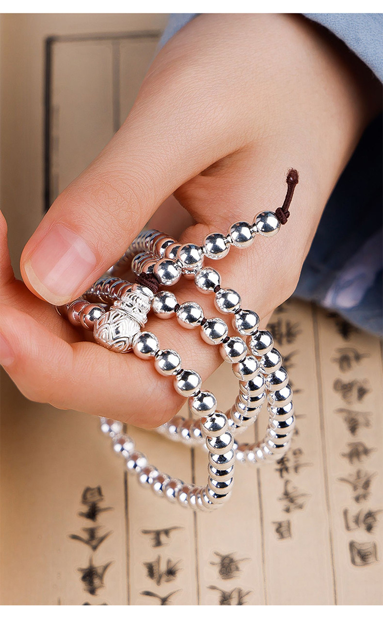 Jiuxi Silver House 999 Pure Silver 108 Beads Silver Bracelet Pure Silver Bracelet for Men and Women Couple Smooth Round Bead Sweater Chain