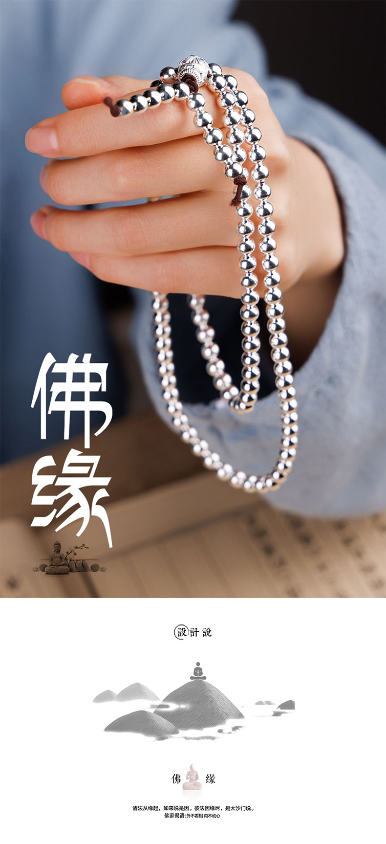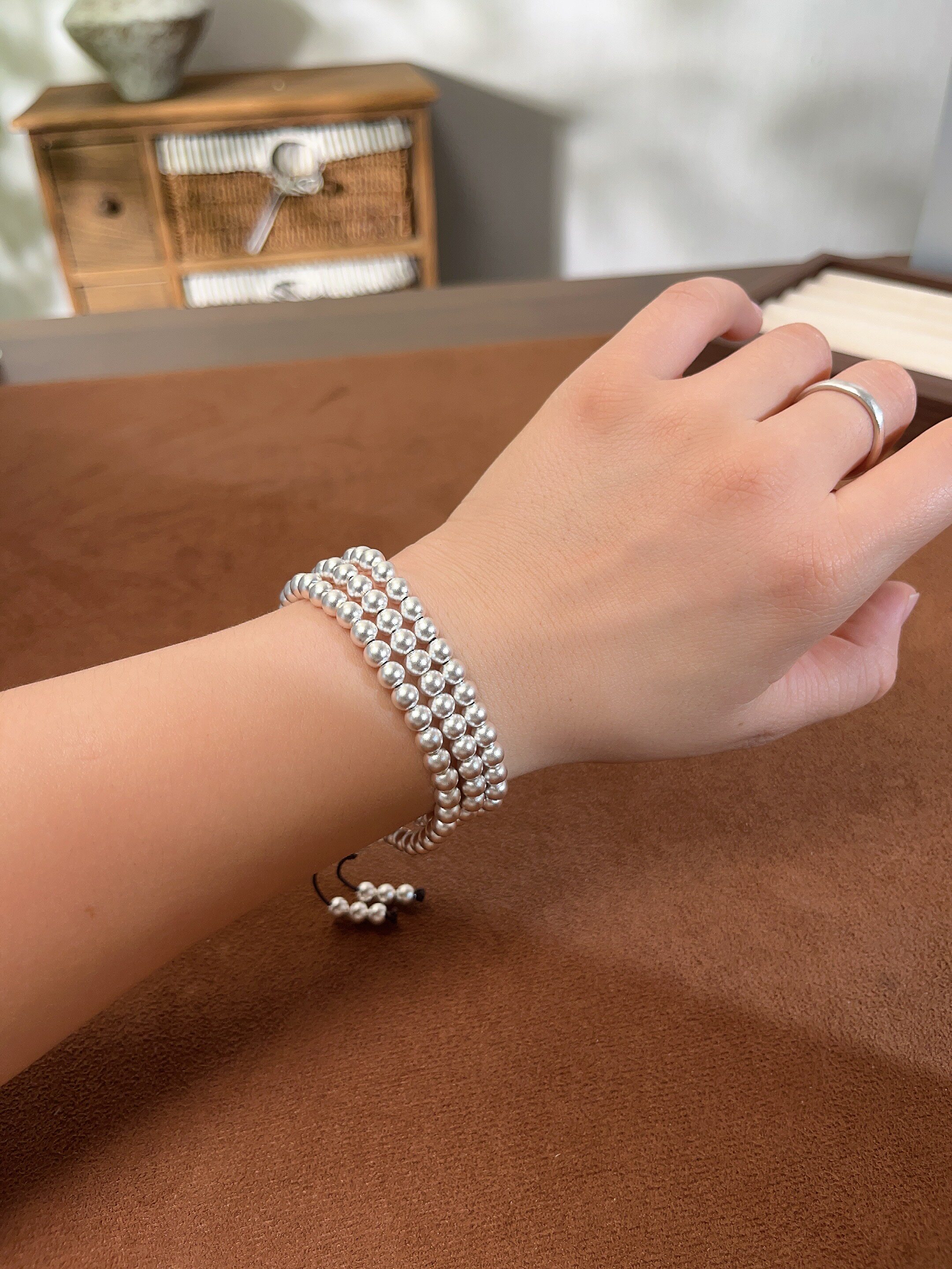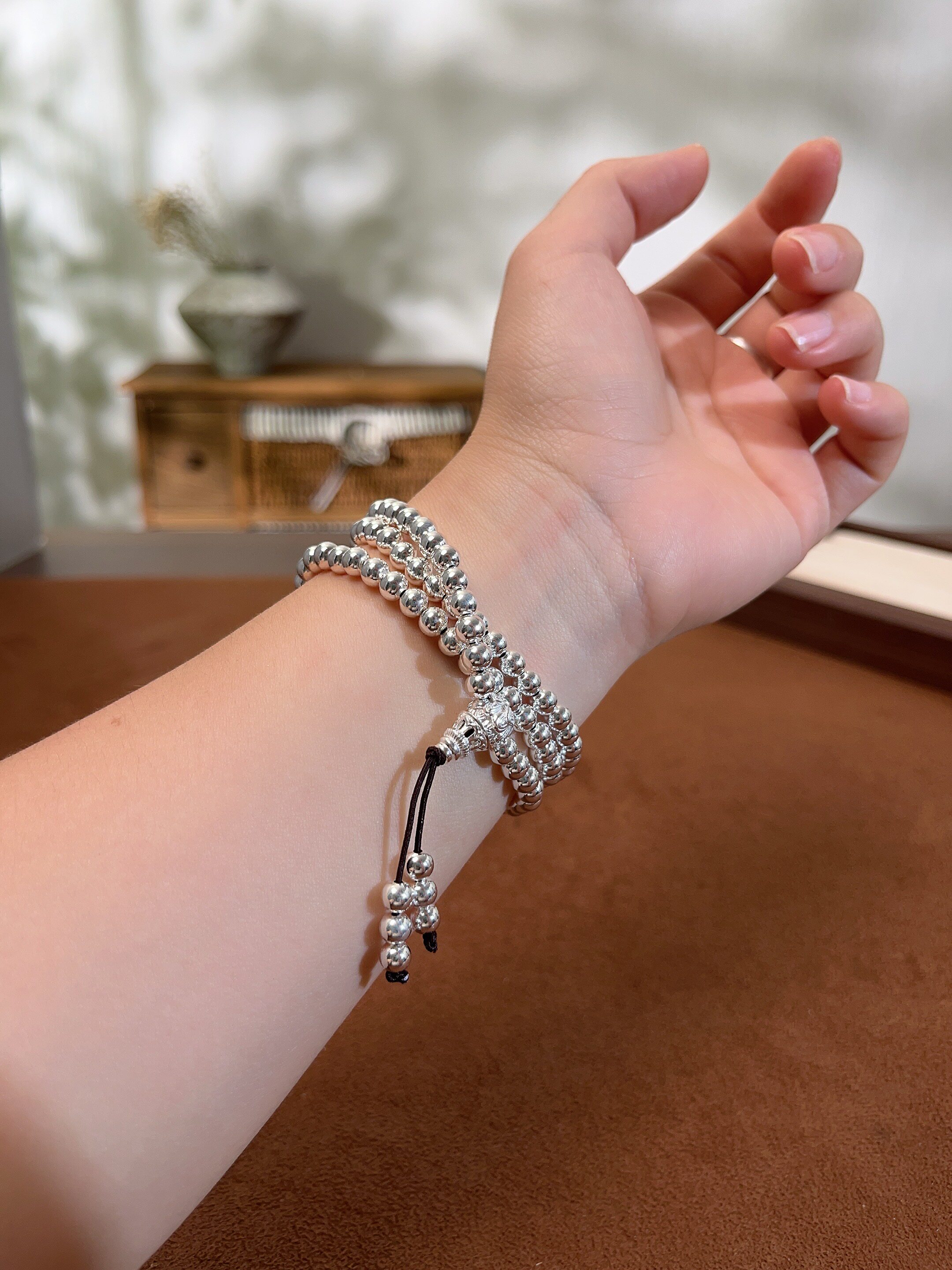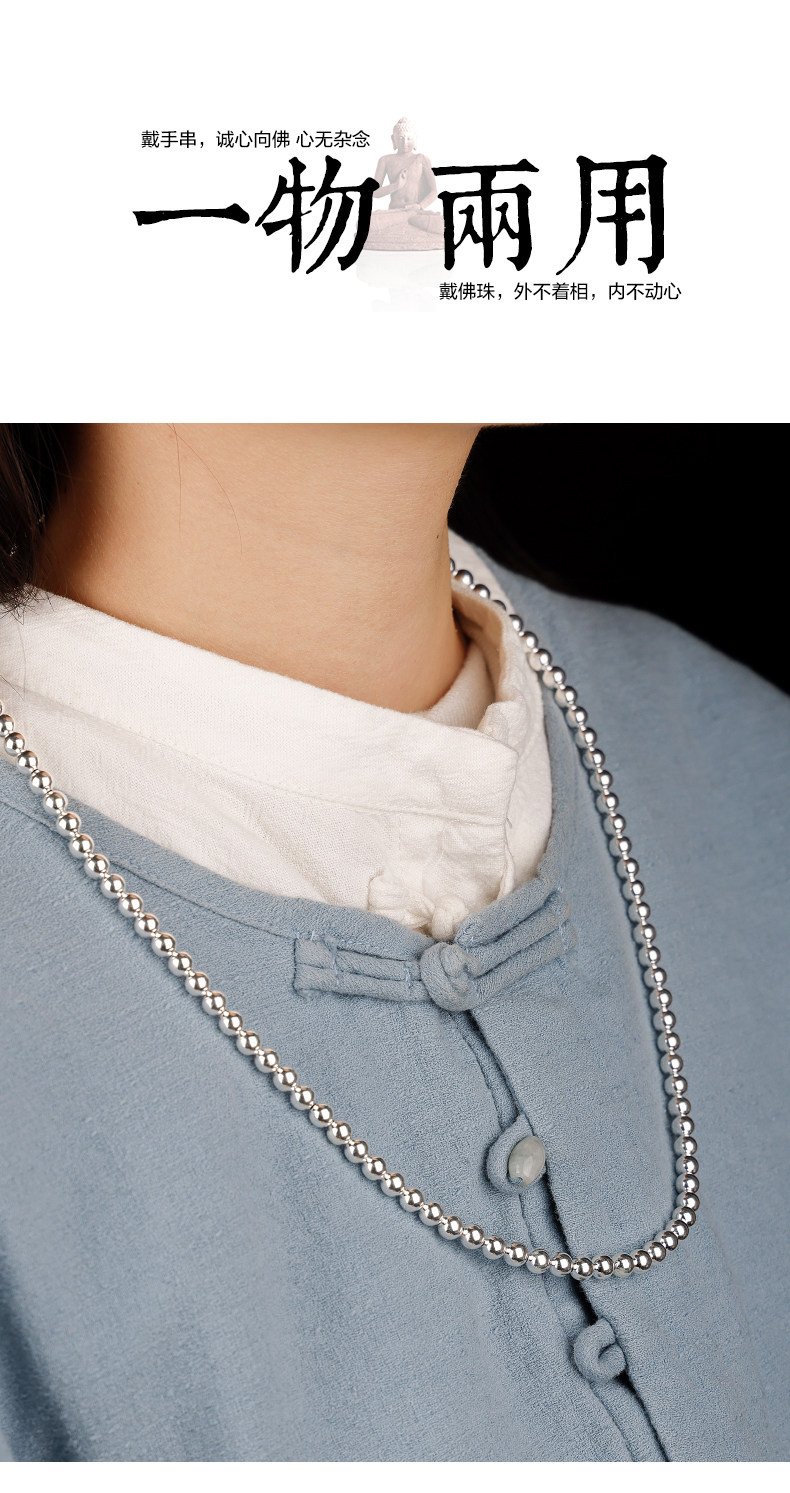 Jiuxi Silver House 999 Pure Silver 108 Beads Silver Bracelet Pure Silver Bracelet for Men and Women Couple Smooth Round Bead Sweater Chain