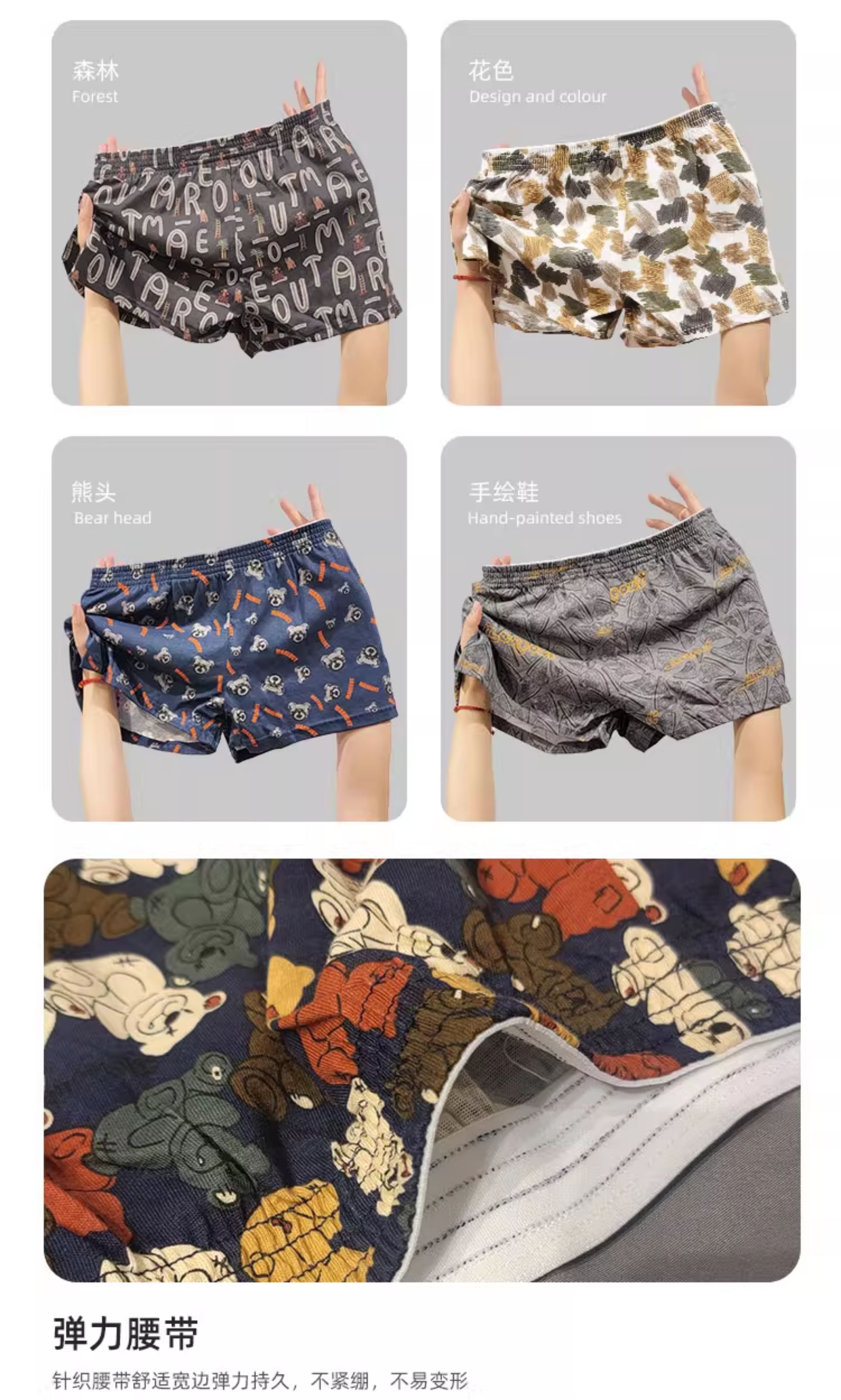 New Breathable Aro Pants Men's Pure Cotton Home Pants Boxer Briefs Large Size Boys' Boxer Shorts Sleep Shorts Loose Fit