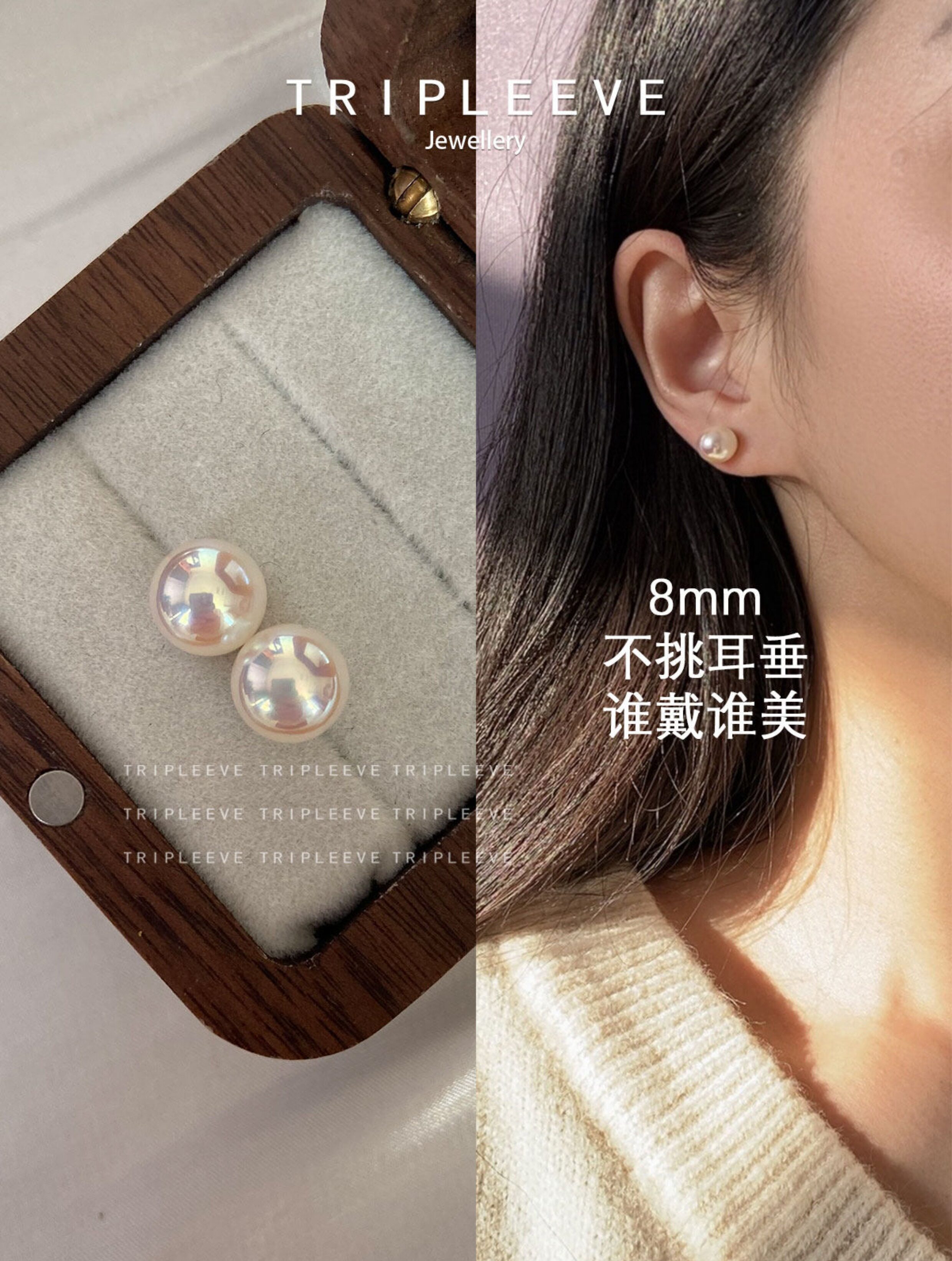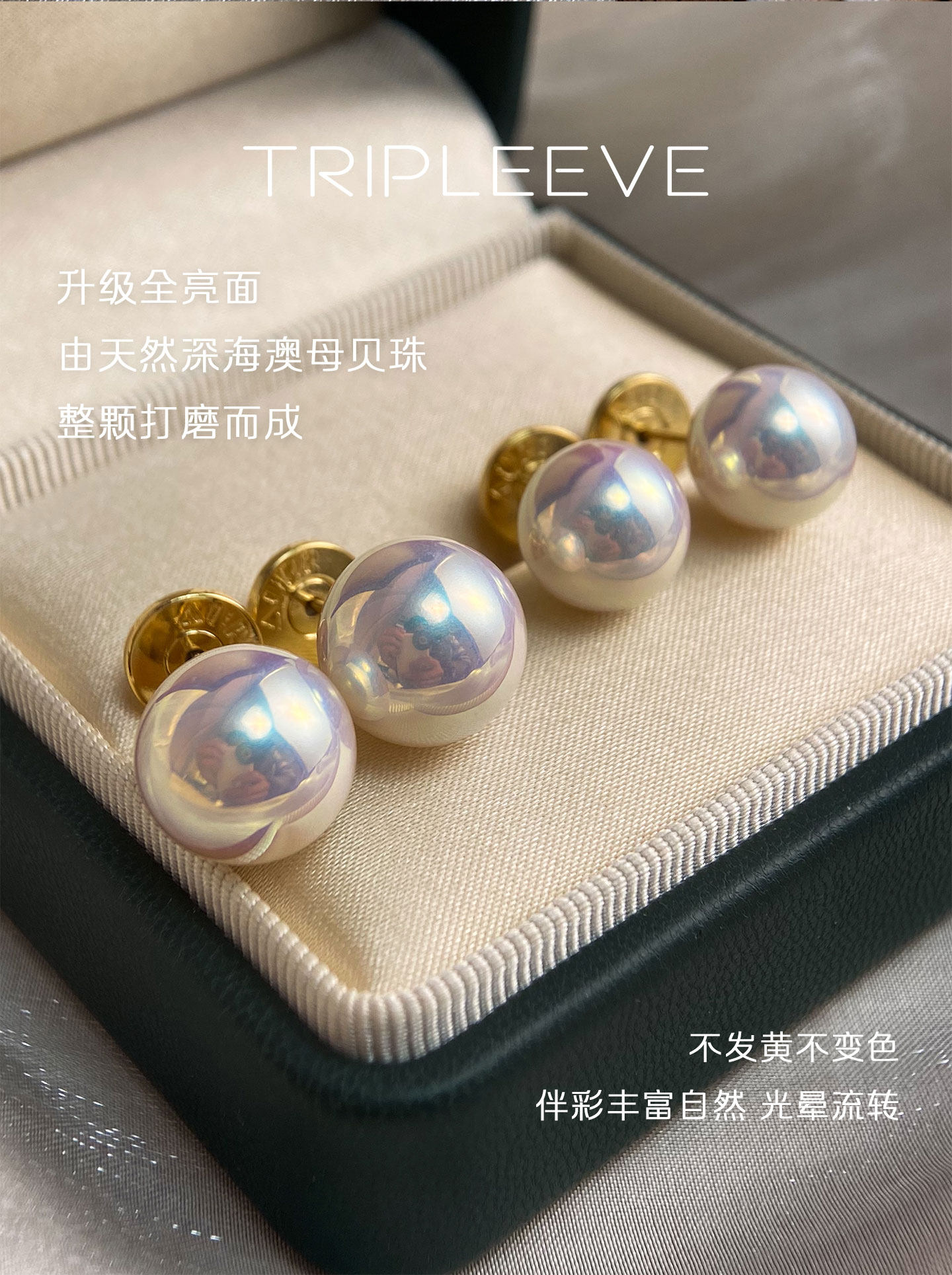 Natural Australian Mother-Of-Pearl Aurora Akoya Goddess-Grade Pearl Earrings, Perfectly Round, with Colored Artificial Seawater, Fully Lustrous, 999 Pure Silver
