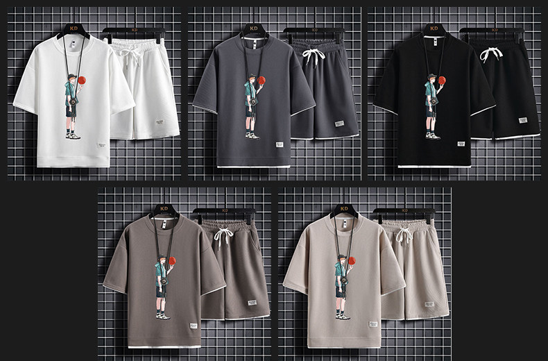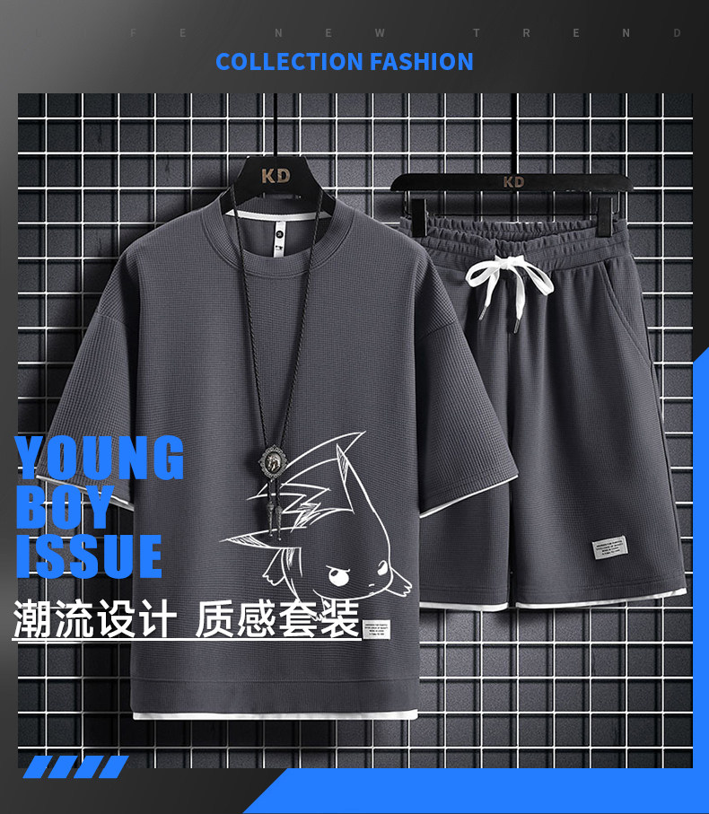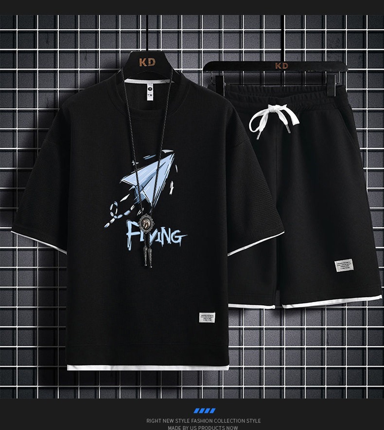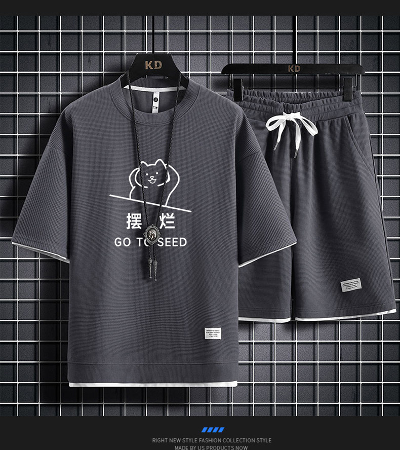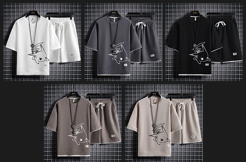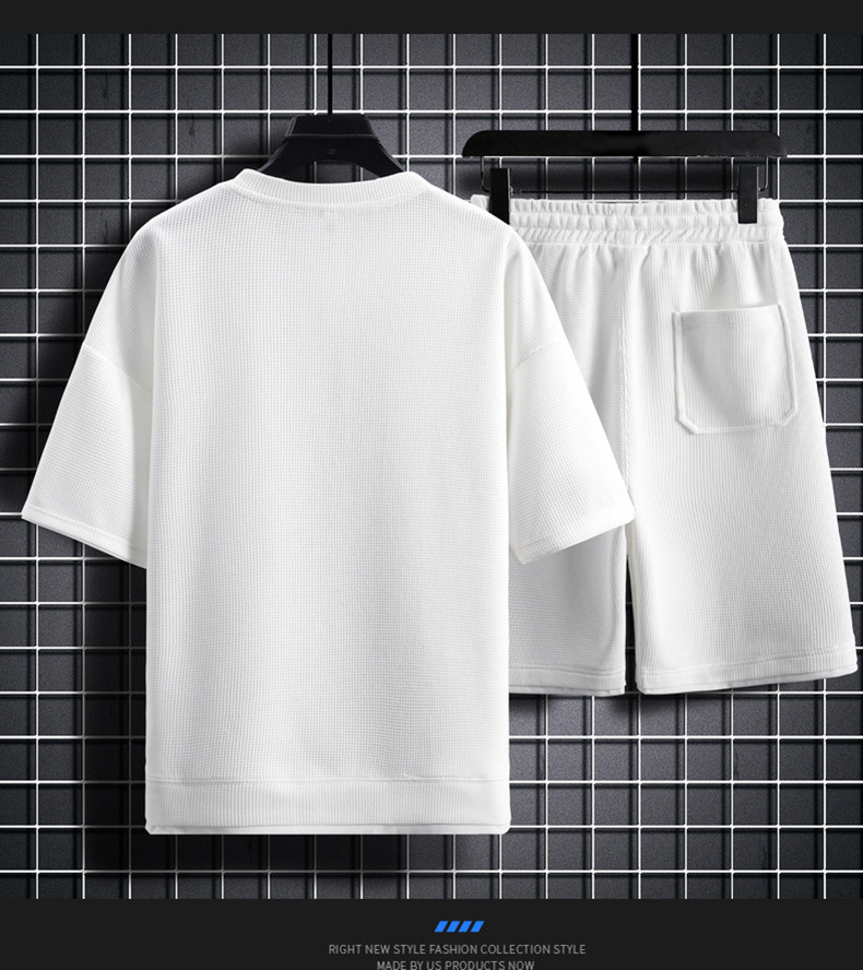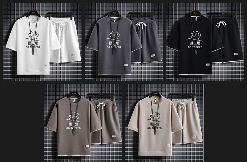 Ice Silk Five-Quarter Sleeve Suit for Men, New Trendy and Fashionable Summer Student Casual Short-Sleeved Five-Quarter Pants Two-Piece Set