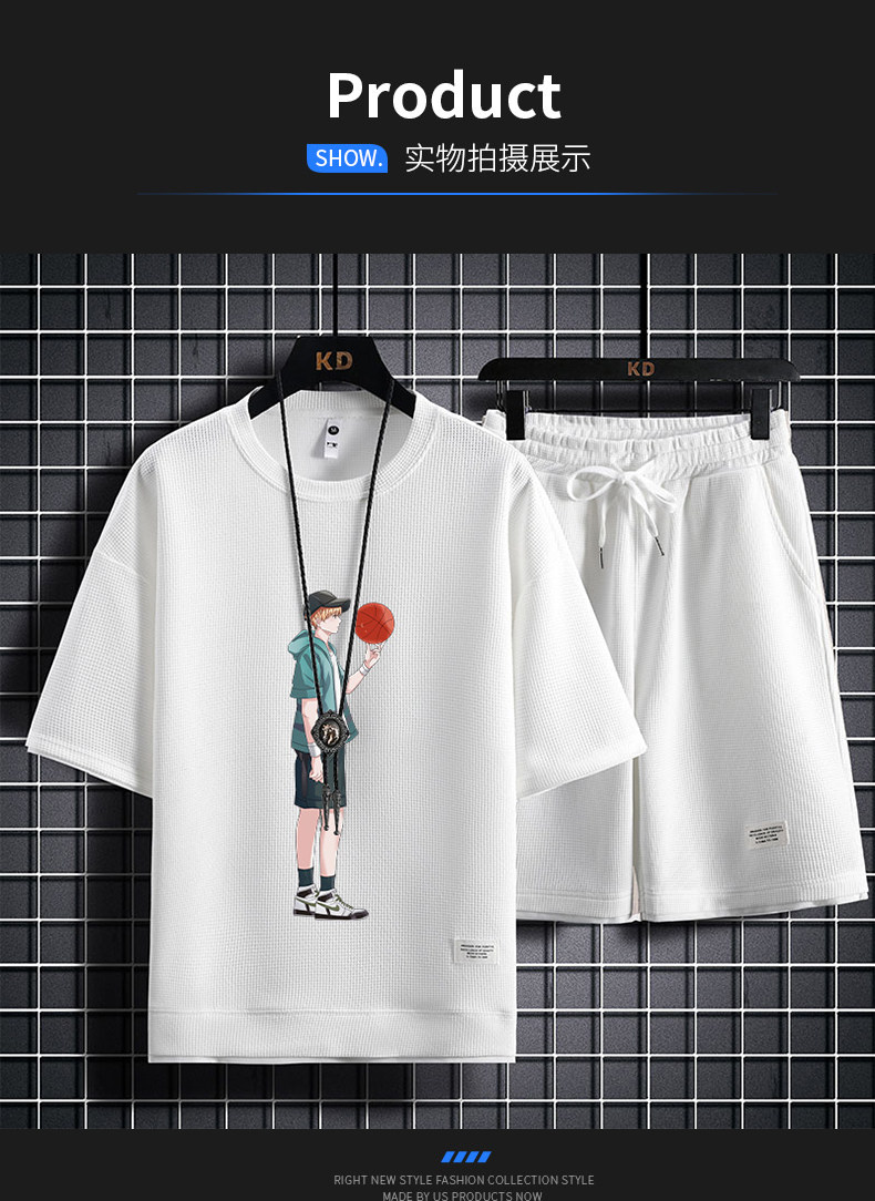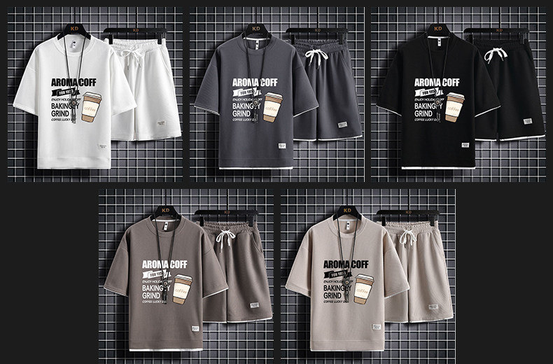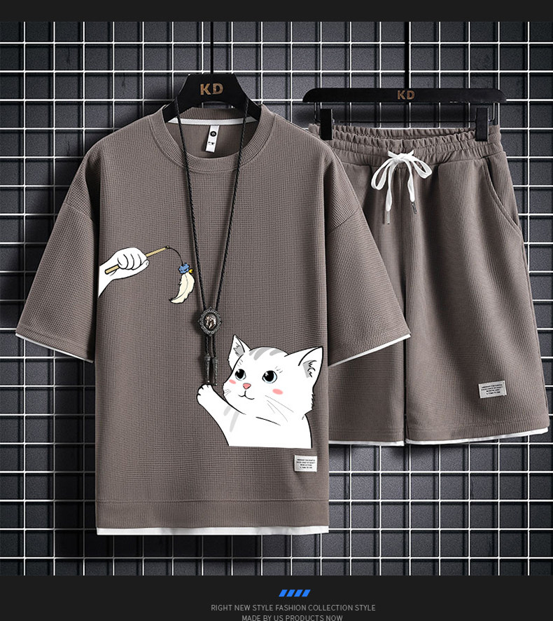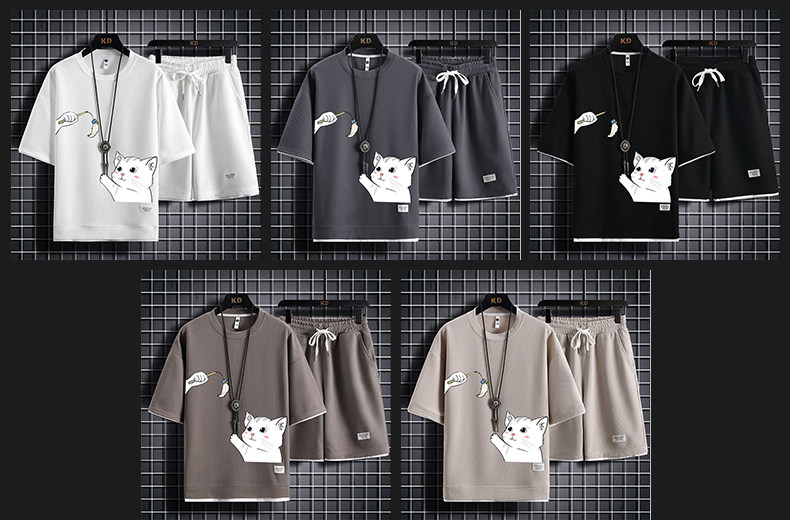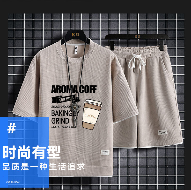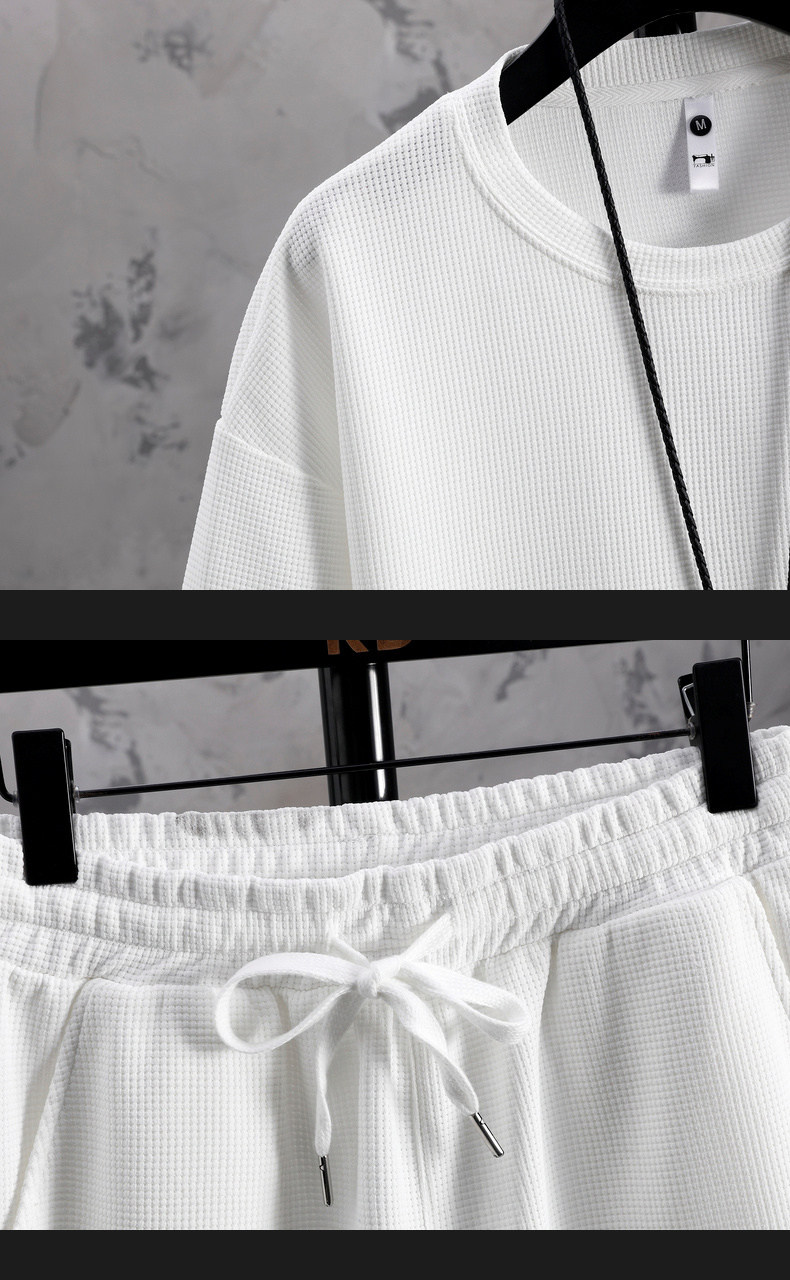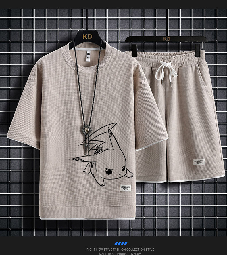 Ice Silk Five-Quarter Sleeve Suit for Men, New Trendy and Fashionable Summer Student Casual Short-Sleeved Five-Quarter Pants Two-Piece Set