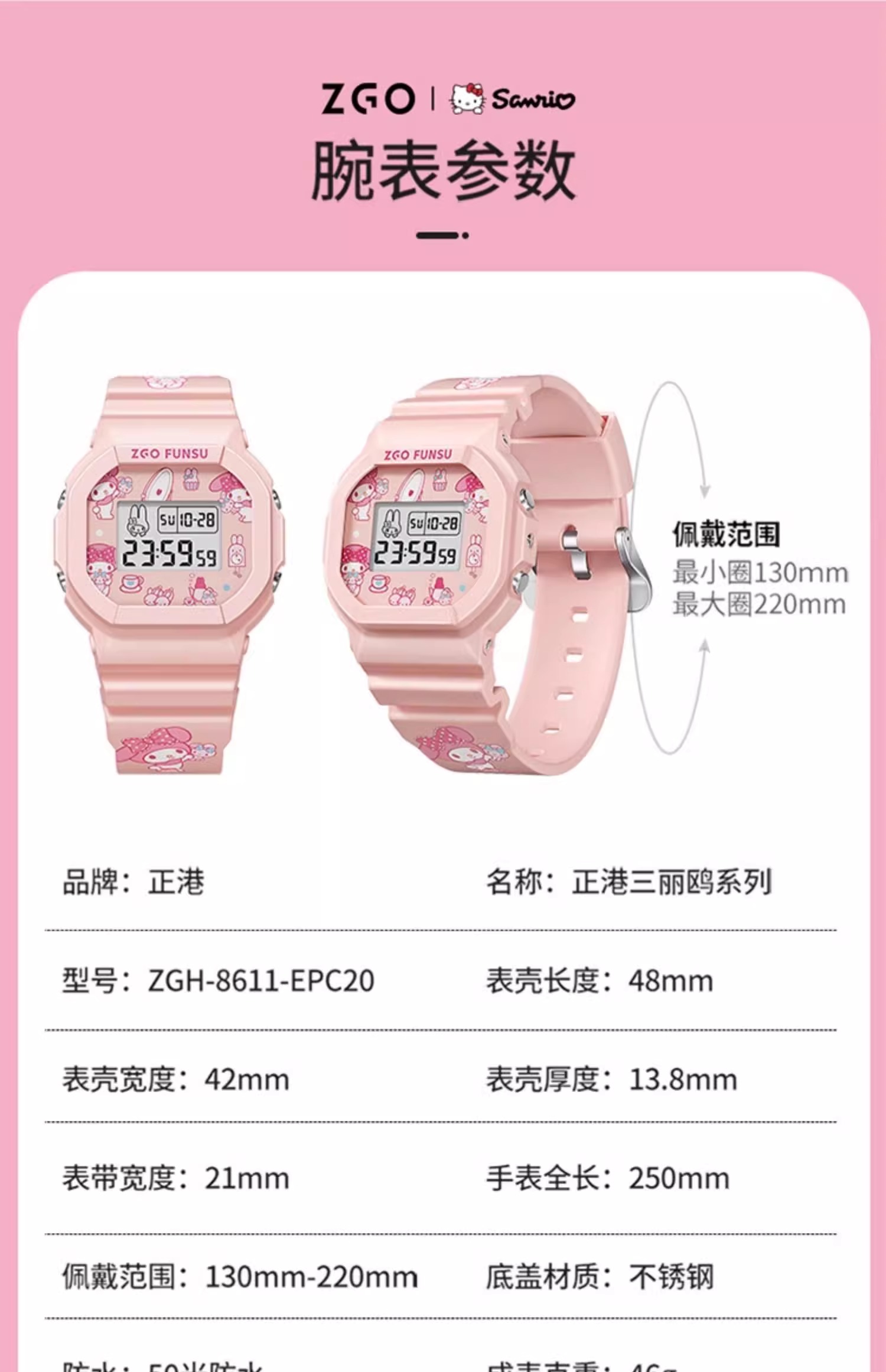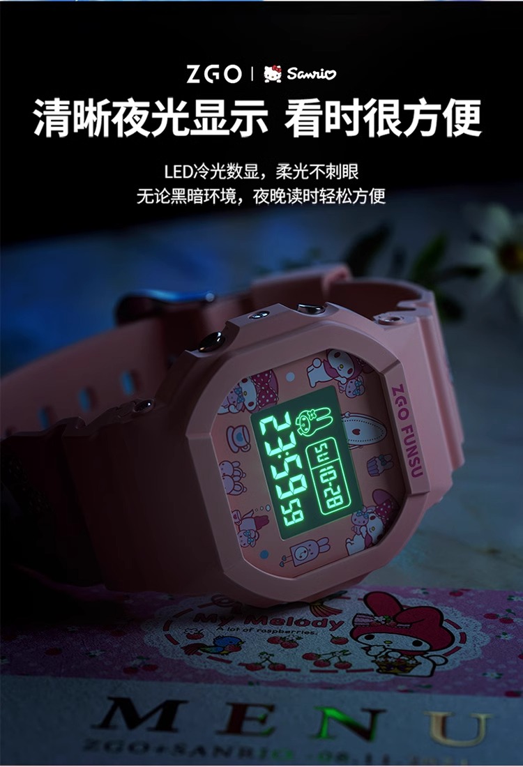 Melody Sanrio Children's Watch for Girls, Elementary and Middle School Students, Only Tells Time, Waterproof Sports Electronic Watch