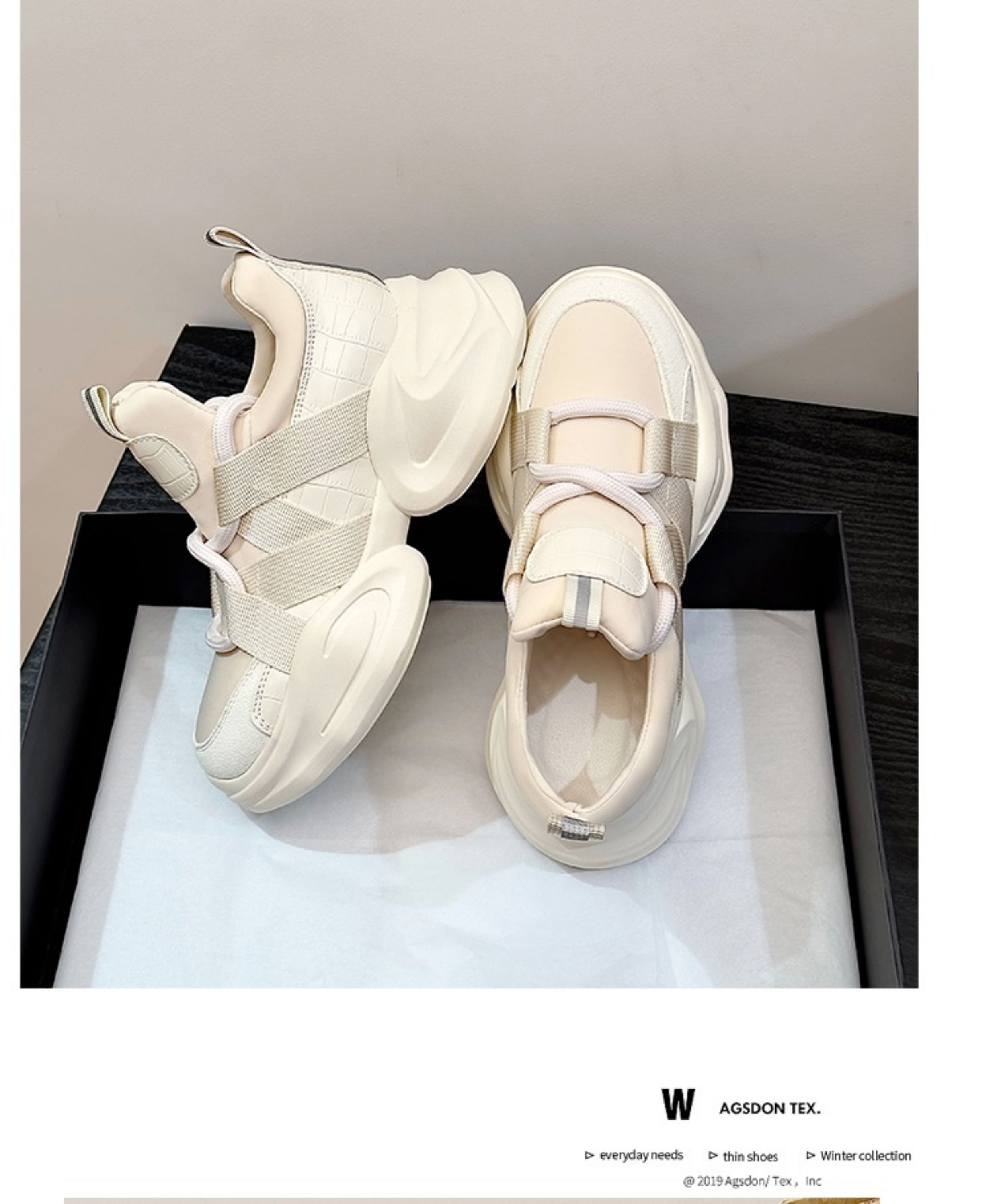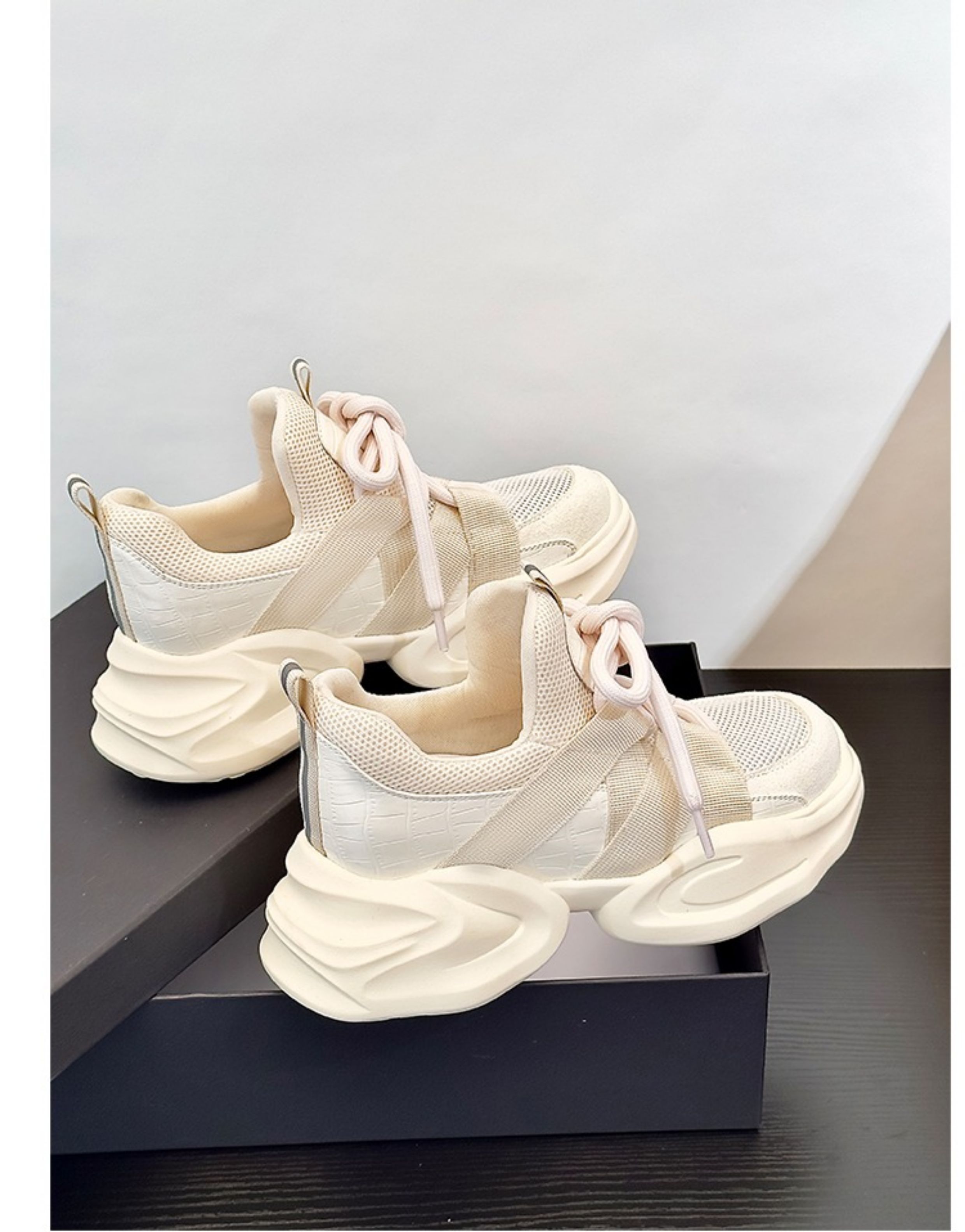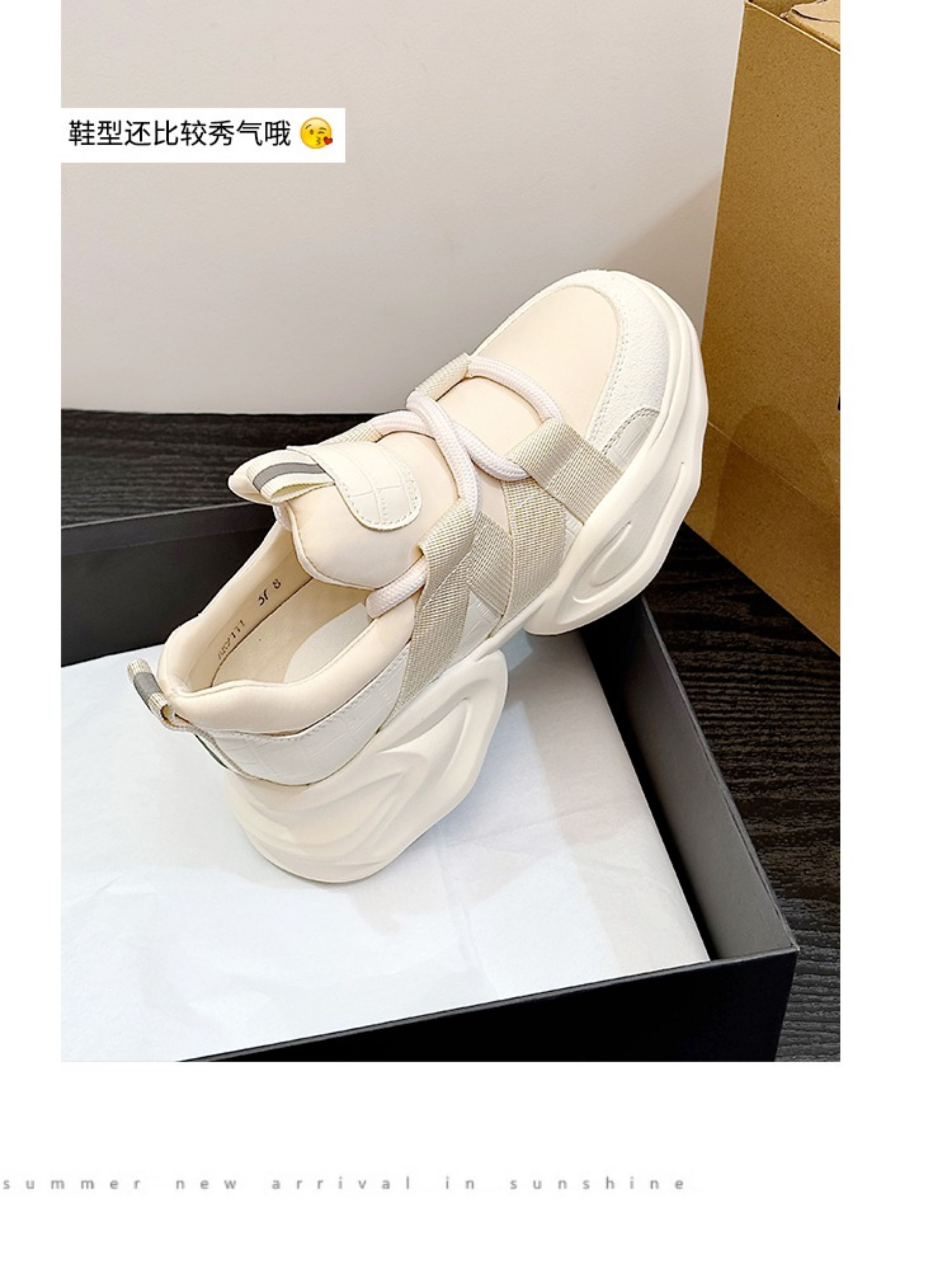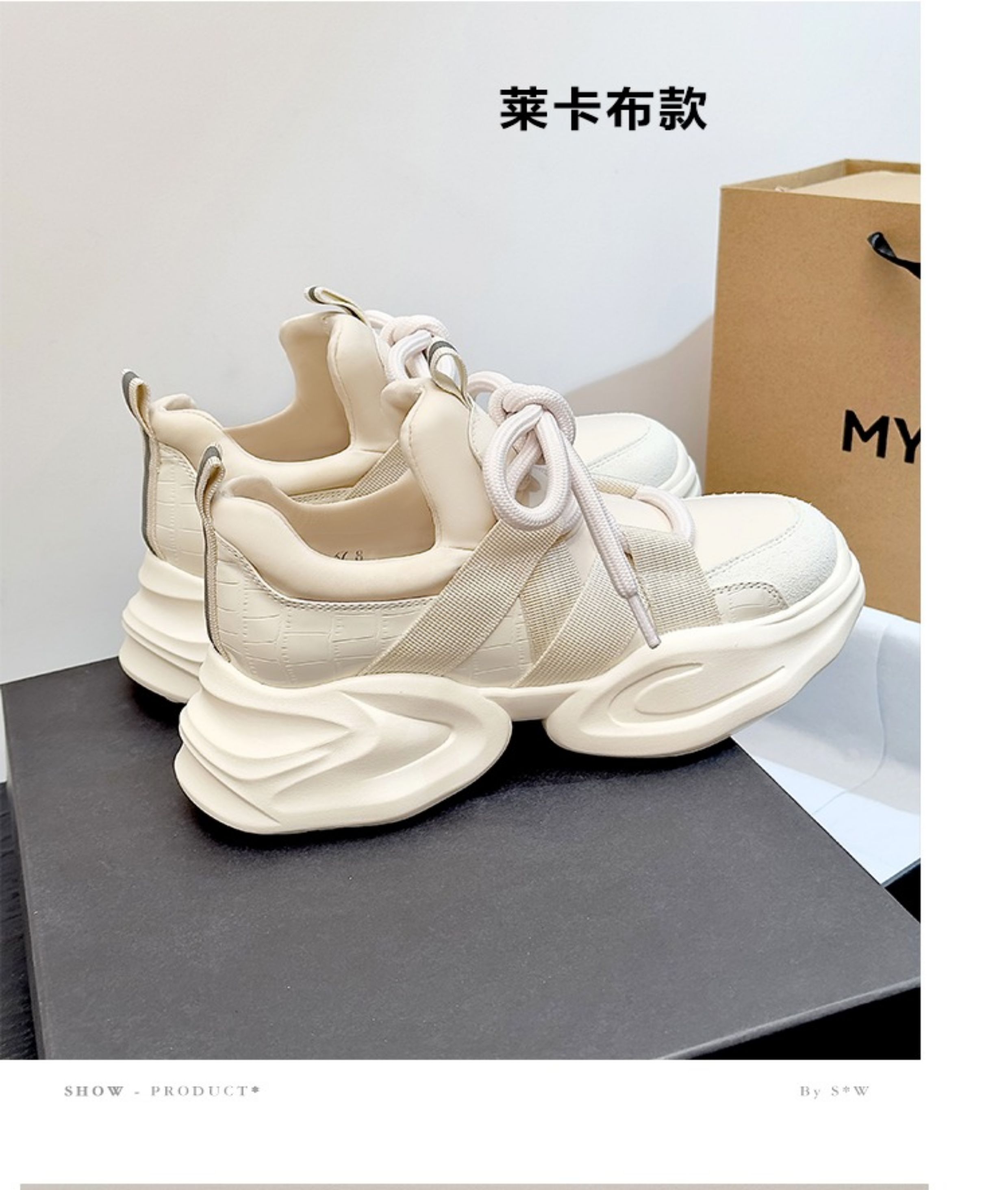 Hong Kong Genuine Leather Dad Shoes for Women 2025 New Thick-Soled Height-Increasing Solid Color Walking Platform Lace-Up Sports Casual Shoes