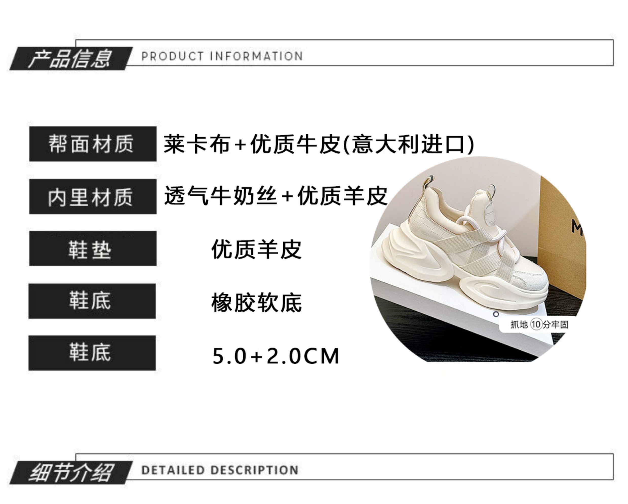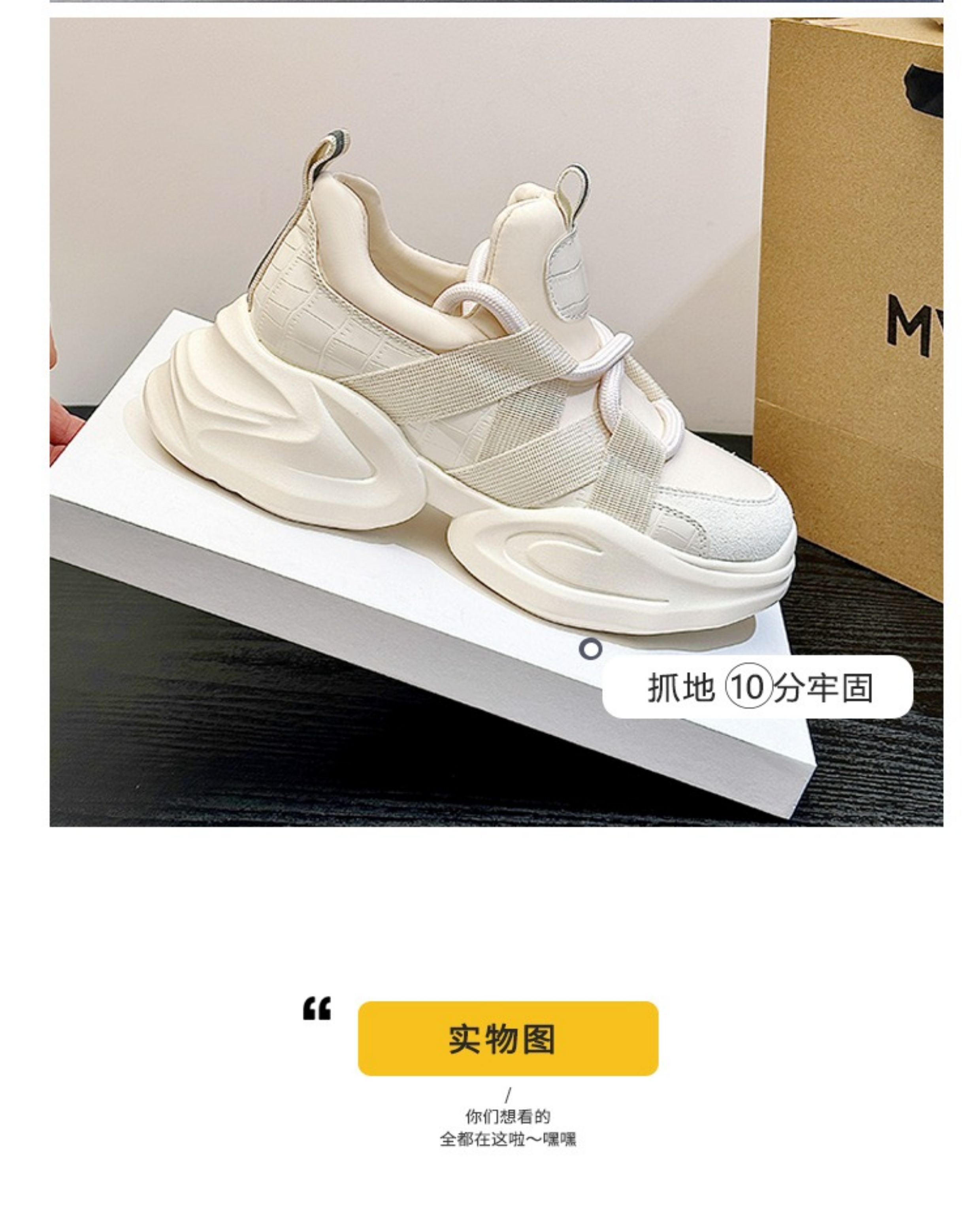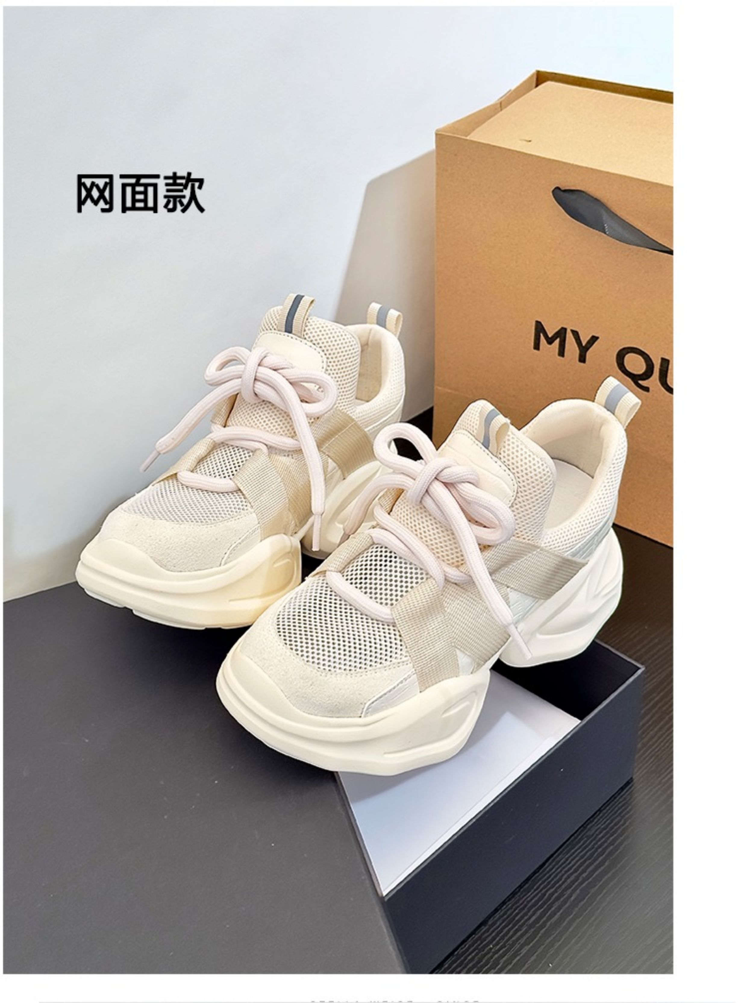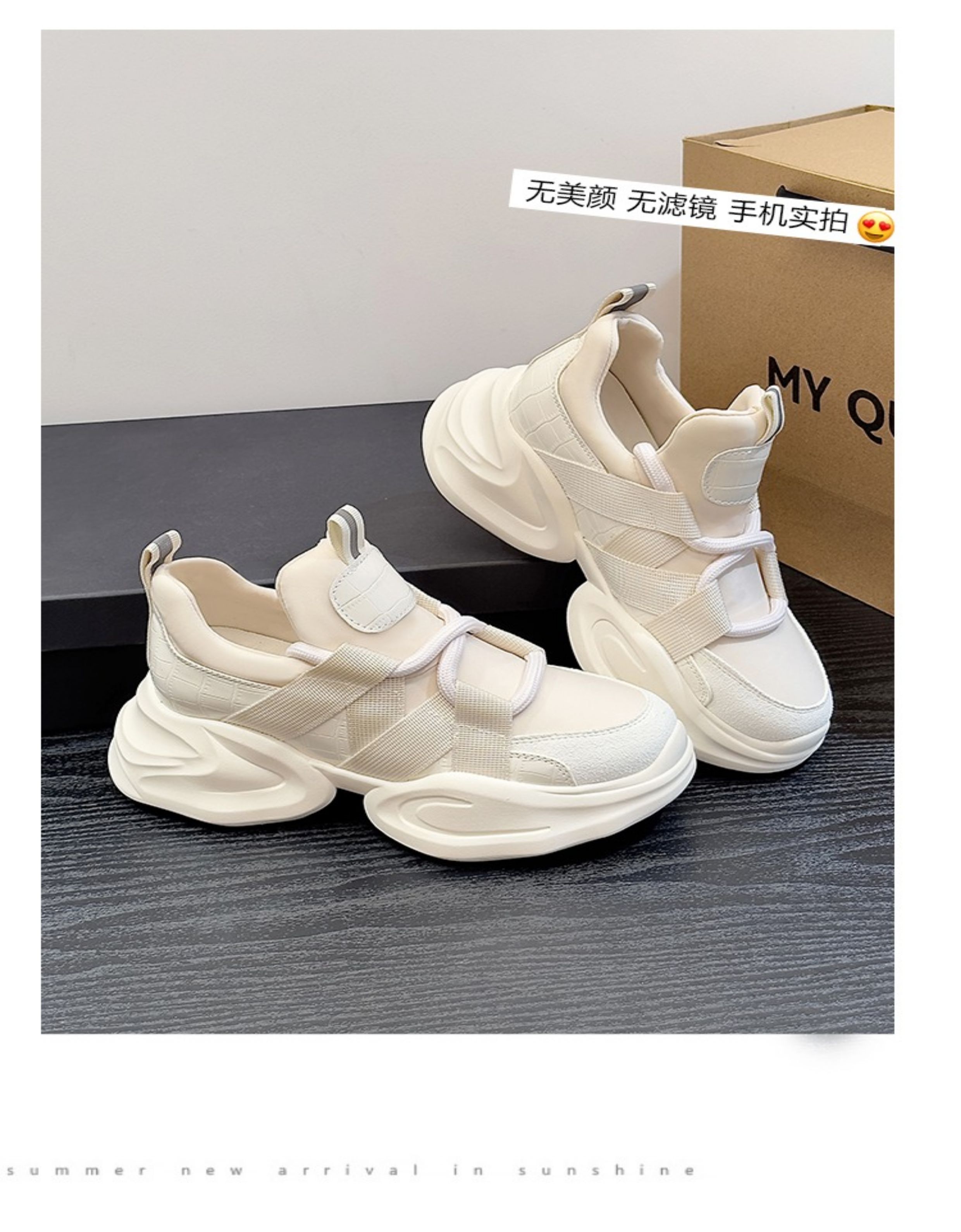 Hong Kong Genuine Leather Dad Shoes for Women 2025 New Thick-Soled Height-Increasing Solid Color Walking Platform Lace-Up Sports Casual Shoes