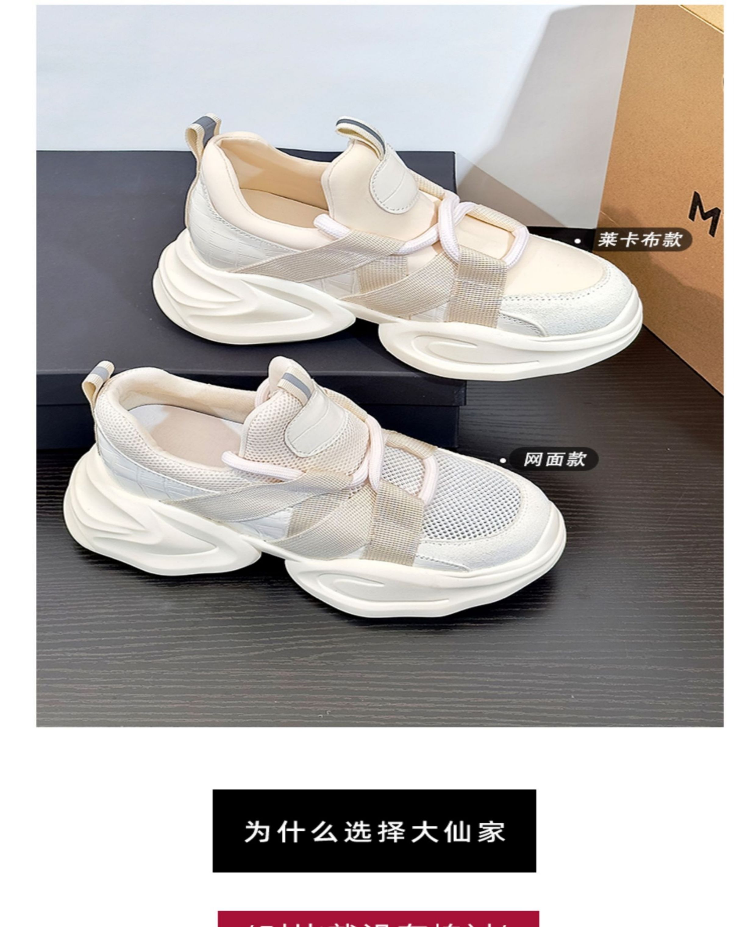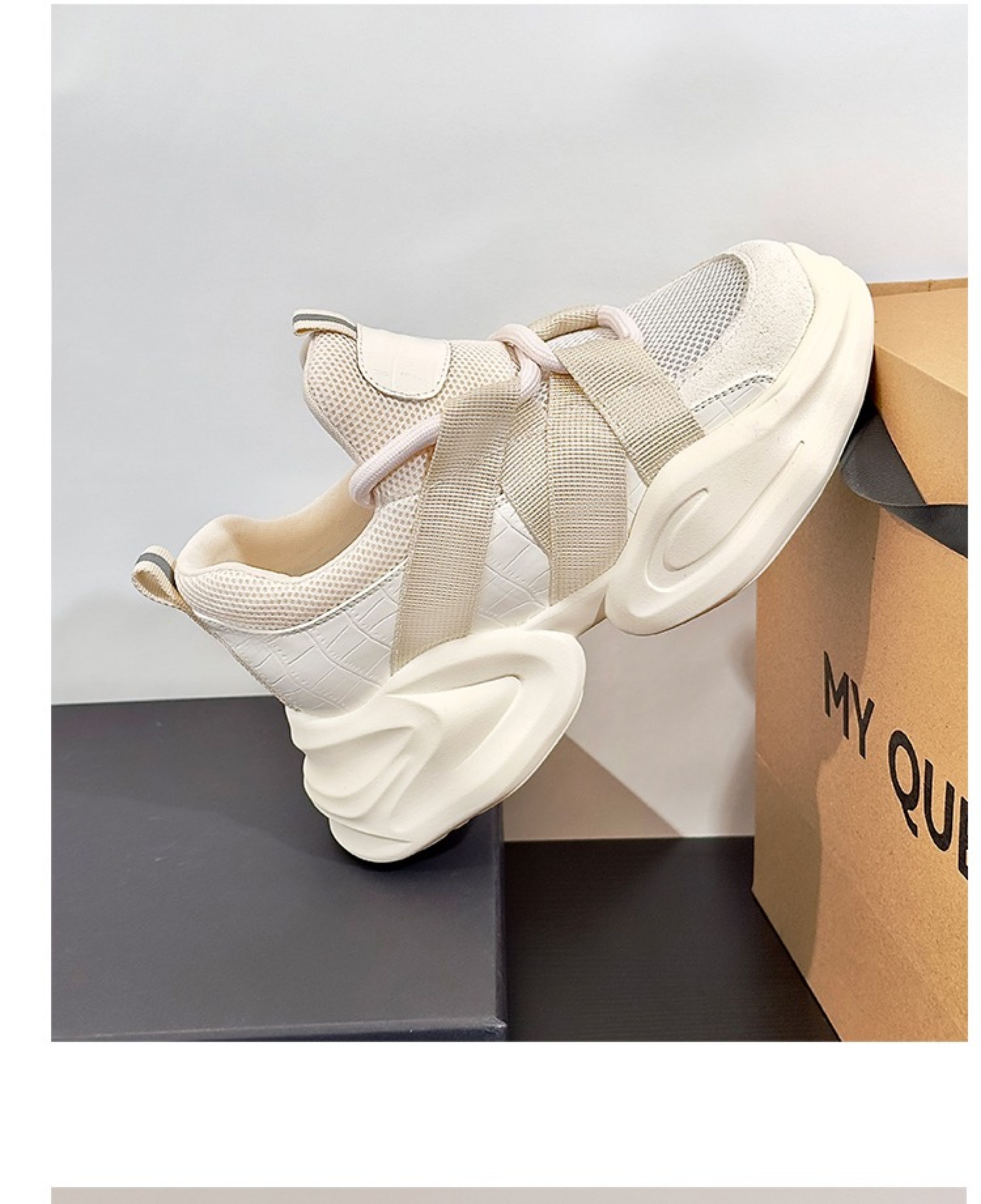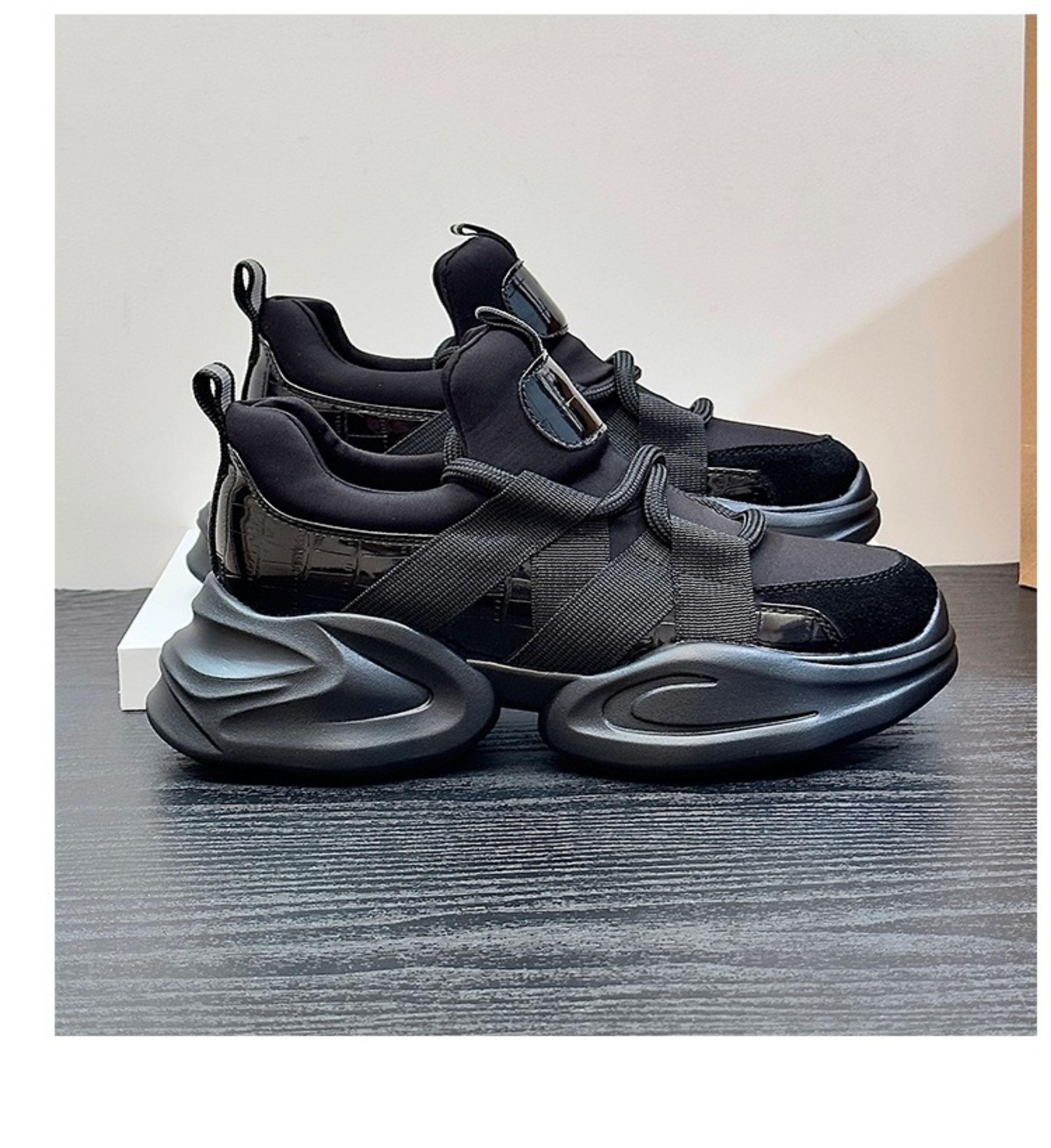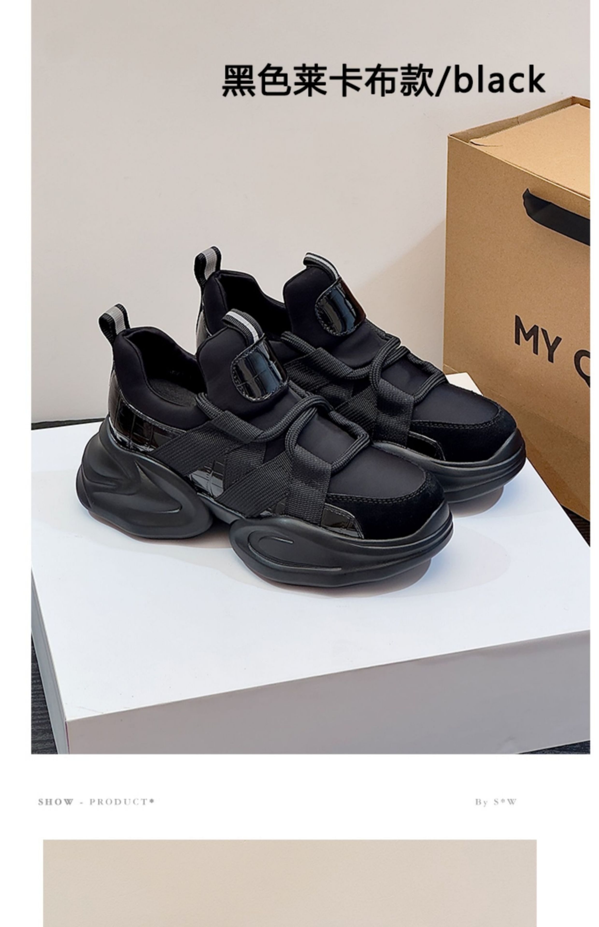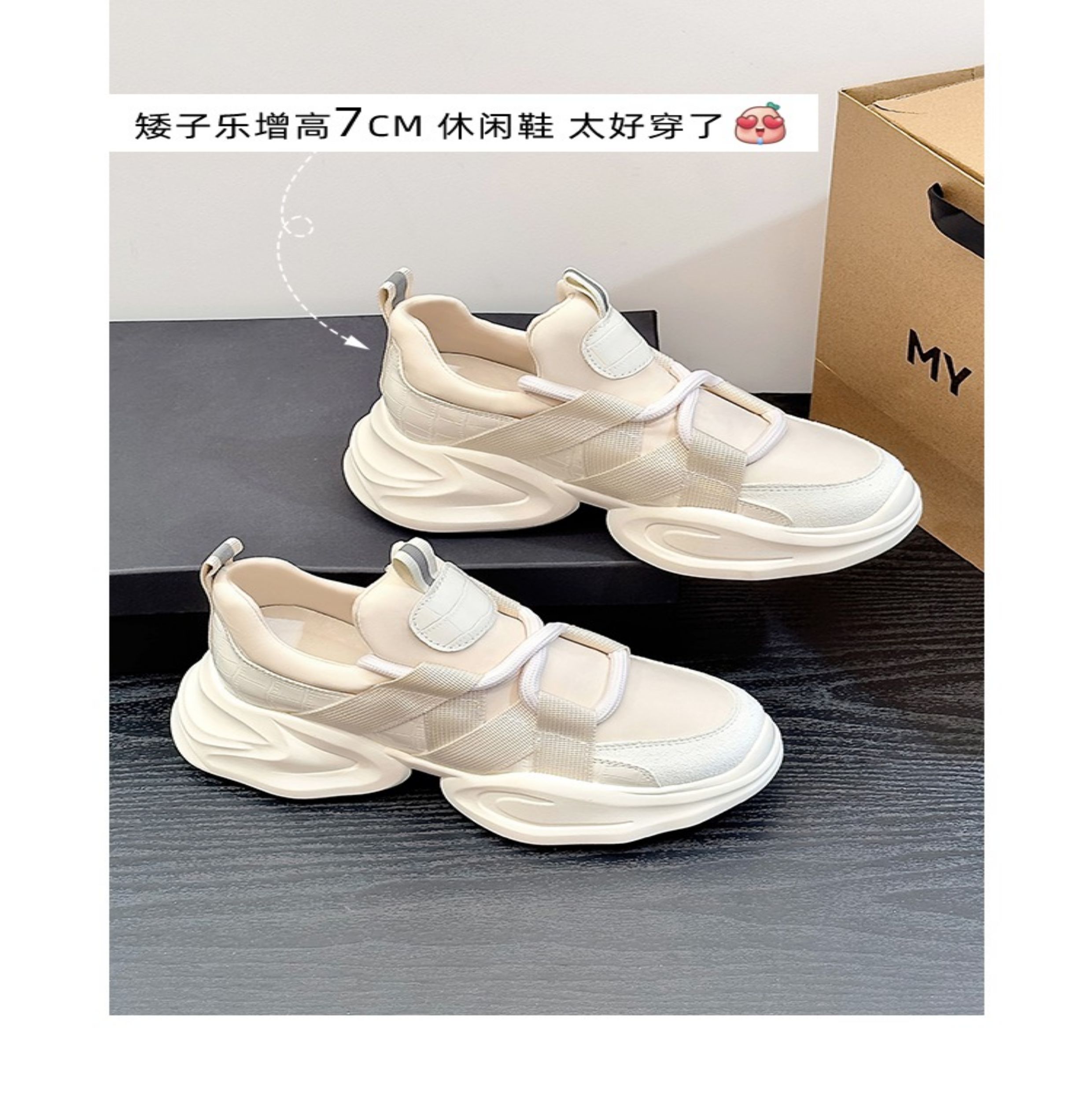 Hong Kong Genuine Leather Dad Shoes for Women 2025 New Thick-Soled Height-Increasing Solid Color Walking Platform Lace-Up Sports Casual Shoes