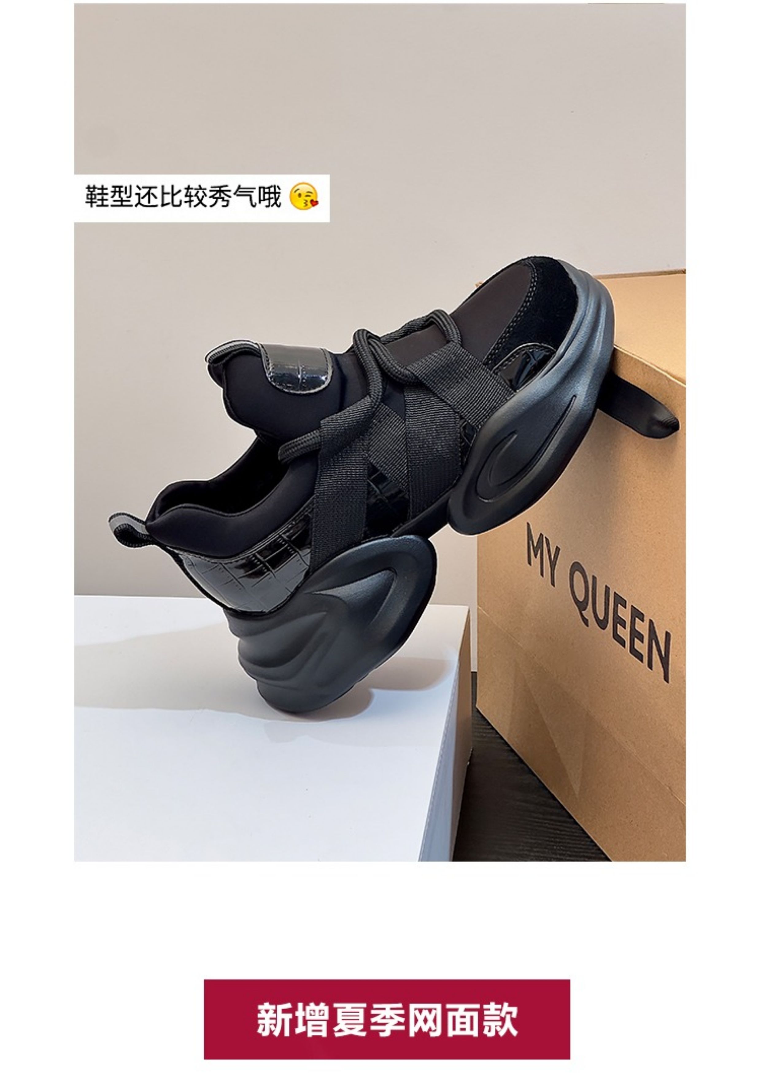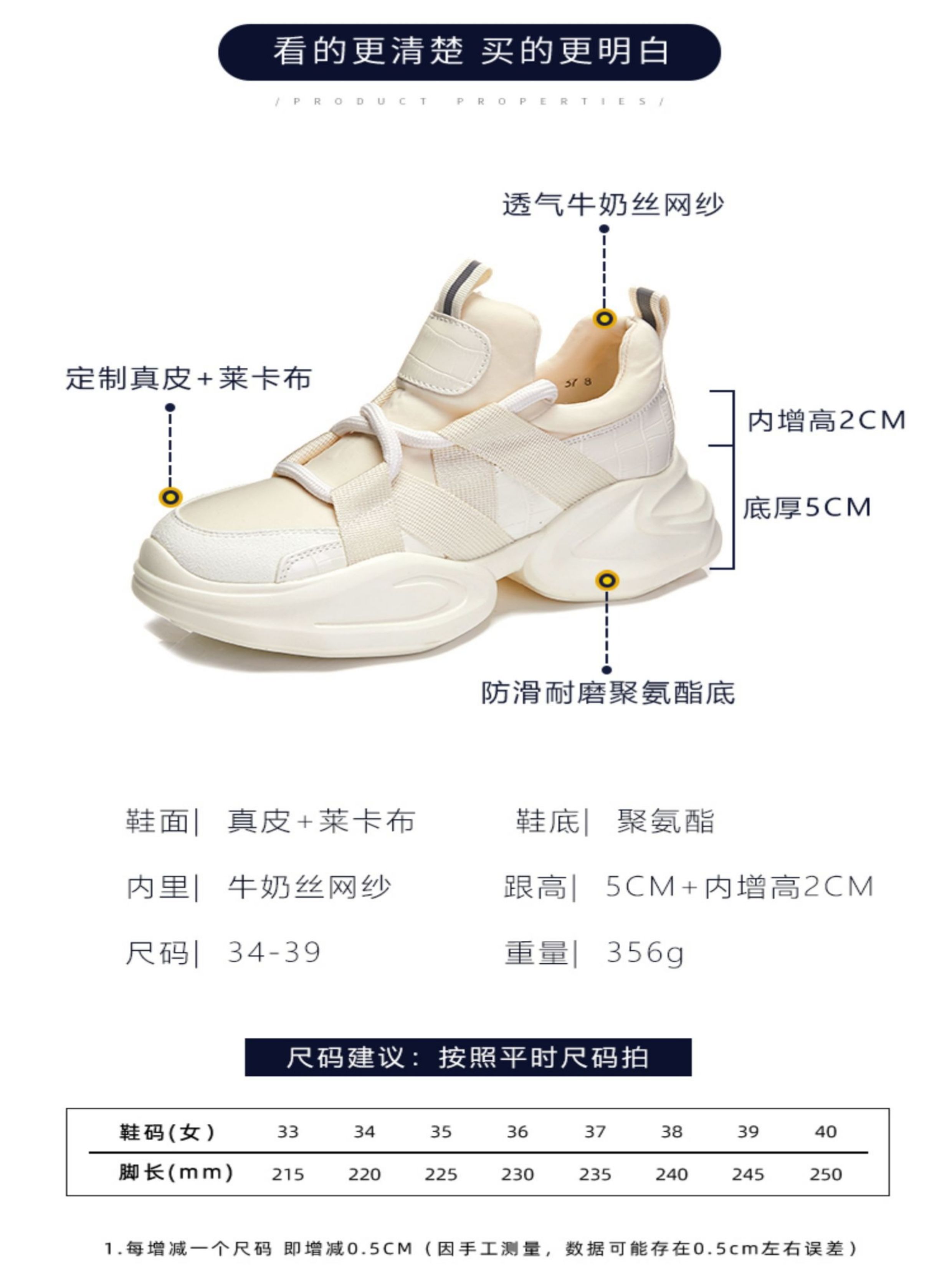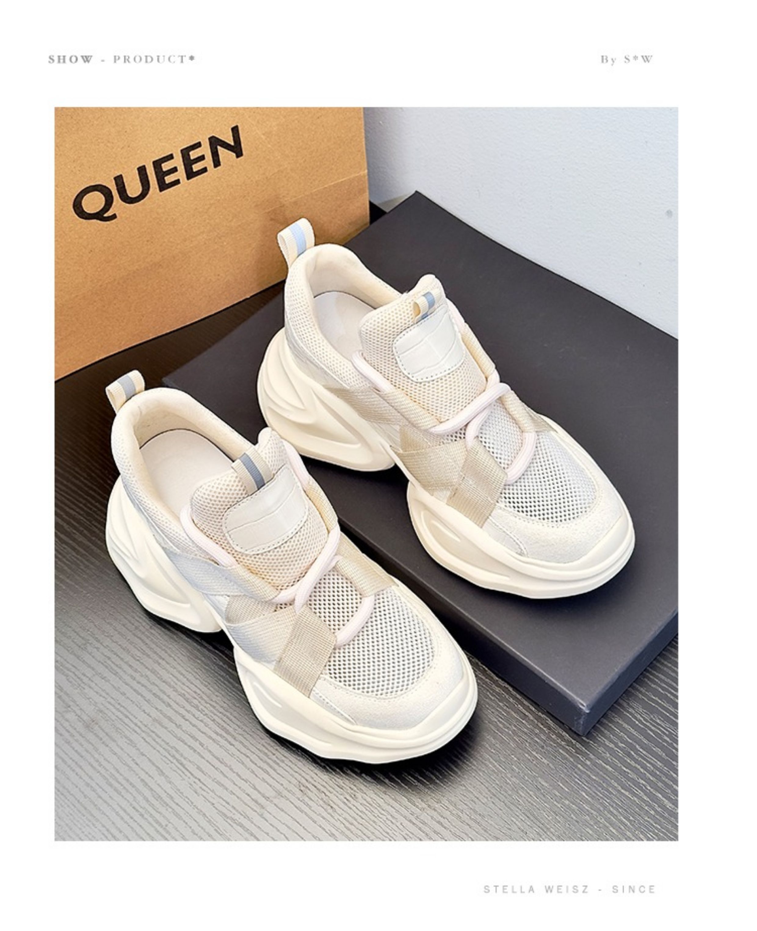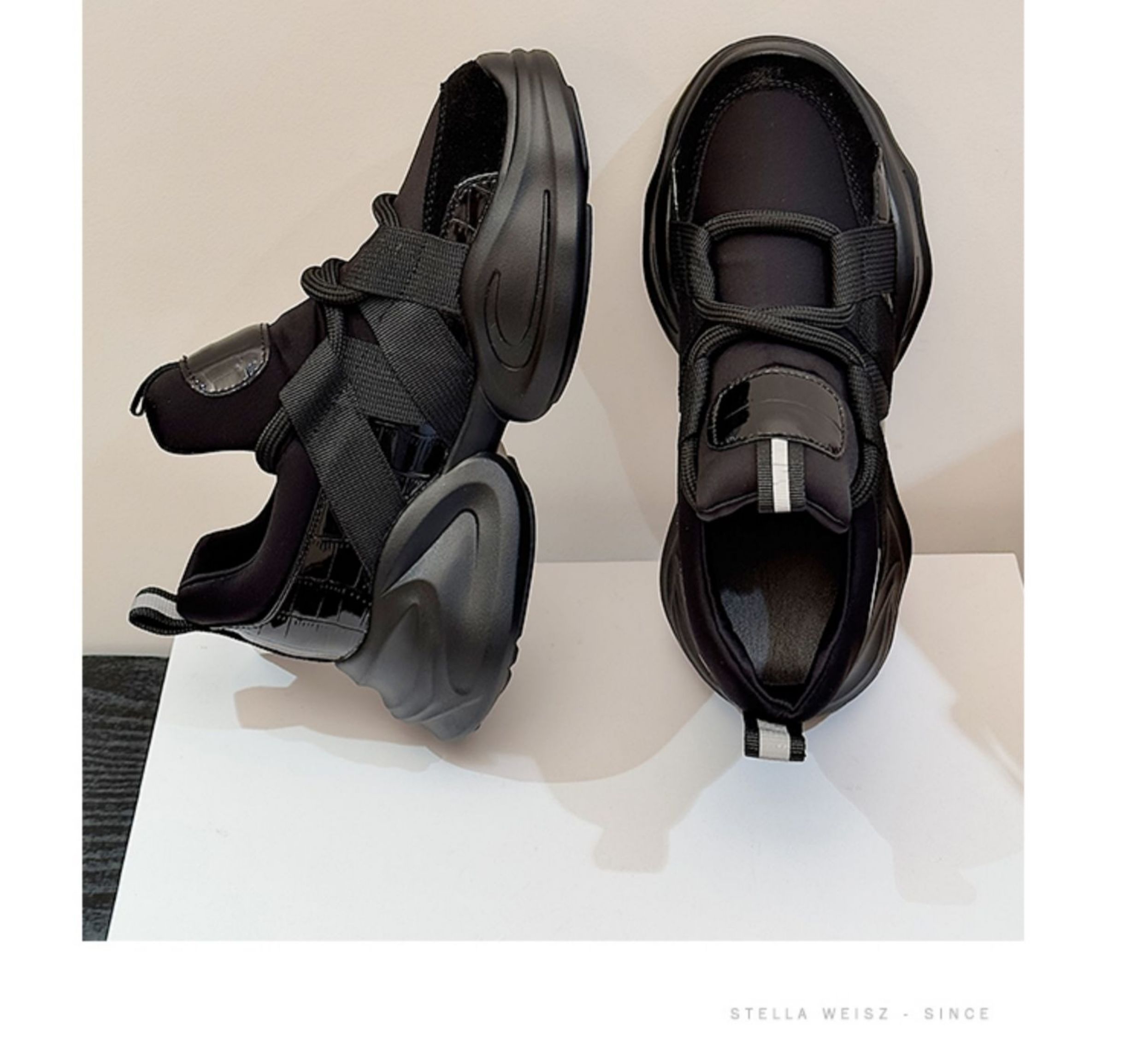 Hong Kong Genuine Leather Dad Shoes for Women 2025 New Thick-Soled Height-Increasing Solid Color Walking Platform Lace-Up Sports Casual Shoes