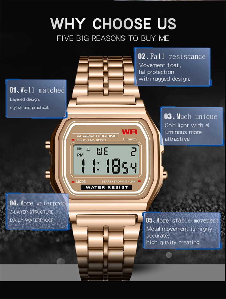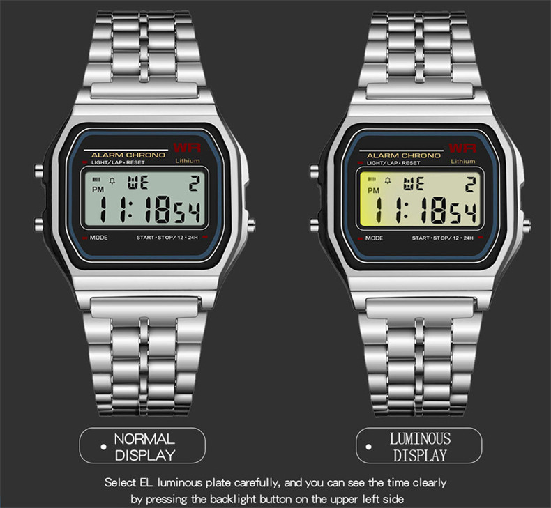 Watches for Men and Women, Retro Style, Simple and Elegant, Steel Strap, Student, High-End, Stylish, Niche, Couple, Electronic, Luminous, Waterproof