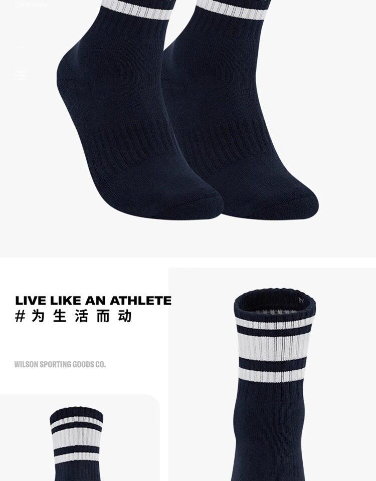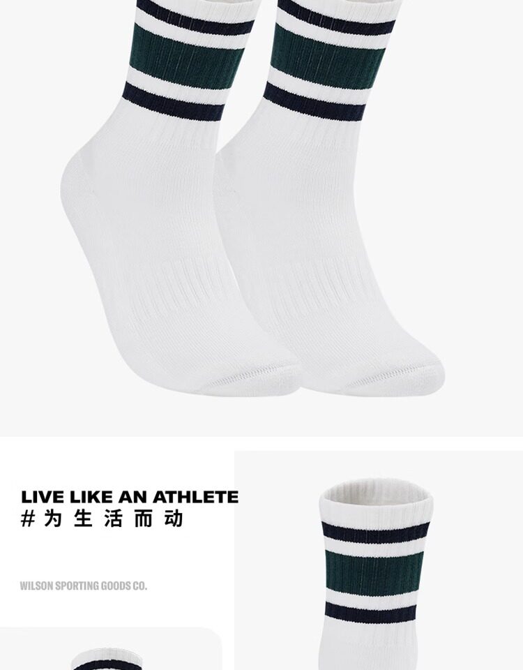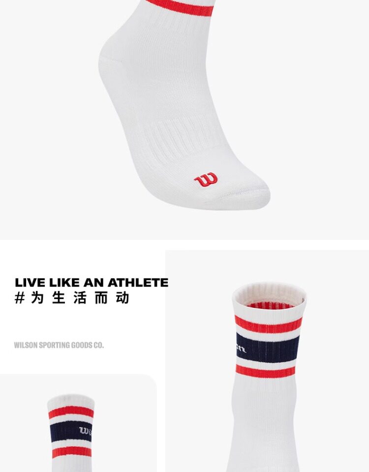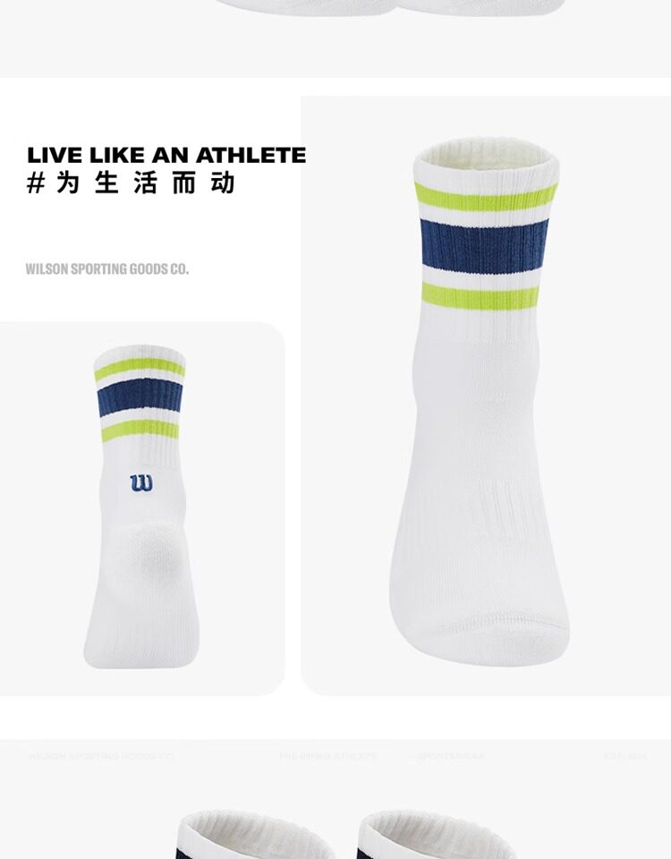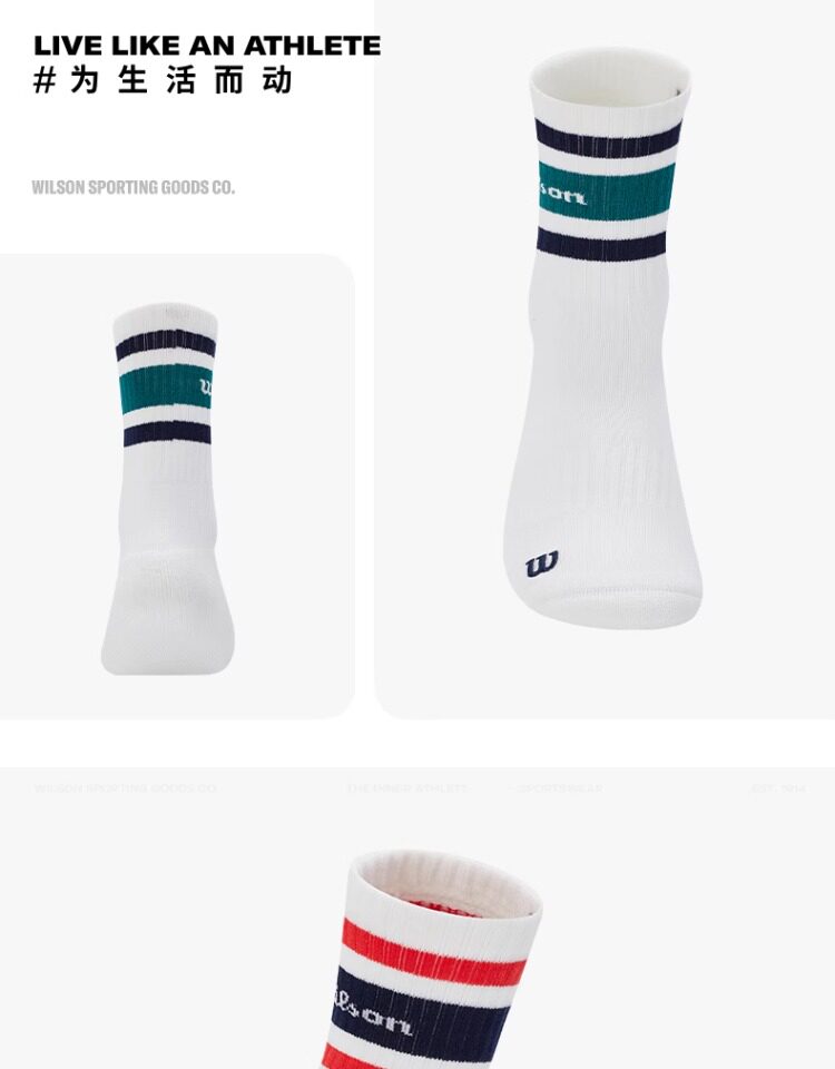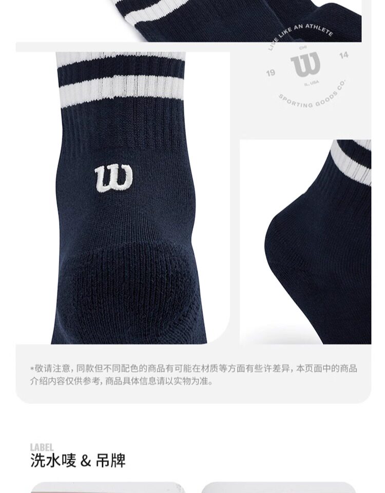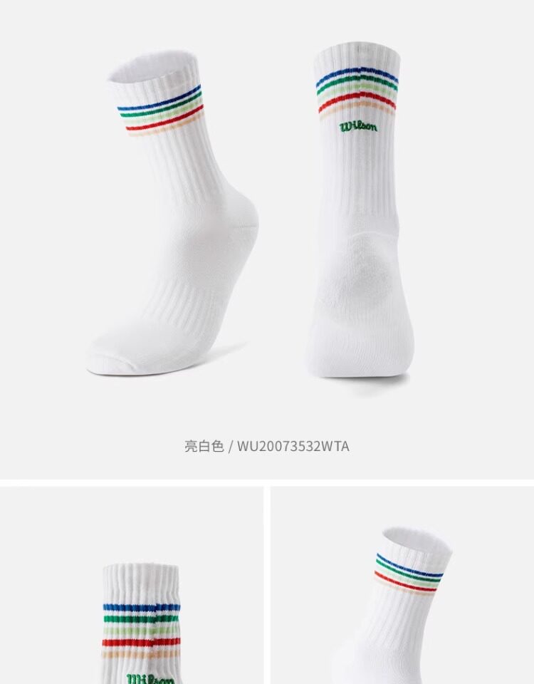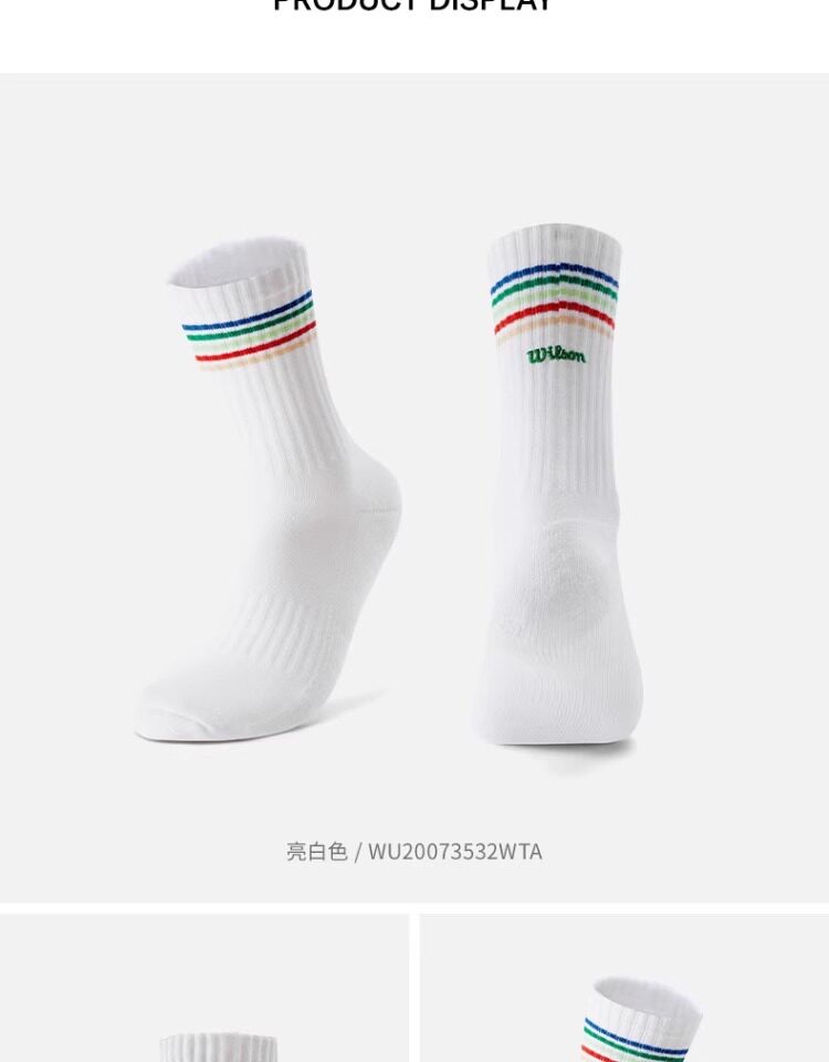 Wilson Tennis Socks Men's and Women's Sports Socks 2025 New Style Combed Cotton Breathable Sweat-Wicking High Elasticity Non-Slip