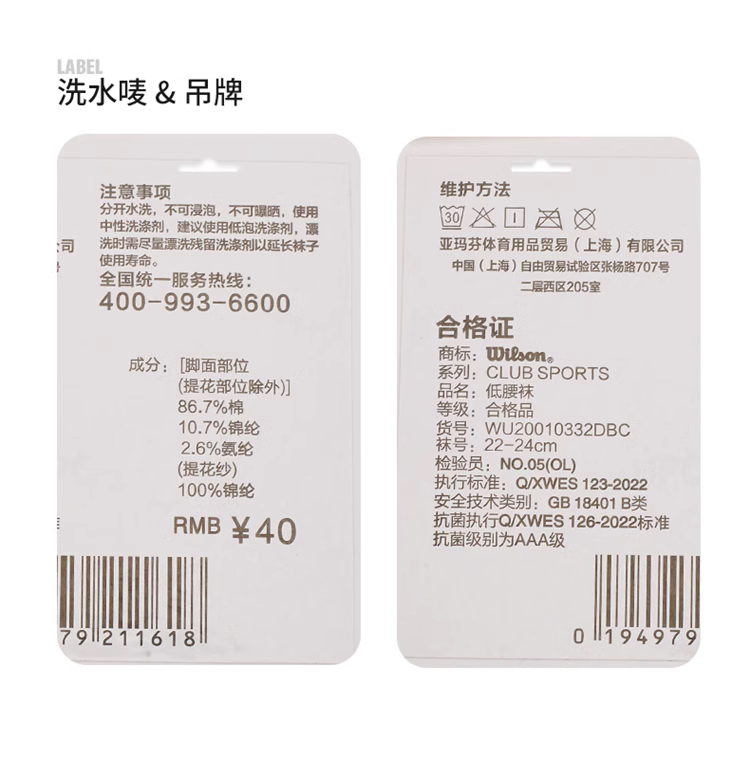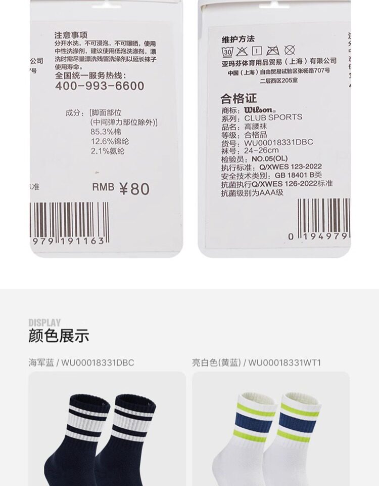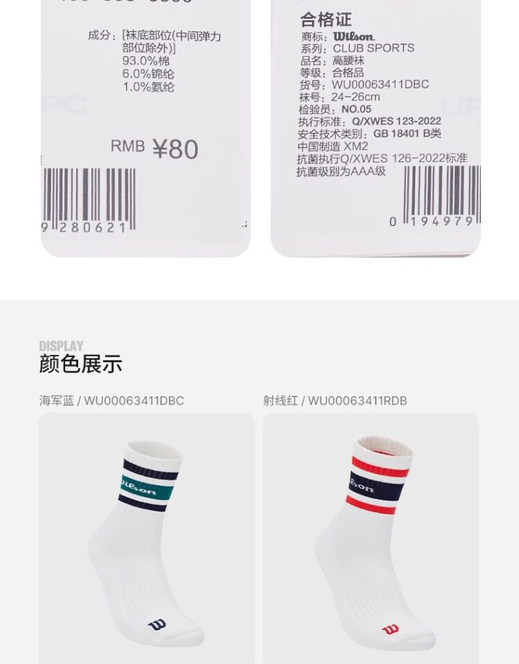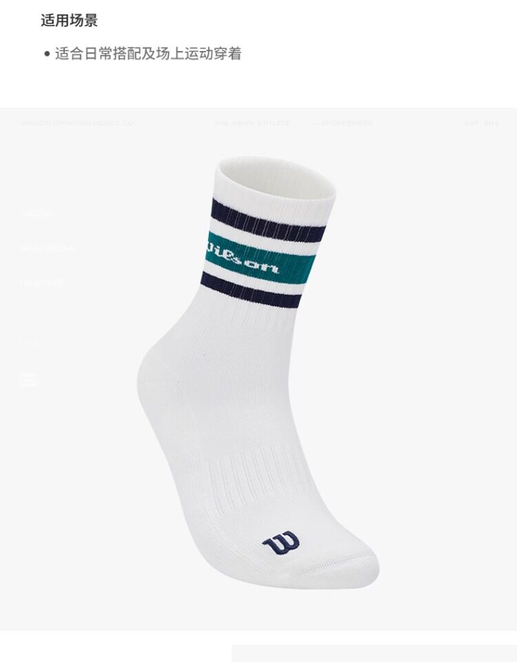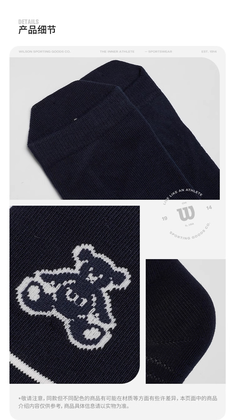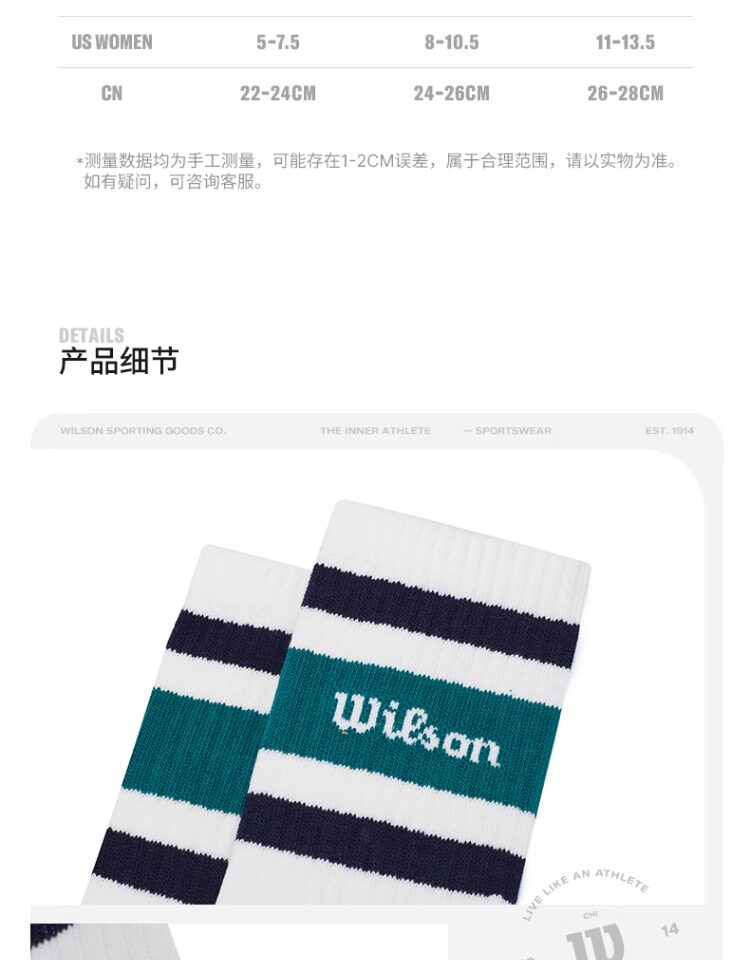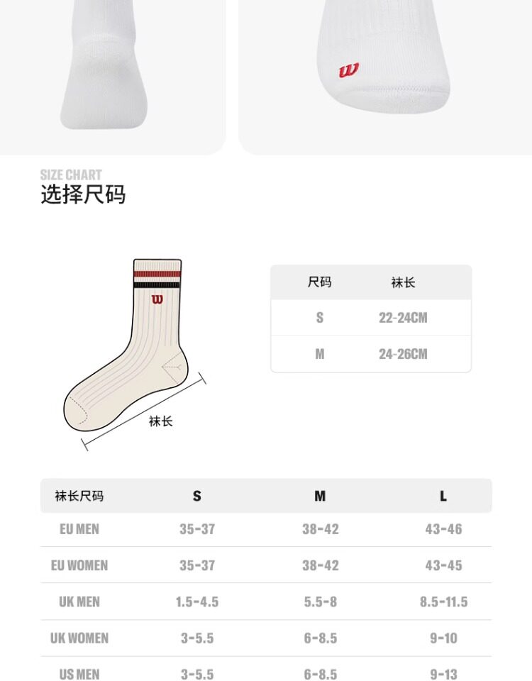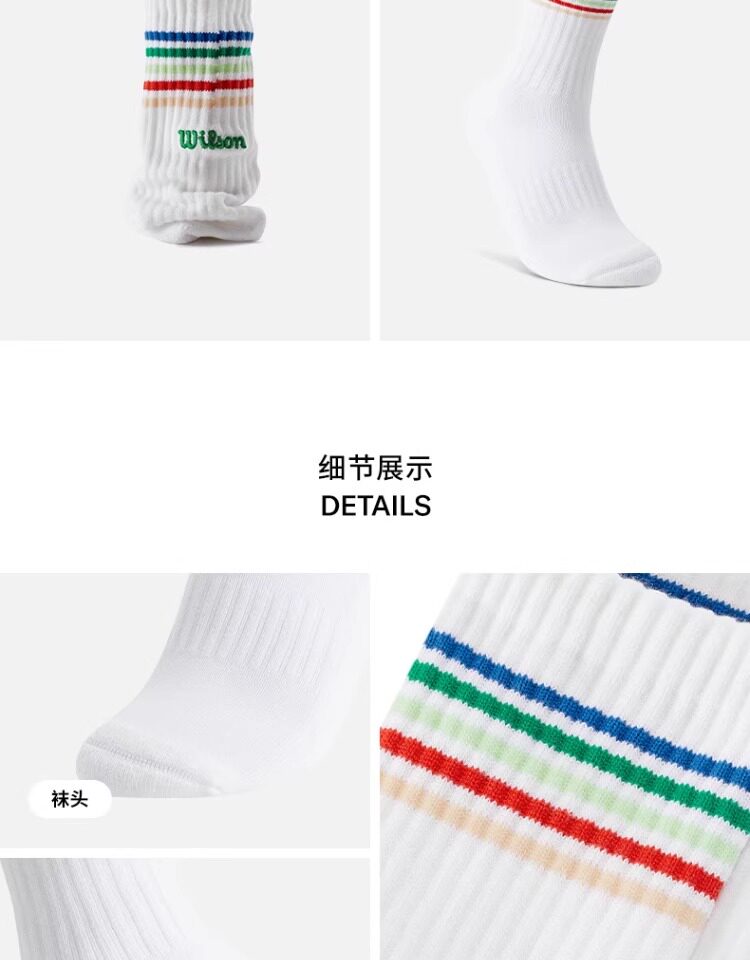 Wilson Tennis Socks Men's and Women's Sports Socks 2025 New Style Combed Cotton Breathable Sweat-Wicking High Elasticity Non-Slip