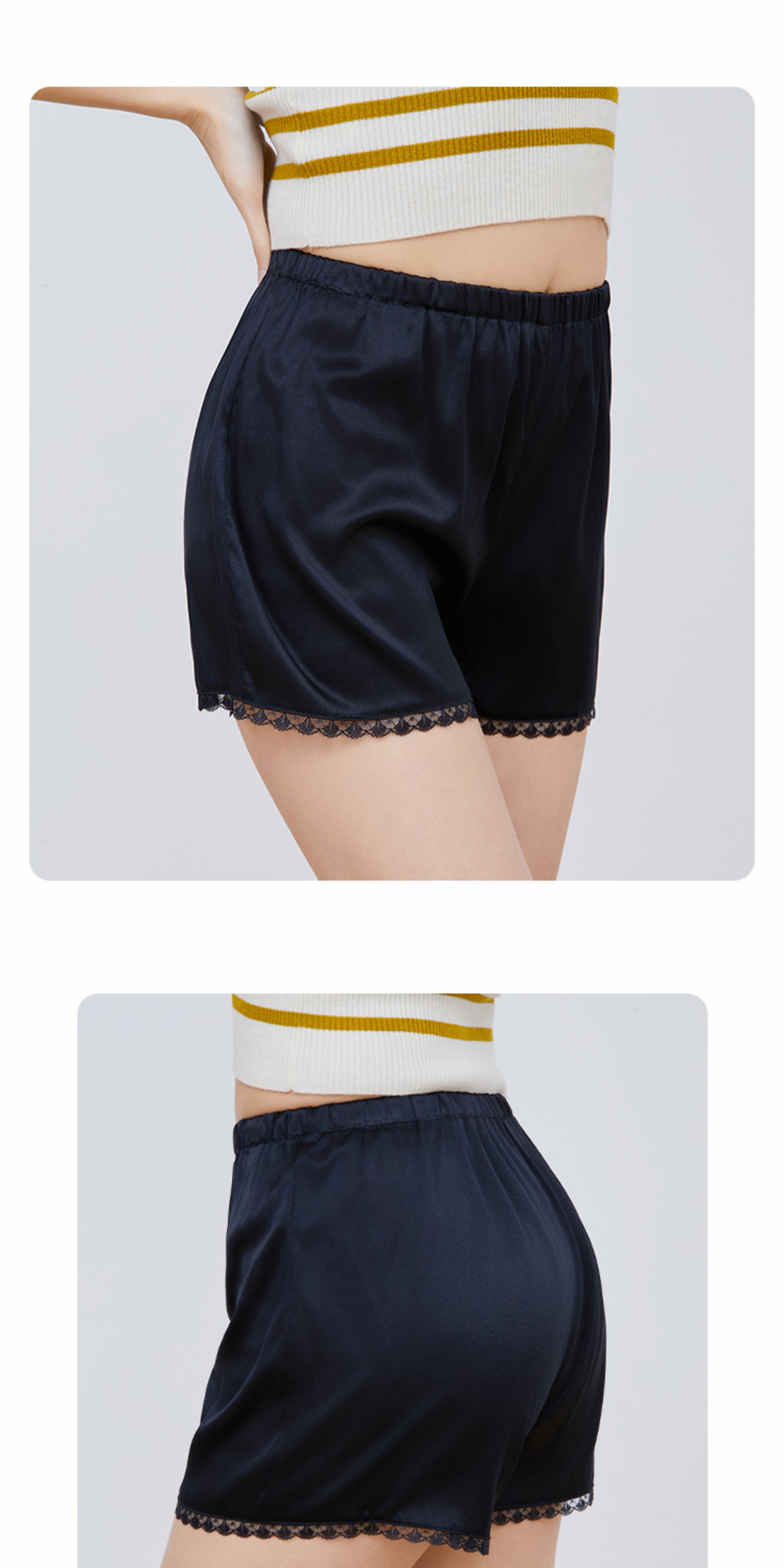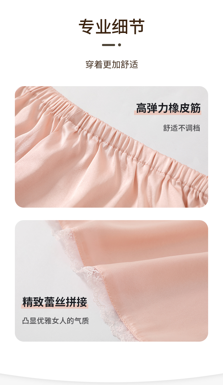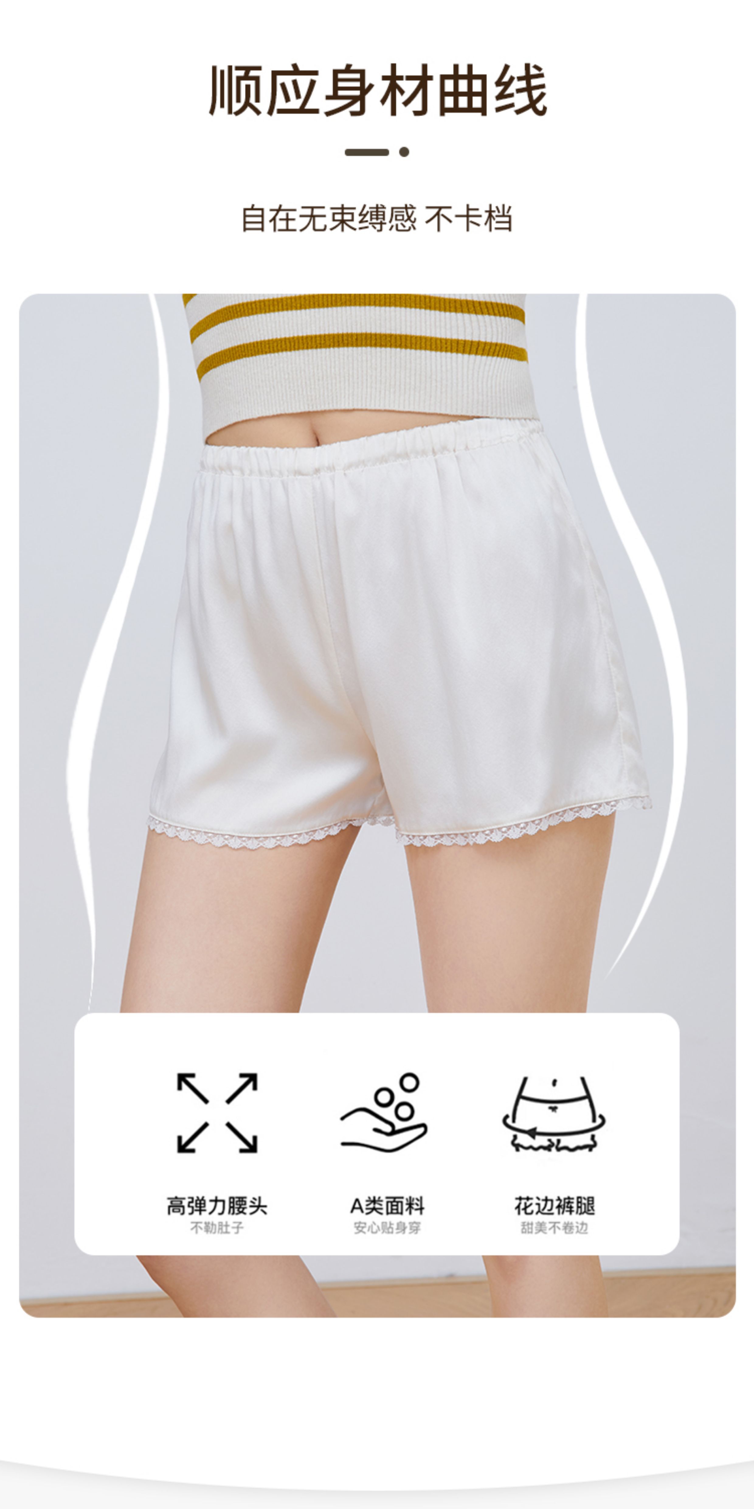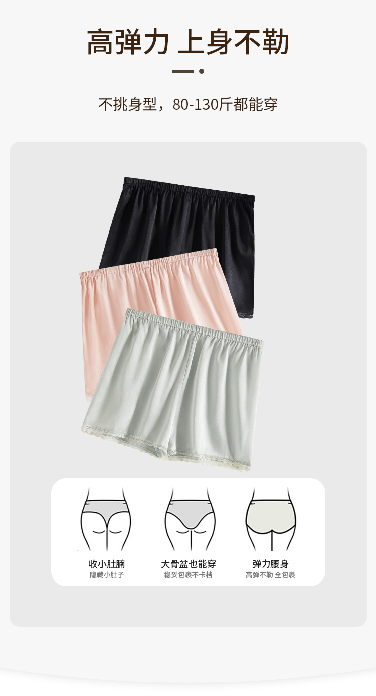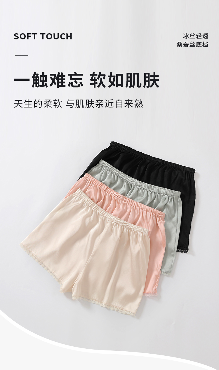 Qingshanjia Women's Silk Leggings, Mulberry Silk, Non-Curling, Four-Corner Lace Panties, Anti-Exposure Shorts, Safety Shorts