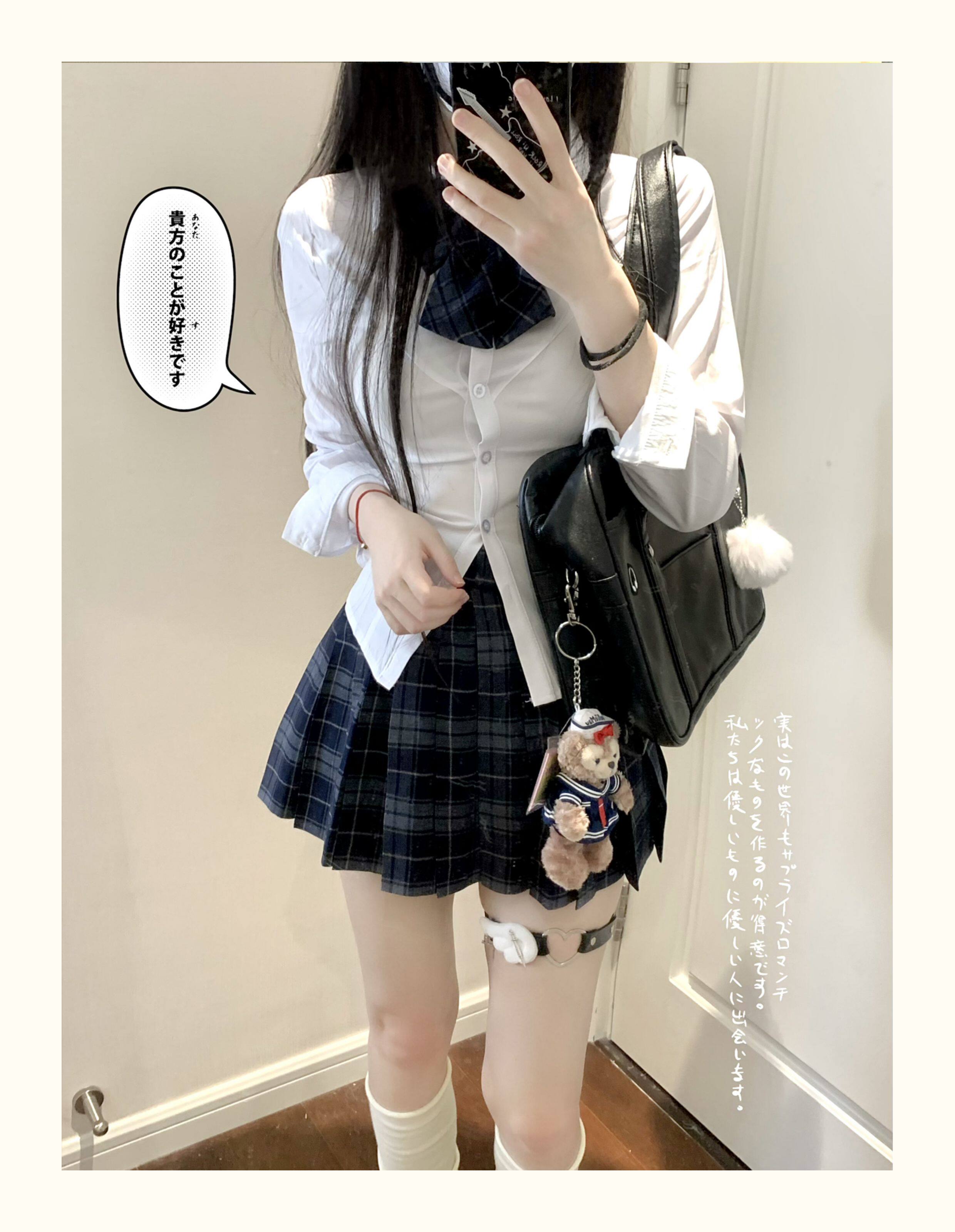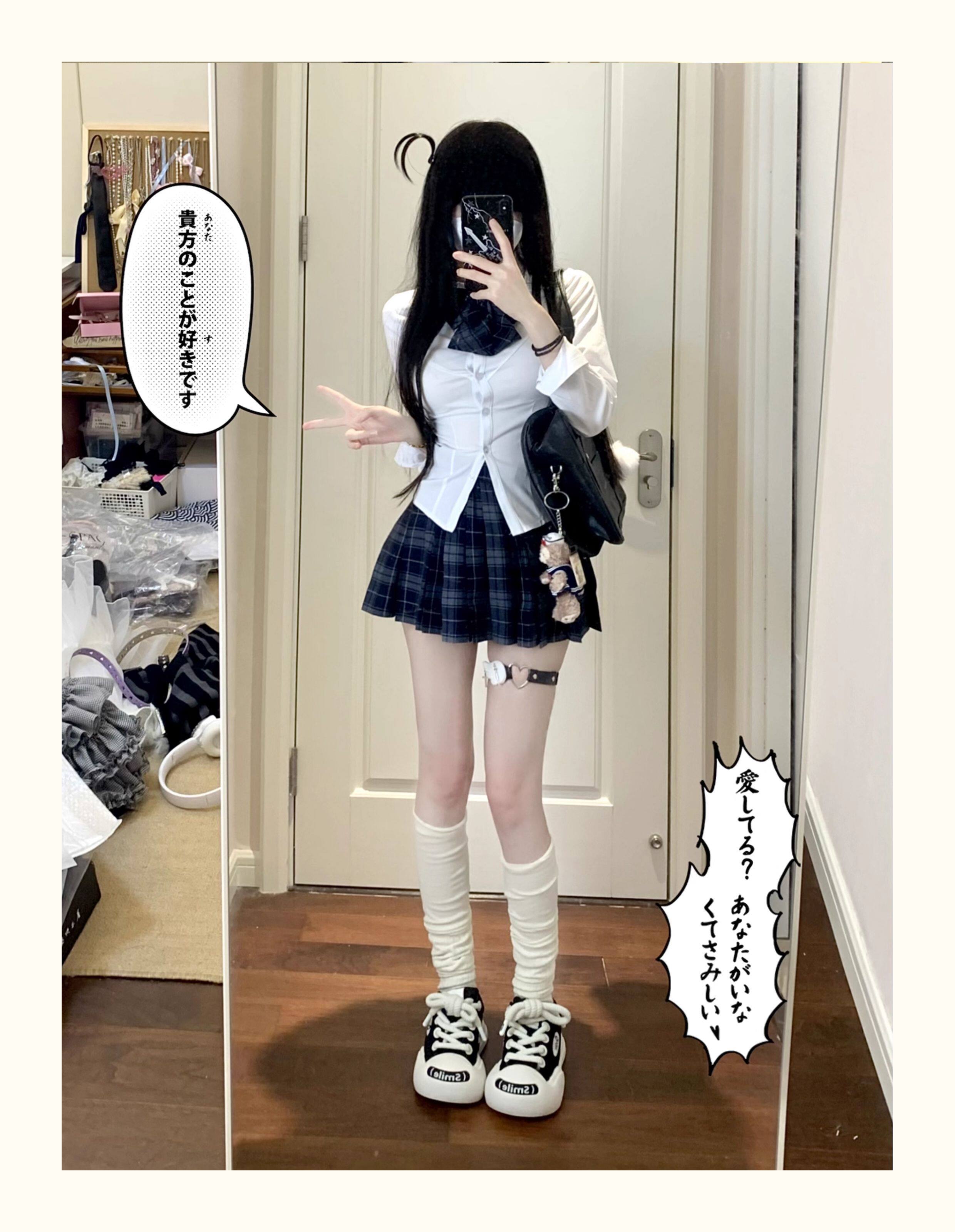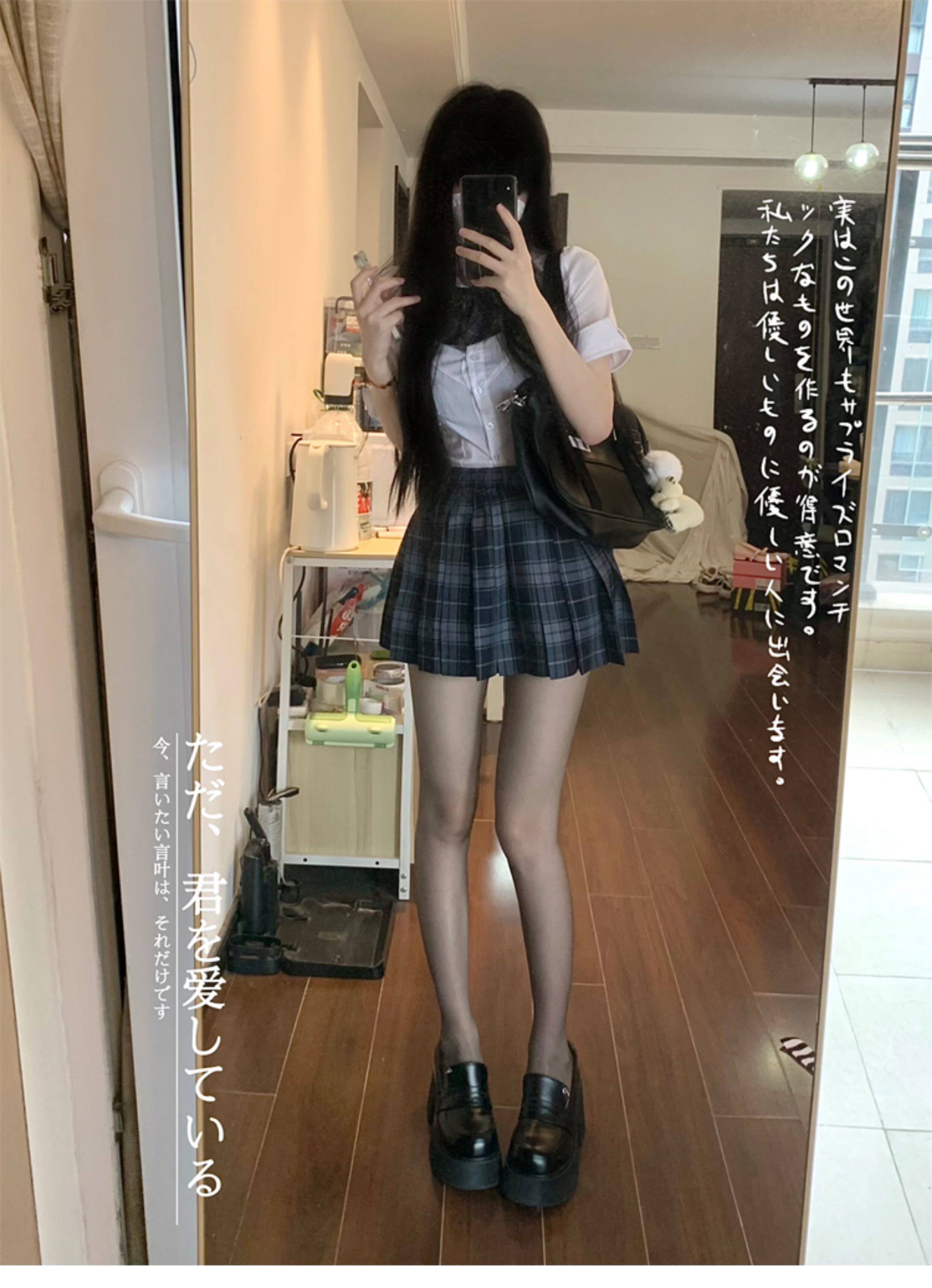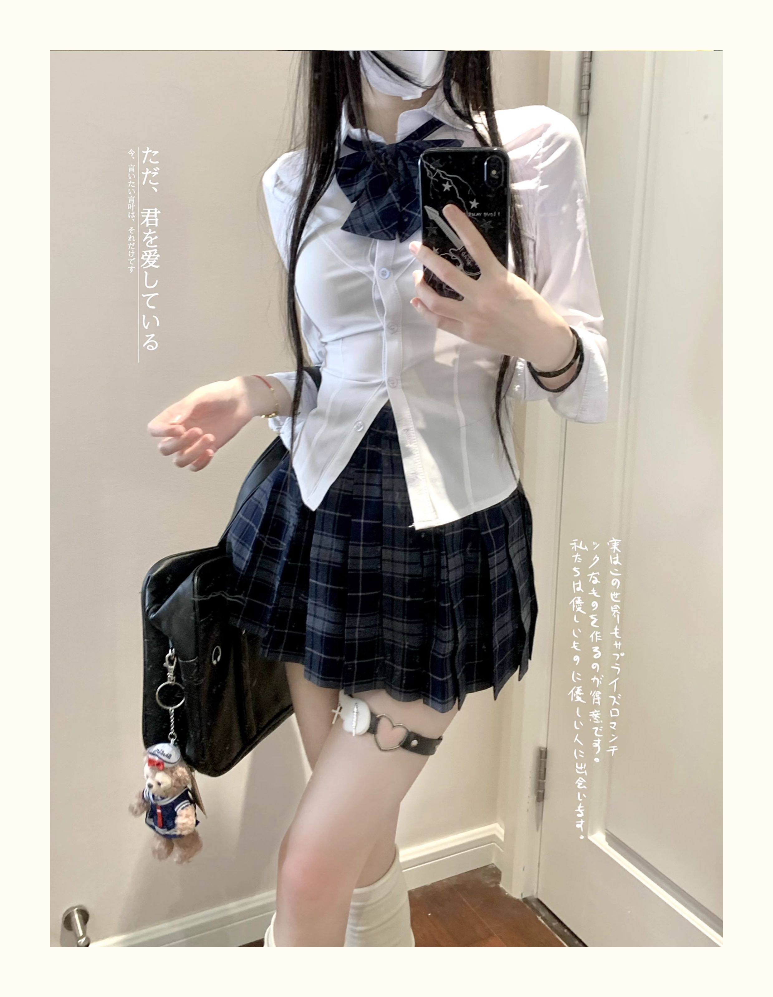 Original Mars Home Jk Uniform Skirt Authentic High-Waisted Pleated Skirt Women's Short Skirt Elastic Waist Shirt Set