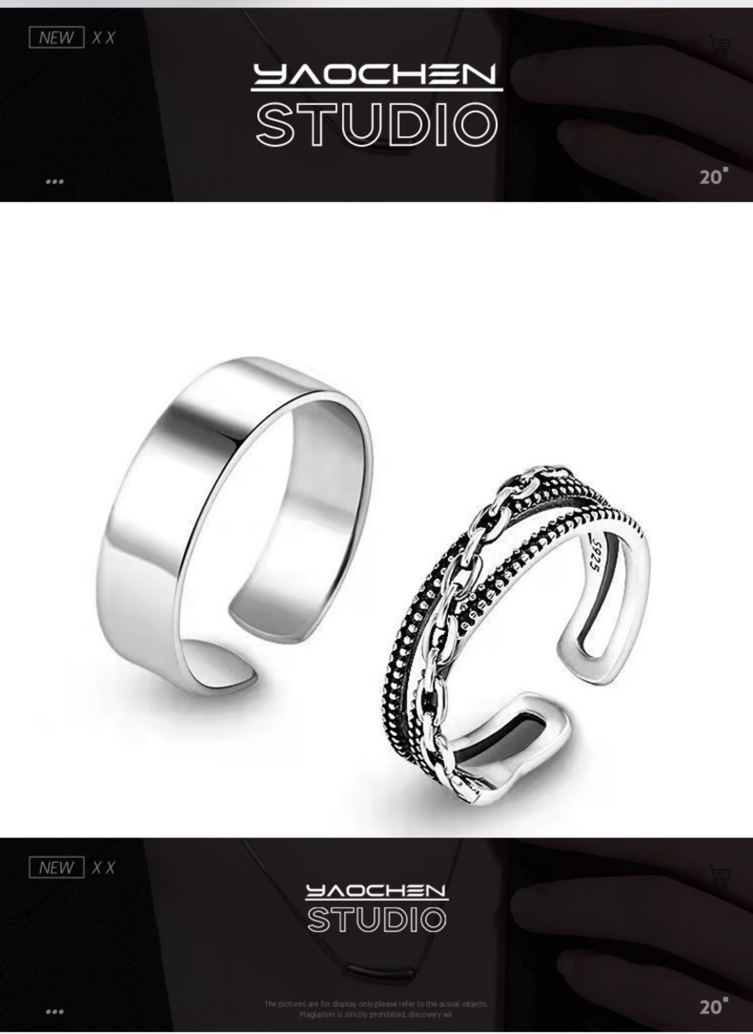 High-End Ring for Men, Cool and Trendy Brand, Minimalist Style, Niche Personality, Trendy Open-Ended Vintage Simple Men's Single Ring