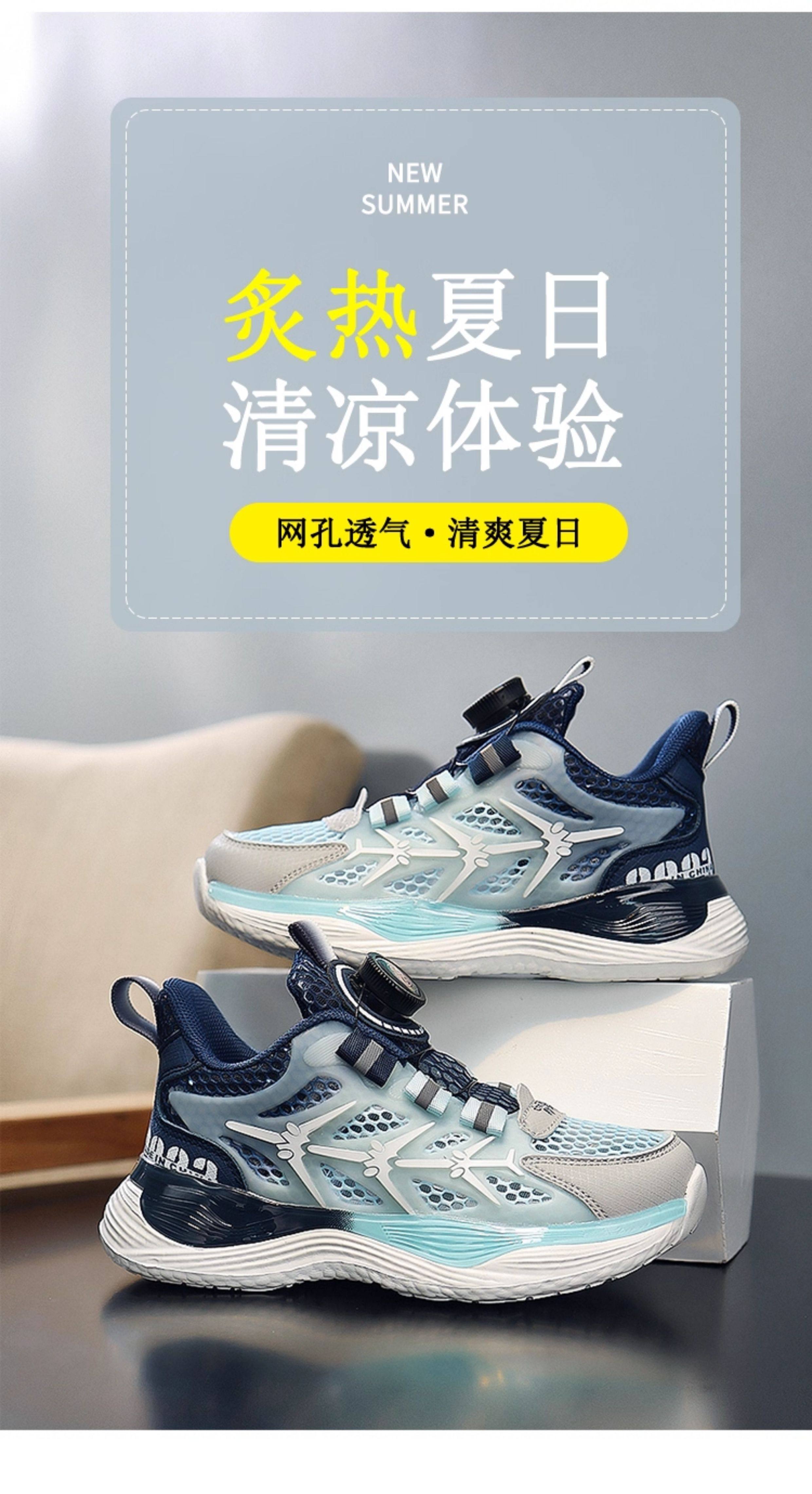 Deknikeup Boys' Luminous Shoes 2026 New Summer Youth Button Breathable Single Mesh Basketball Sneakers