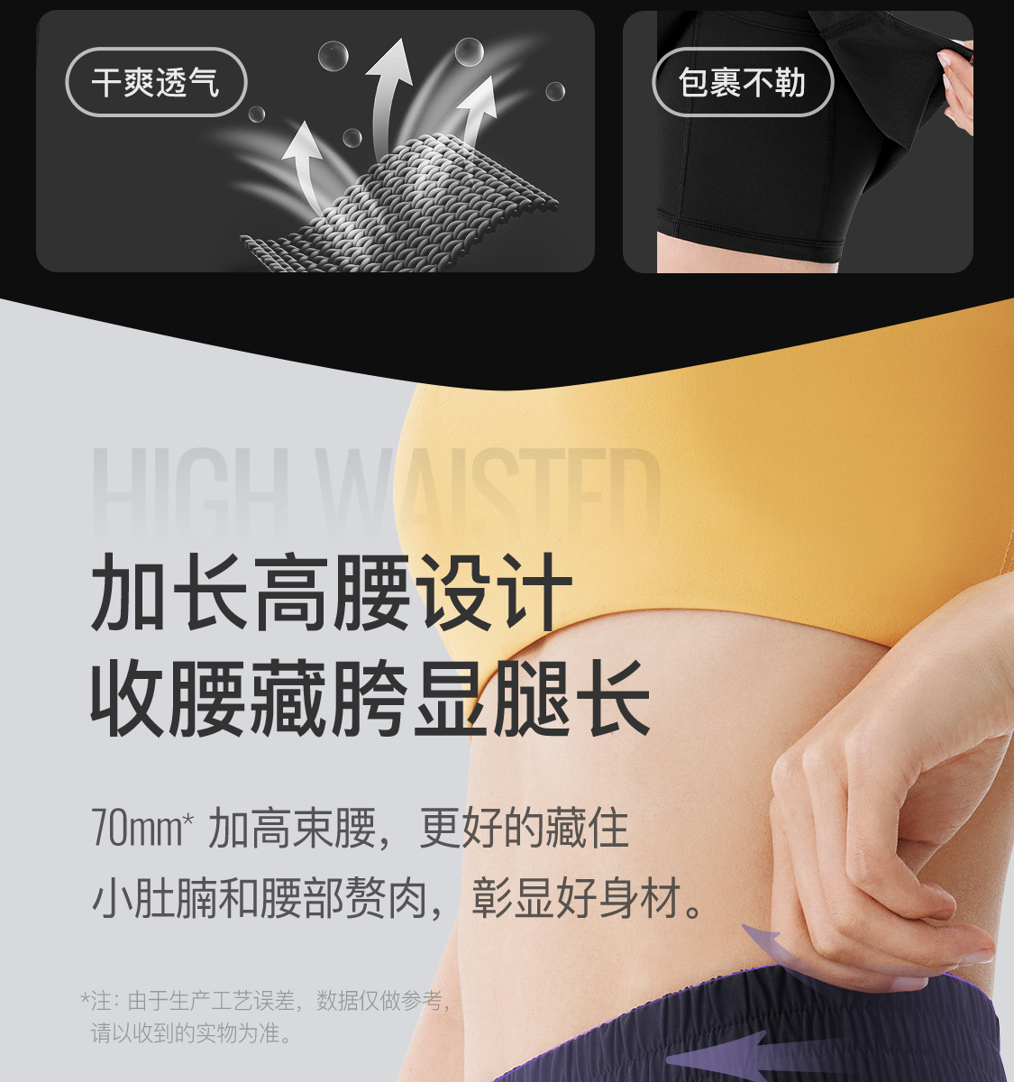 Keep Two-In-One Sports Shorts for Women, Outdoor High-Waisted with Inner Lining to Prevent Exposure, Running Training Yoga Fitness Shorts for Women