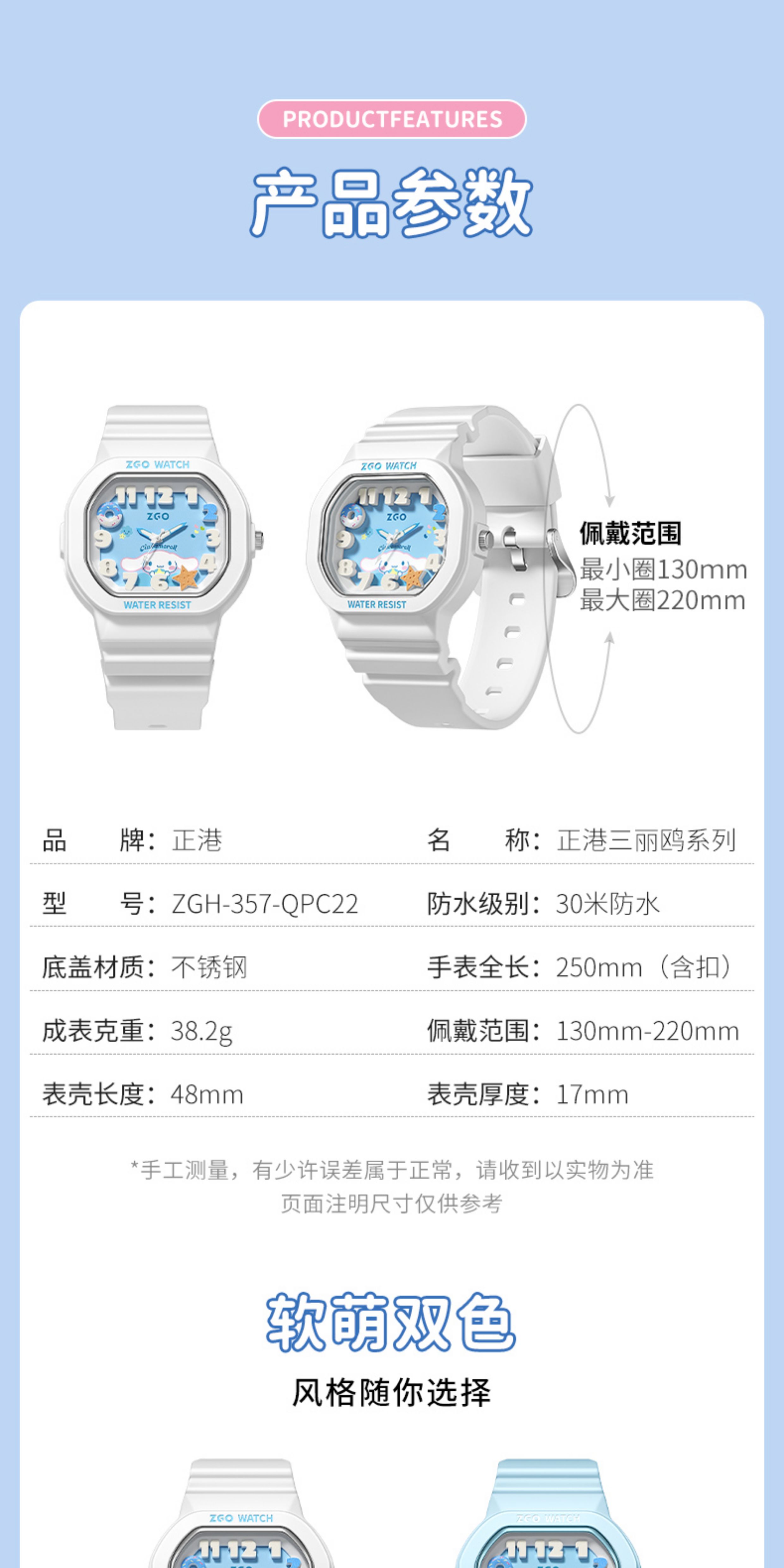 Sanrio Genuine Cinnamoroll Watch for Children, Girls, Women's Birthday Gift for Girls, Elementary School Students, Middle and High School Girls
