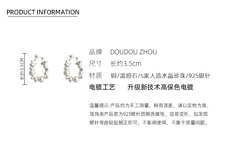 Doudoustore Broken Silver Pearl White Irregular Design Earrings for Women, Simple and Versatile Spring/Summer Ear Accessories