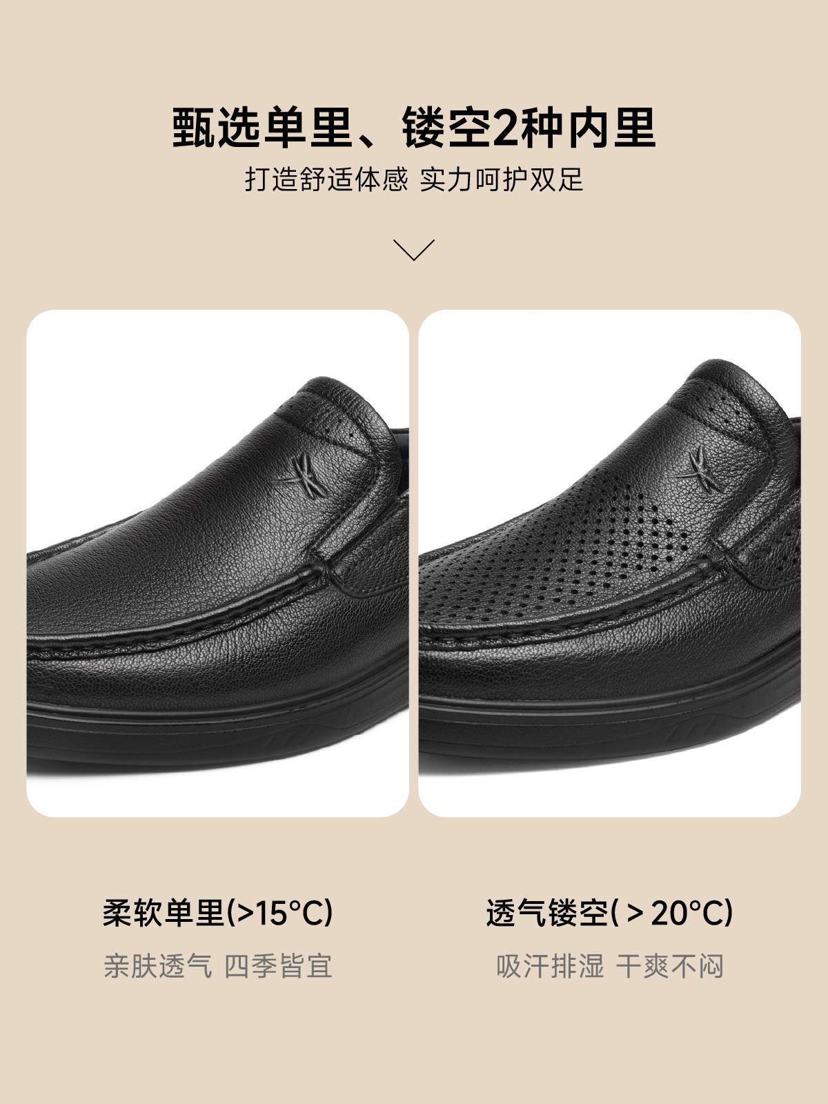 Red Dragonfly Leather Shoes for Men, Spring Genuine Leather Men's Shoes, Soft-Soled Single Shoes, Large Size Comfortable Casual Shoes for Middle-Aged and Elderly People