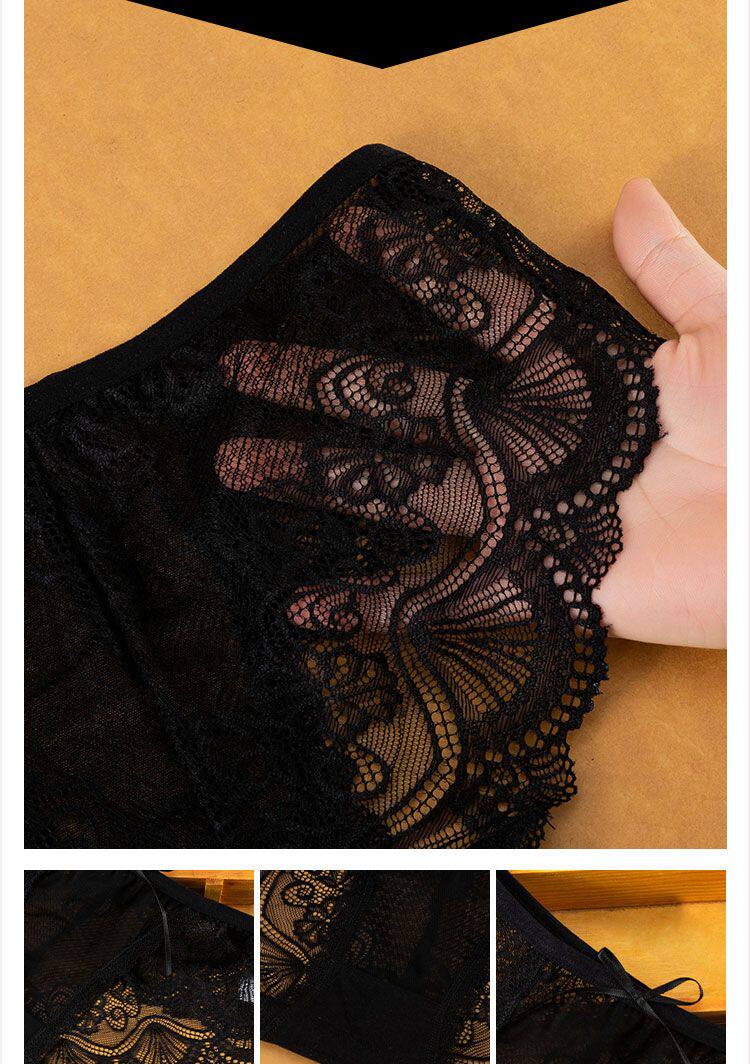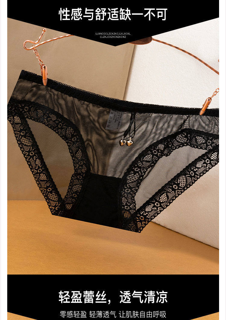 Black Sexy Lace Panties for Women, Transparent, Breathable, Seamless, Mesh, Hollow-Out, Pure Desire Style, Comfortable Summer Briefs, Thin