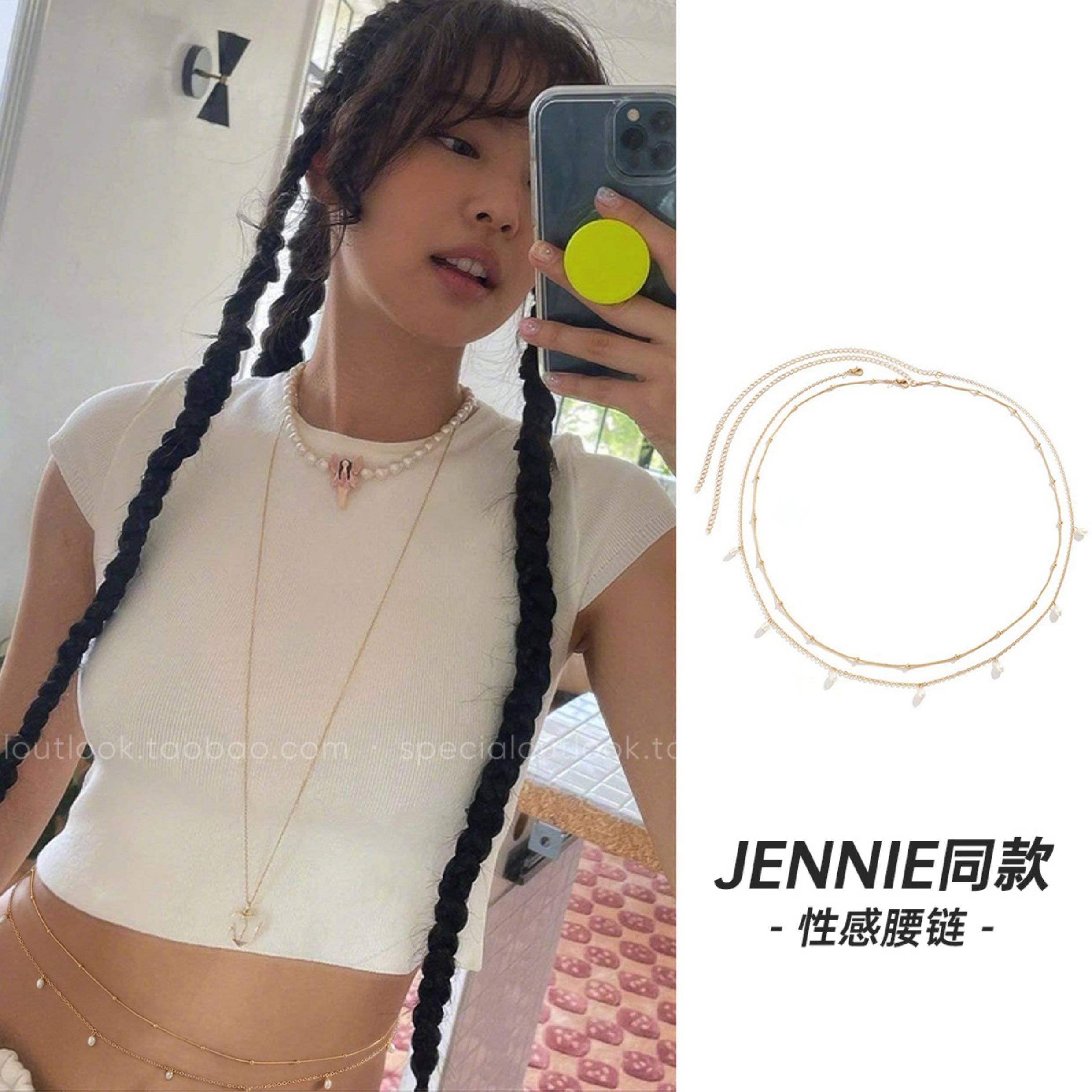 Pearl waist chain with skirt women's double belly dance body chain metal thin chain sexy fun belly button chain accessories