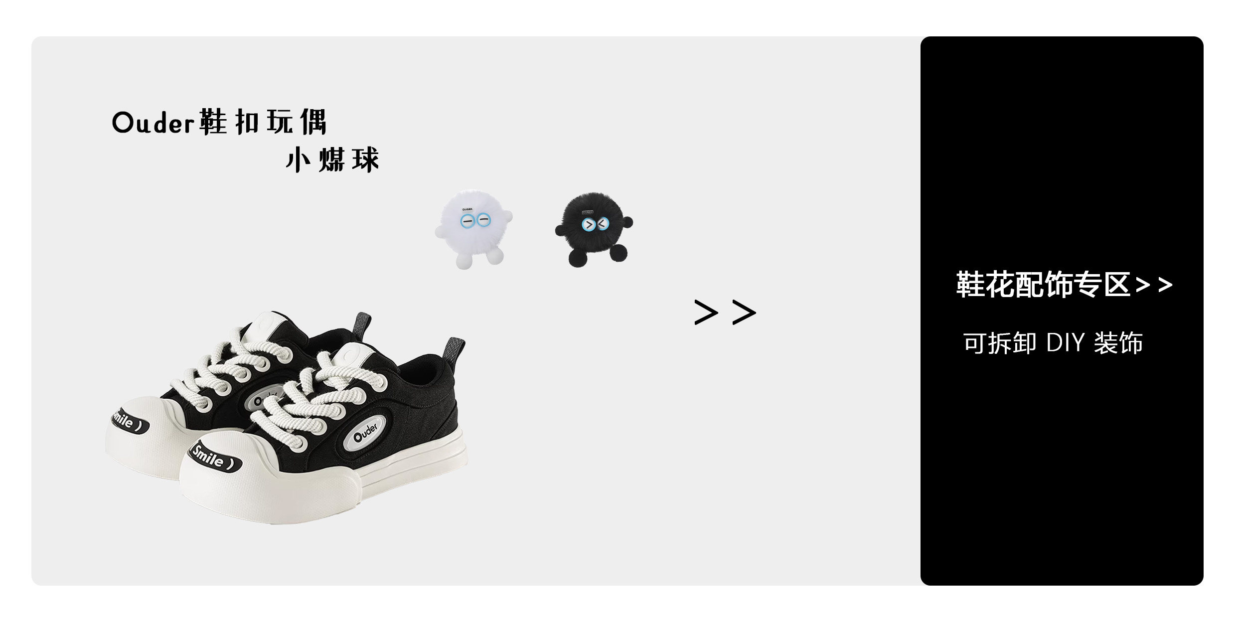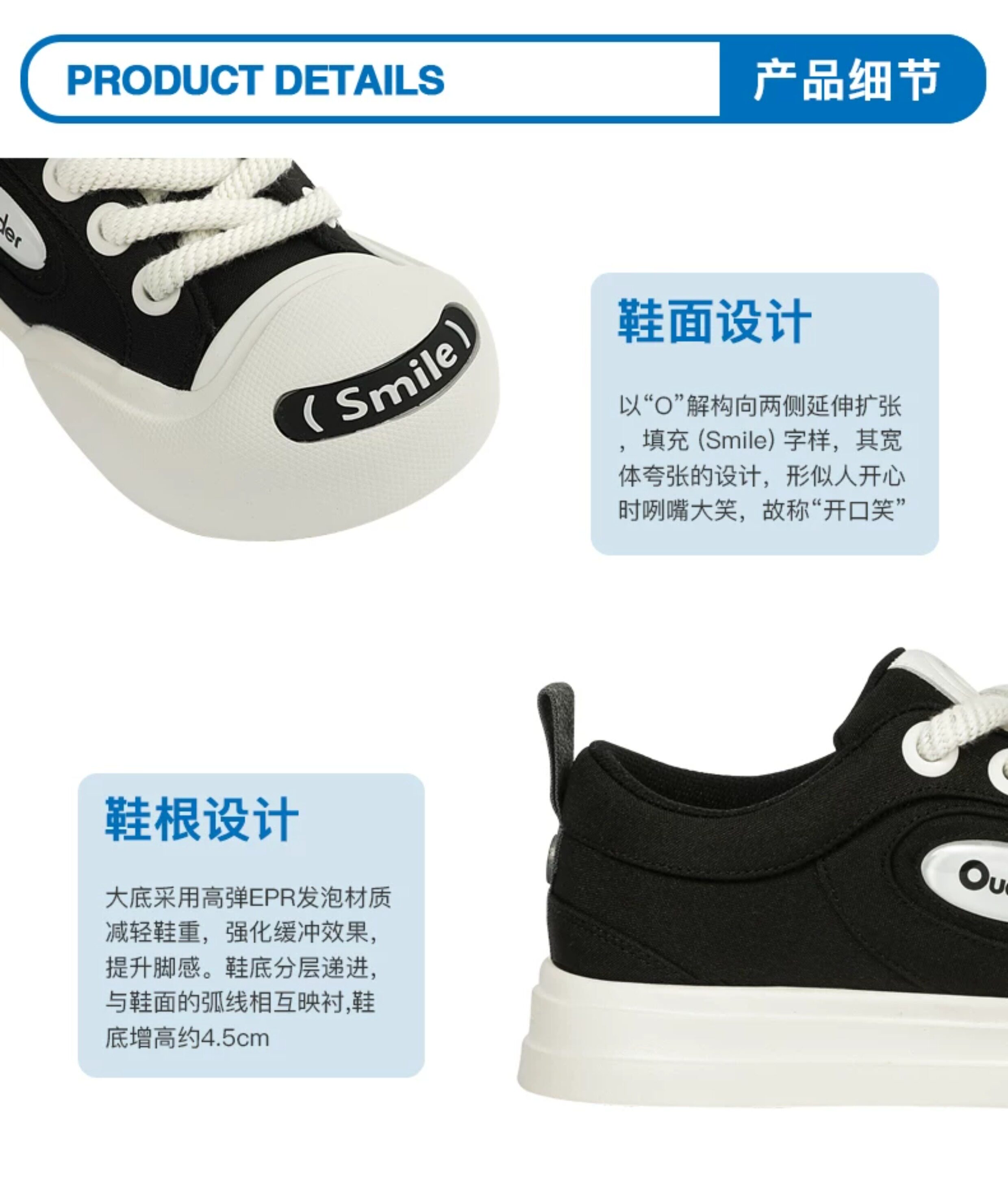 White Deer Same Style Ouder Open Smile Canvas Shoes for Men and Women, Thick-Soled Height-Increasing Black and White Couple's Big-Toe Shoes