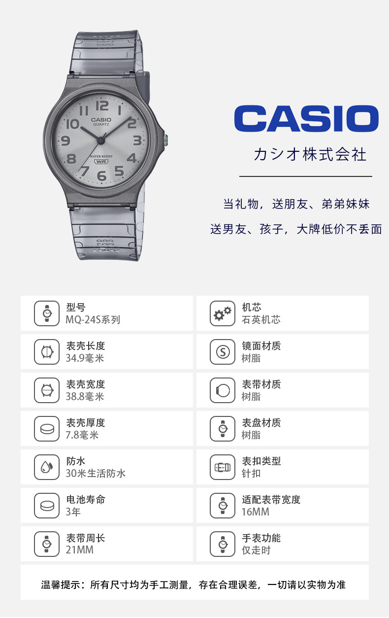 Casio Watch Casio Small Black Watch Student Watch Simple Quartz Fashion Sports Watch Mq-24S-2B 7B 4