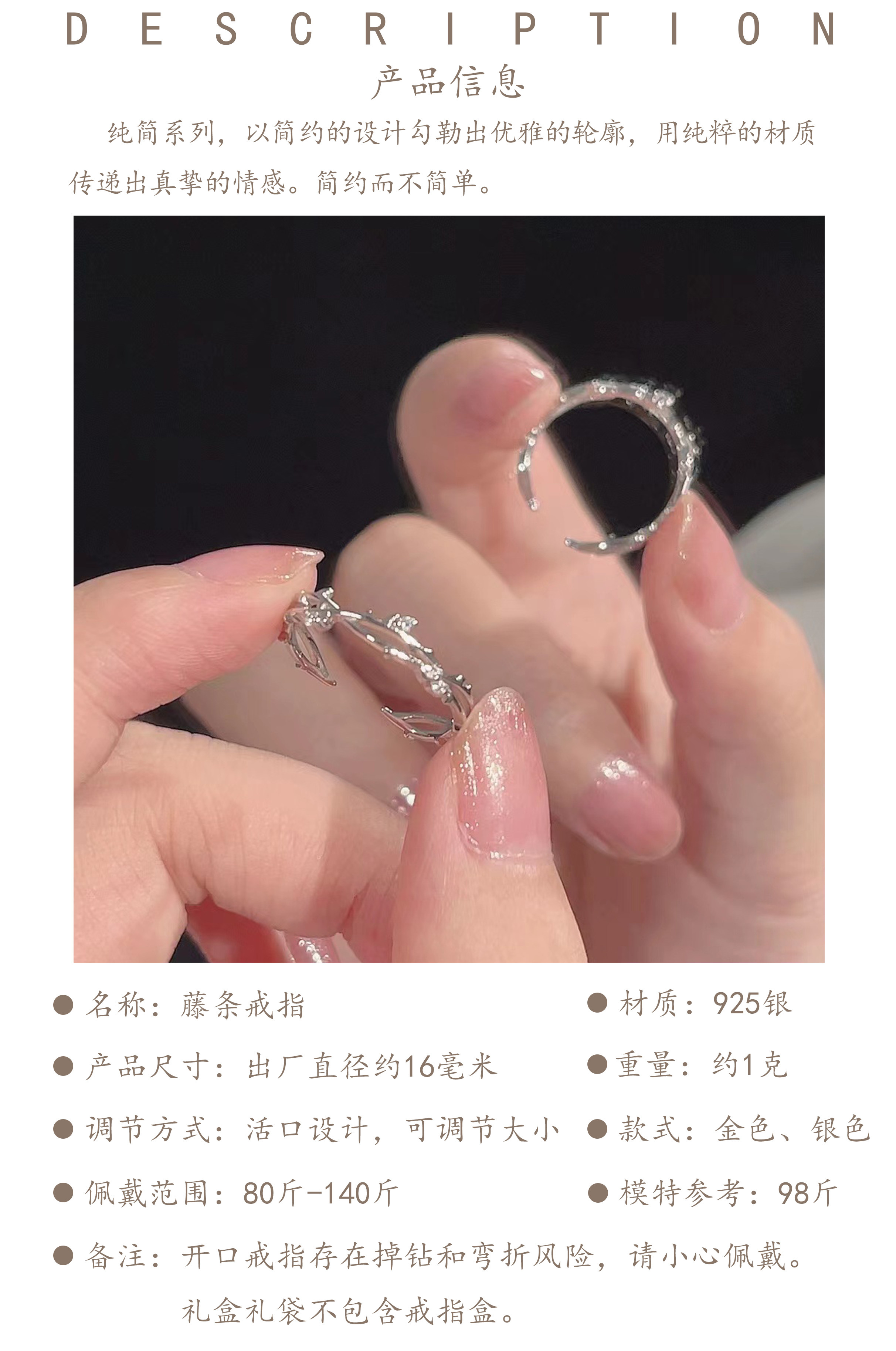 Chuo Pure Silver S925 Silver Vine Ring Thorn Ring Fashionable Elegant Niche Exquisite Versatile Adjustable