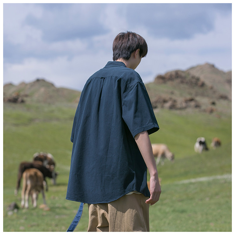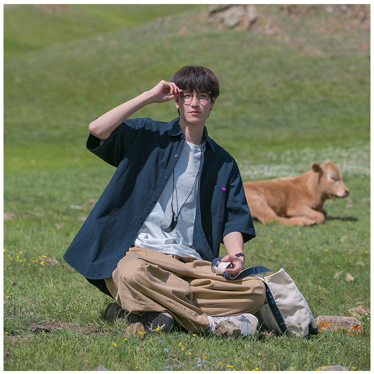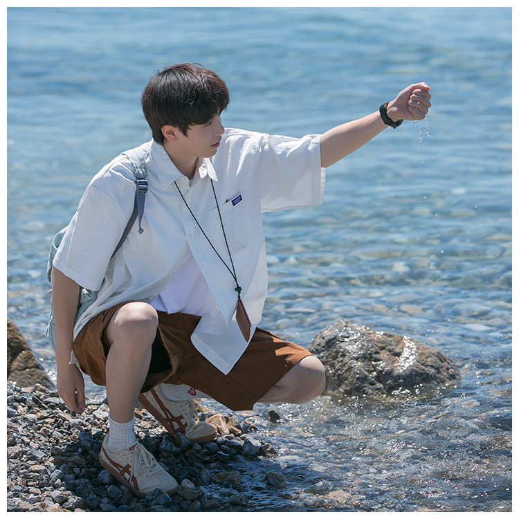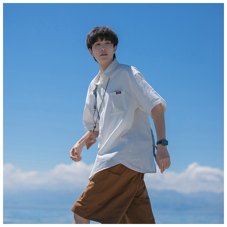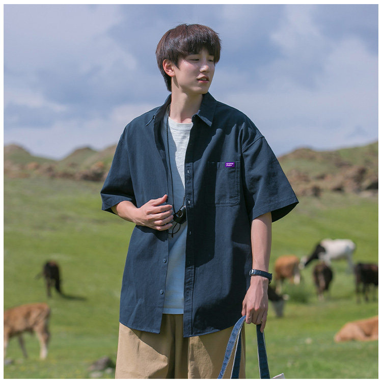 Japanese Style Youthful Short-Sleeved Shirt for Boys, Summer Thin Trendy Brand Loose Half-Sleeve Cool Workwear Shirt Jacket