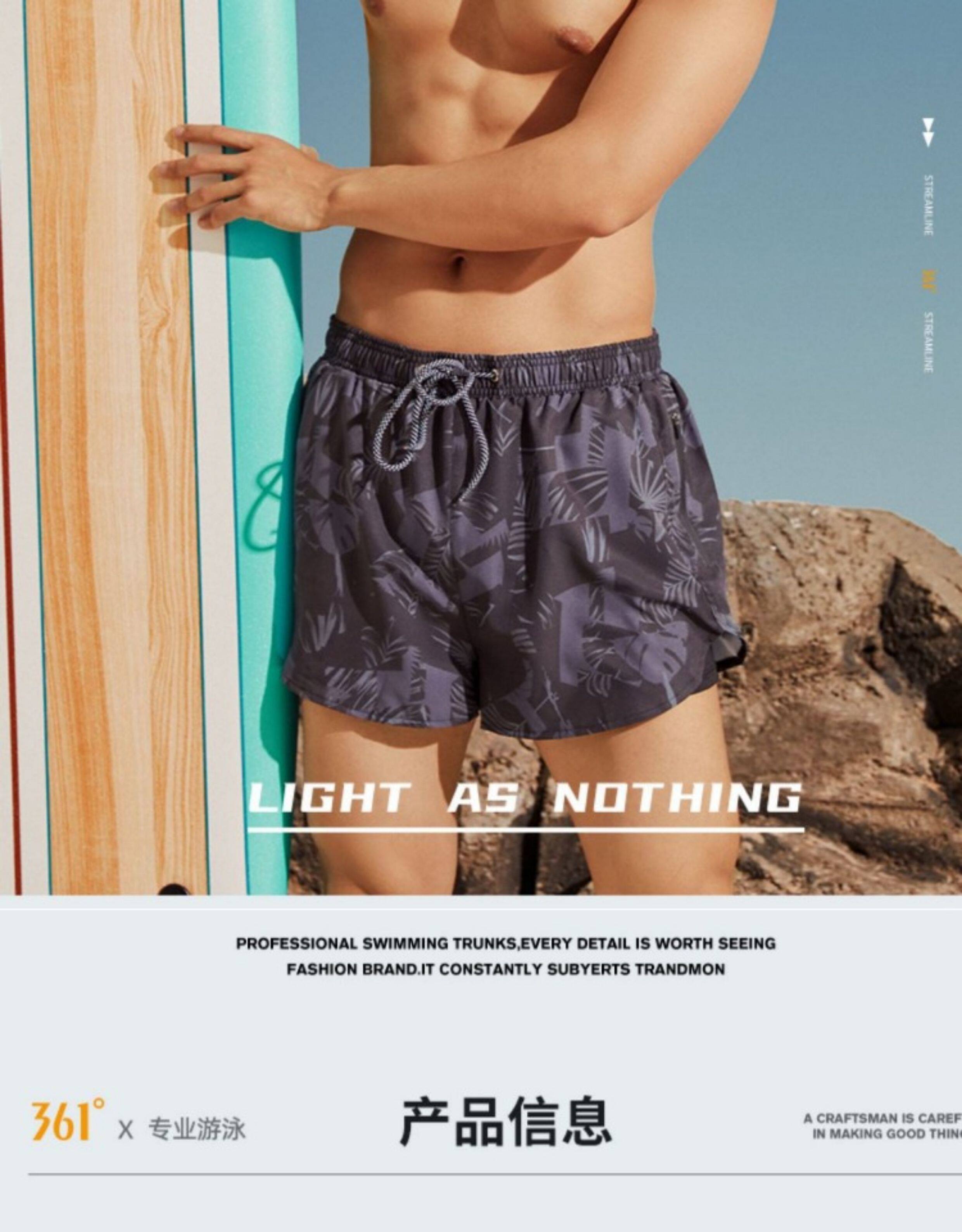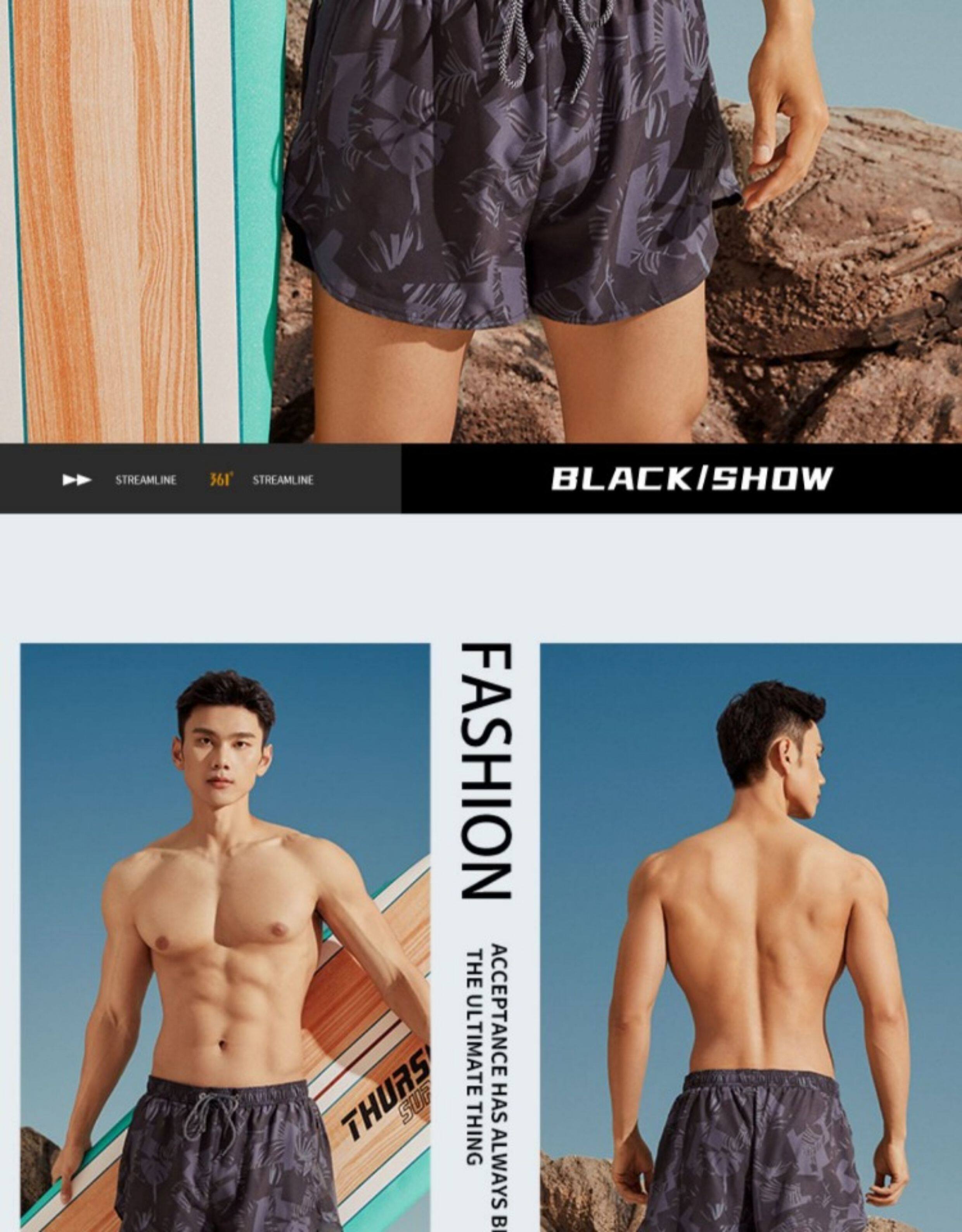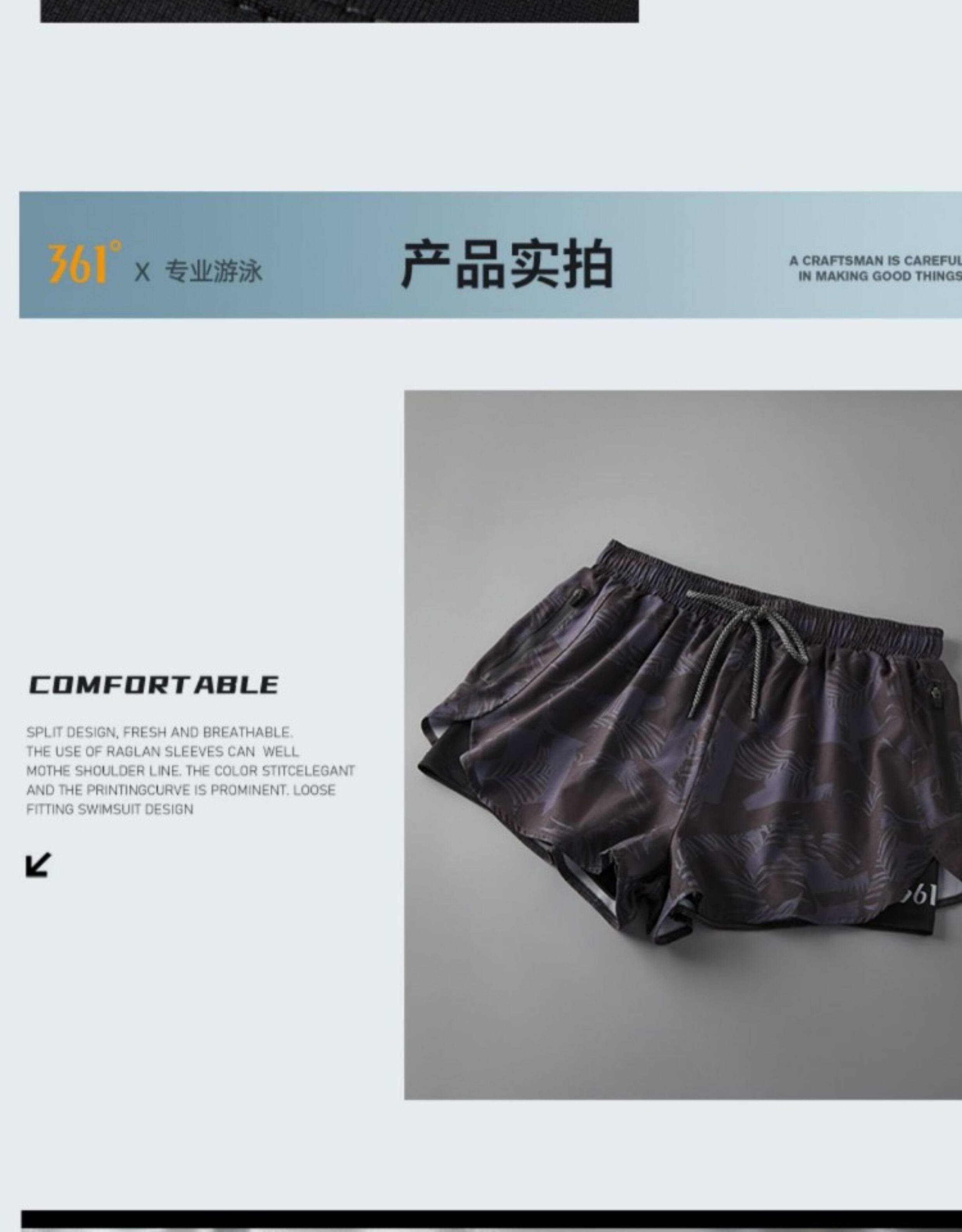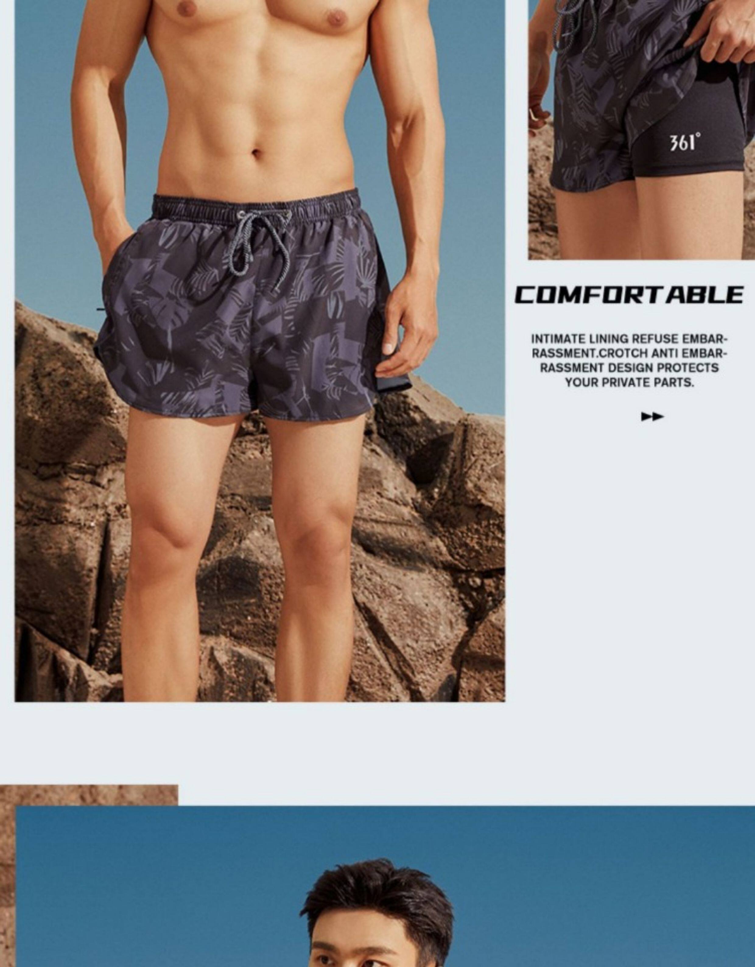 361 Men's Swim Trunks, Two-In-One Design, Swim Cap and Goggles Included, Anti-Embarrassment, Loose Fit, Double-Layer Beach Shorts, Plus Size Gear