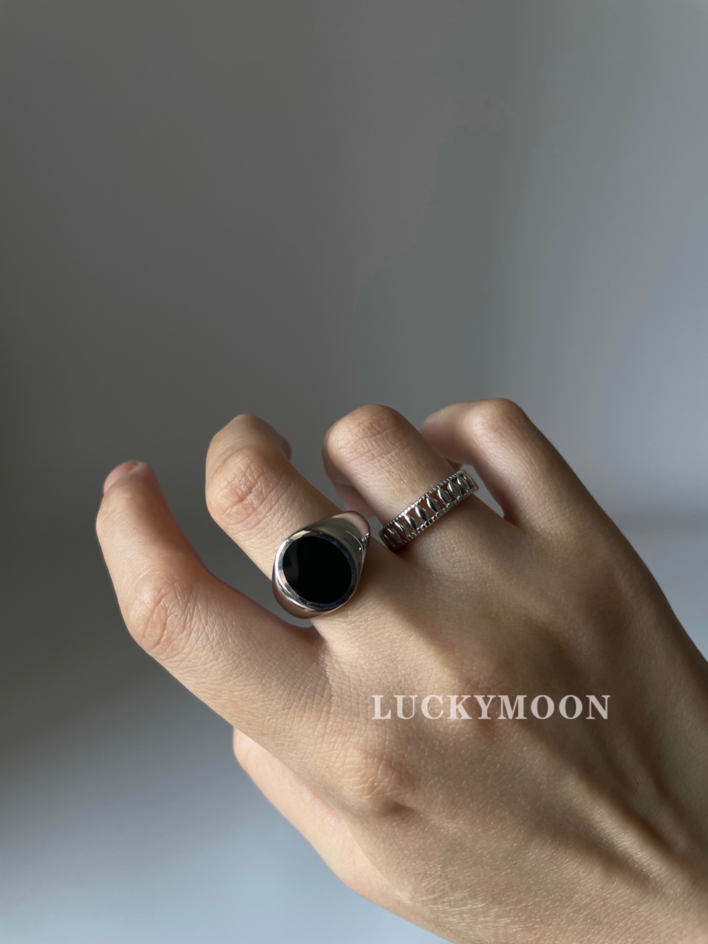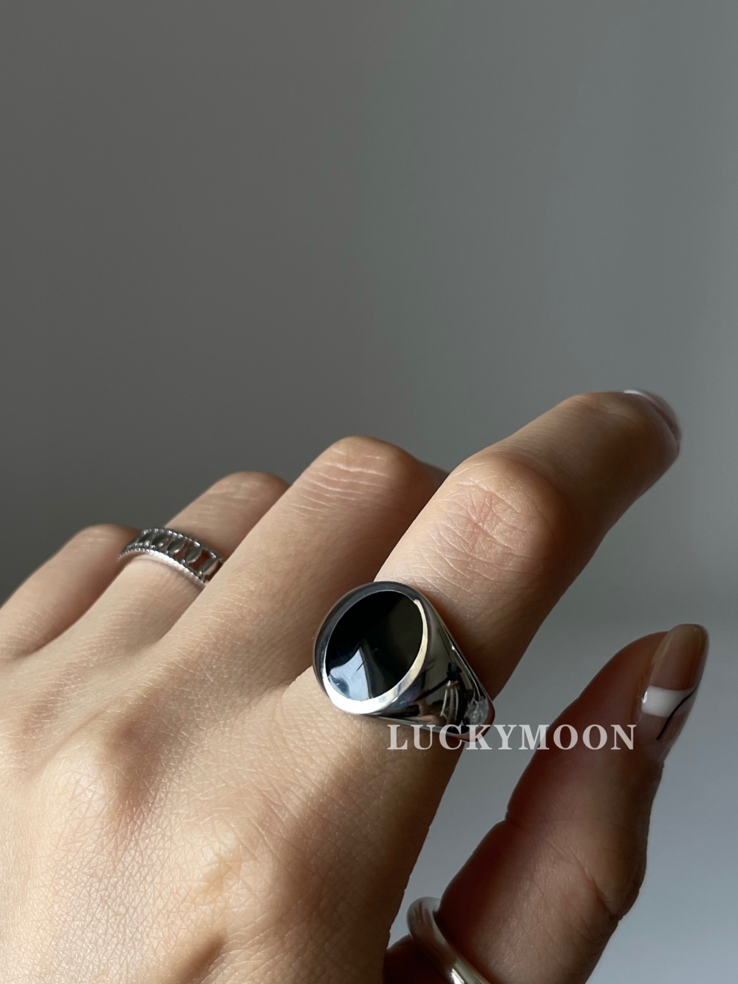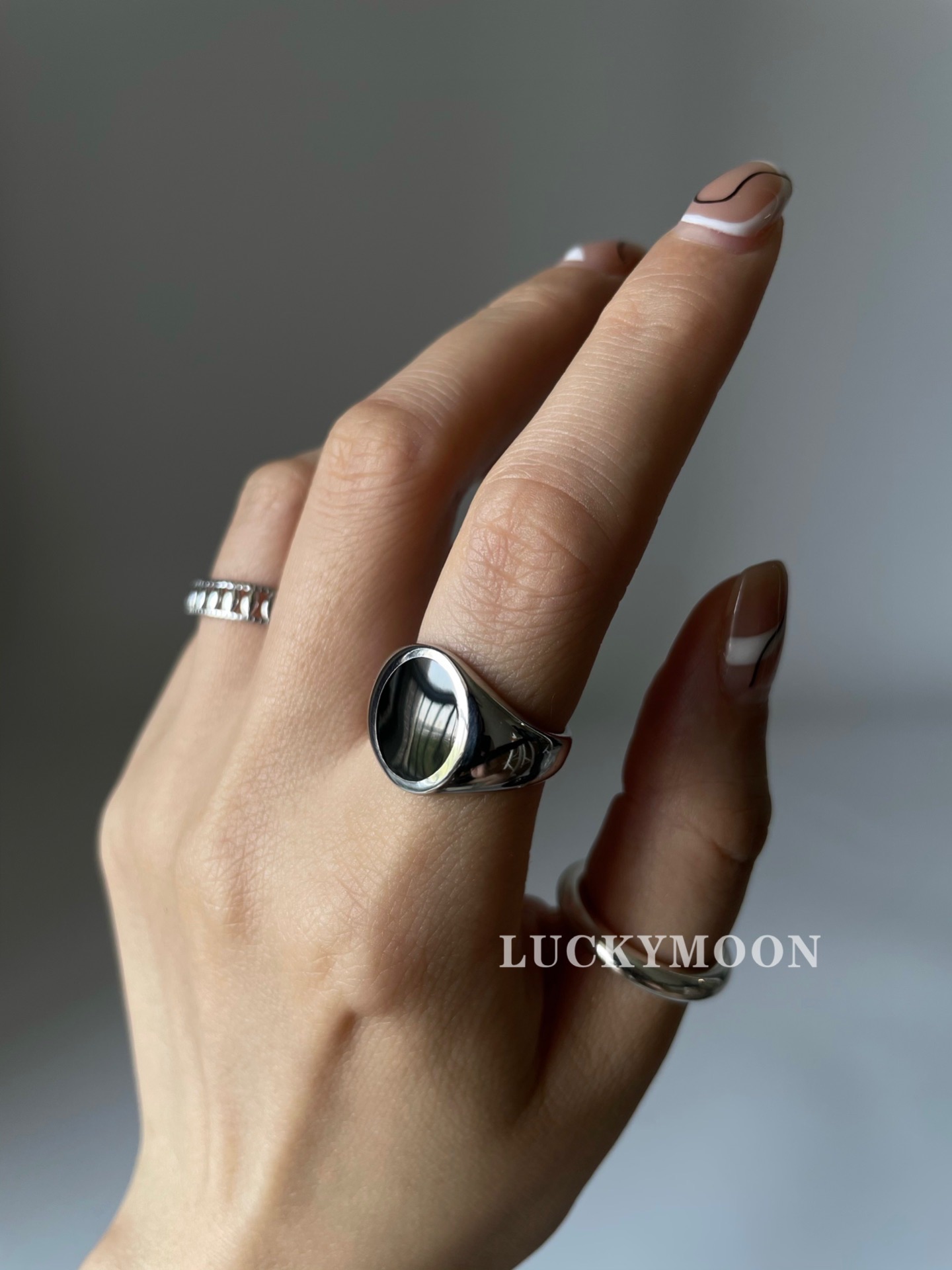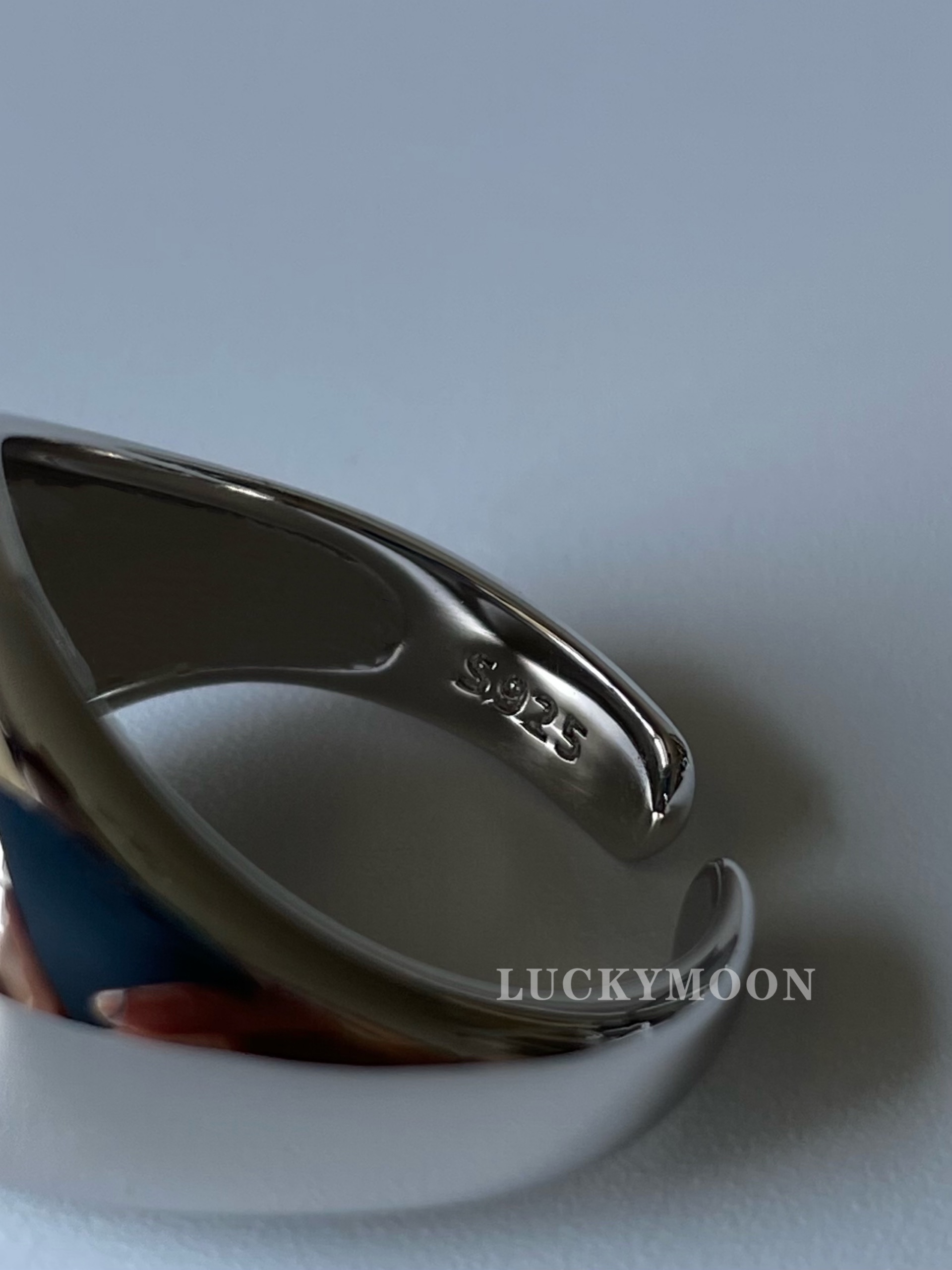 Luckymoon Neutral Enamel Glazed Ring S925 All-Over Sterling Silver R162