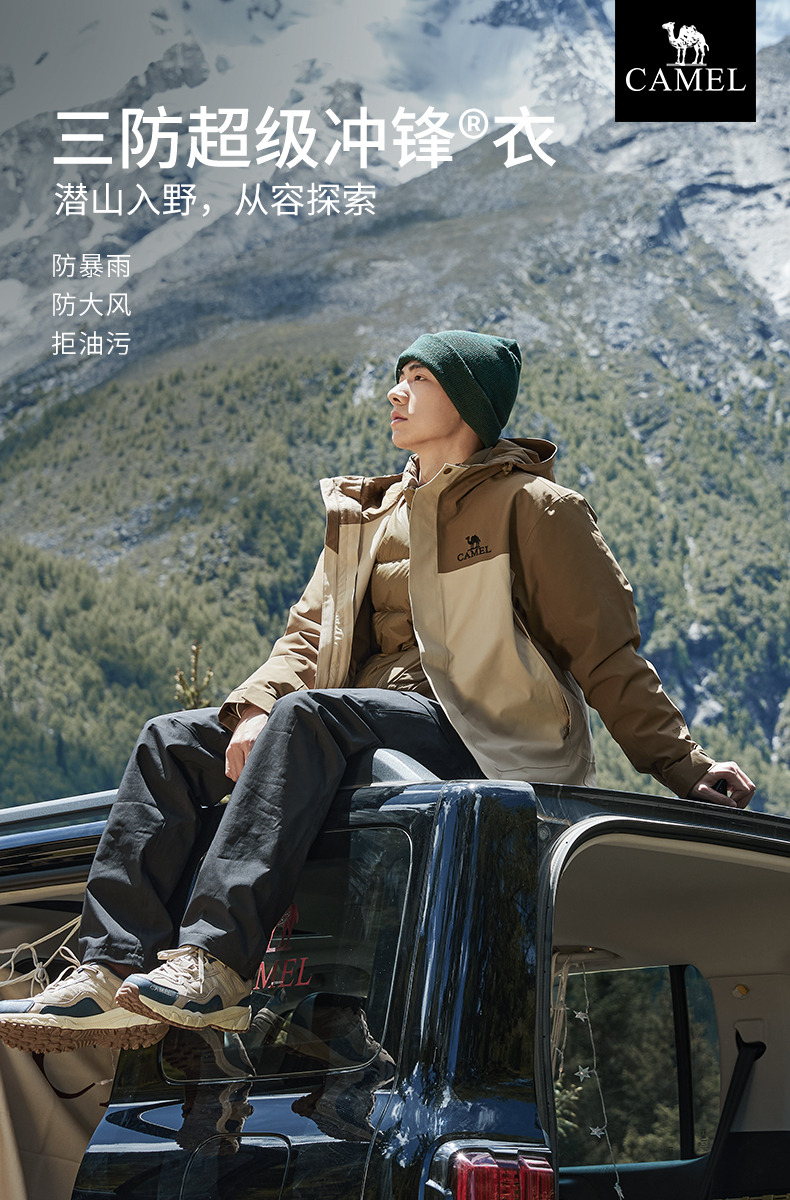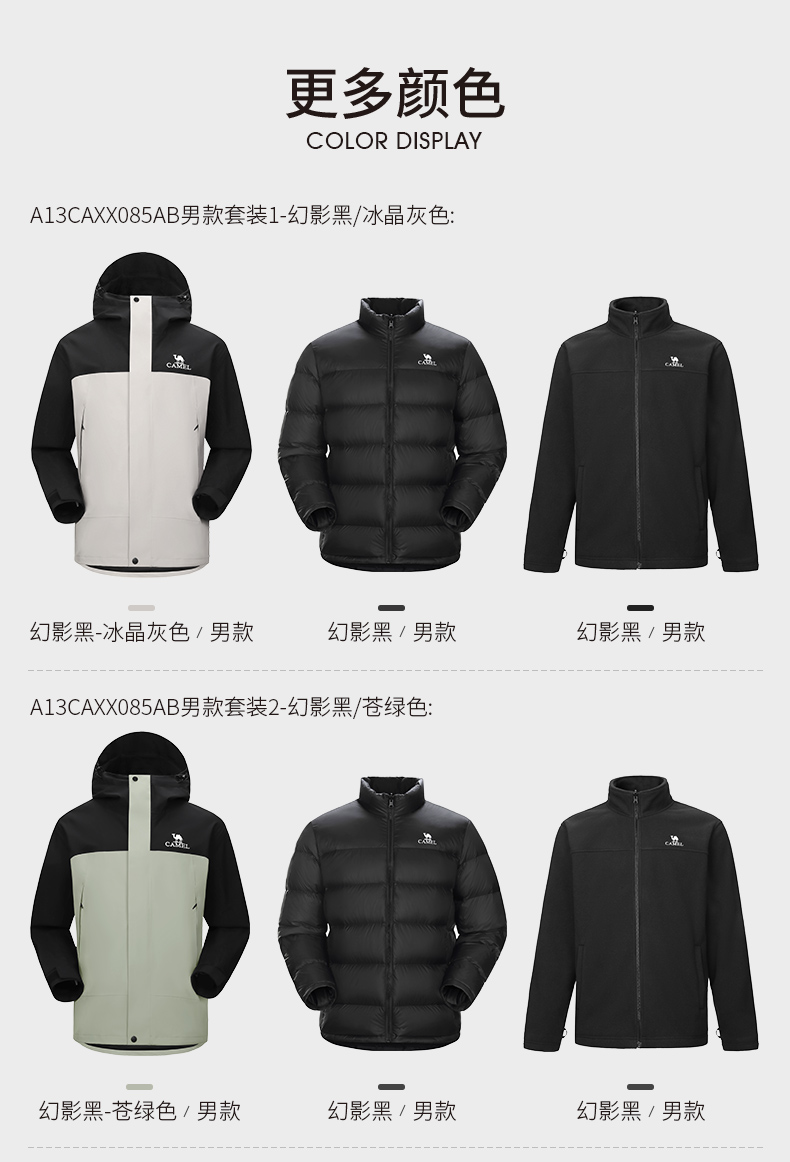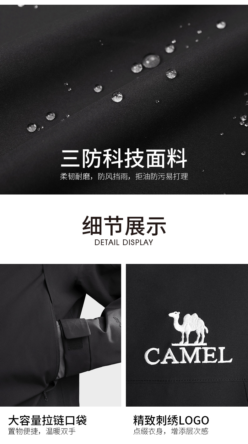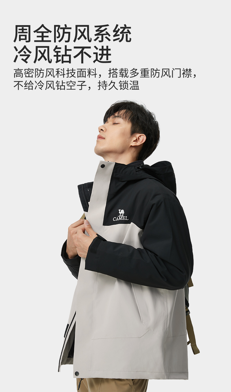 Camel North Wind Jacket Men's 3-in-1 down Jacket Winter Outdoor Windproof Waterproof Travel Mountaineering Jacket Women's