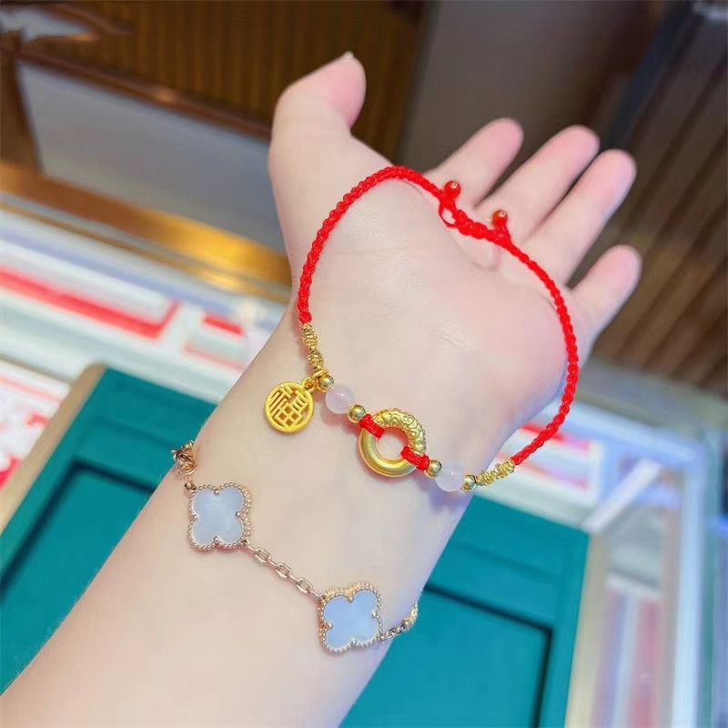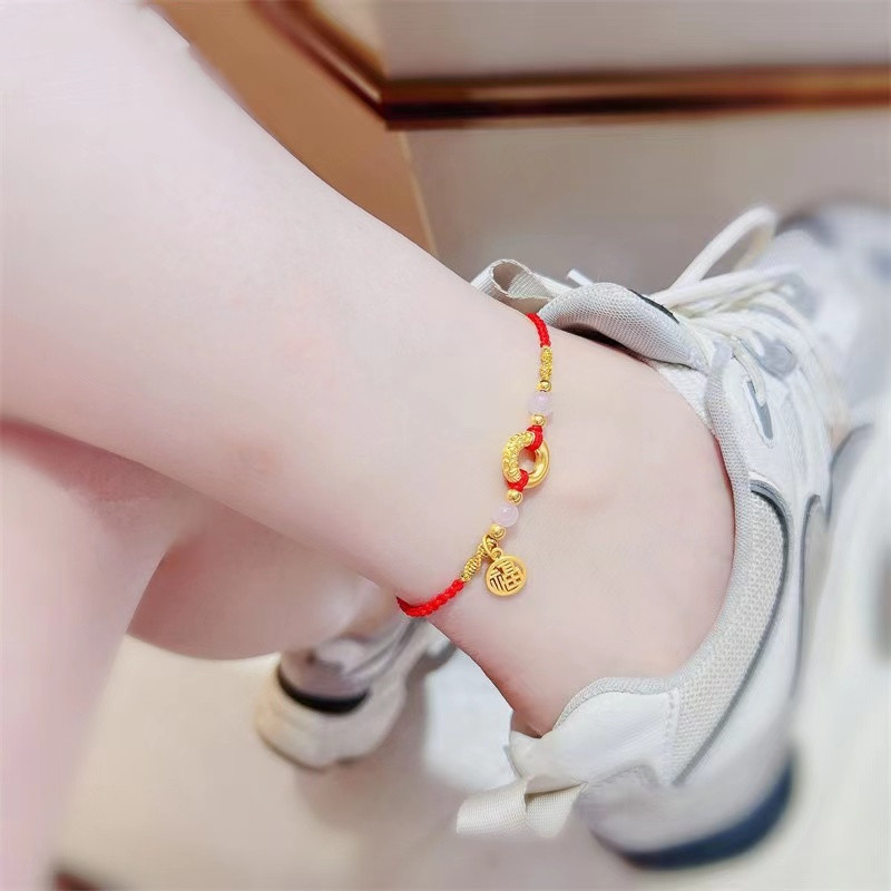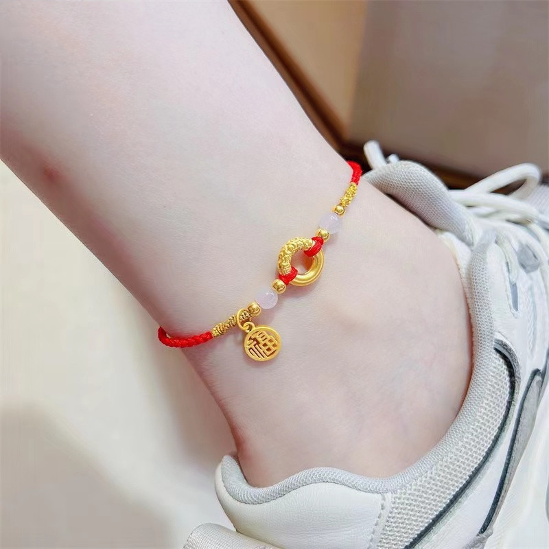 Gold Safety Buckle Charm Anklet for Women 2023 New Trendy 999 Pure Gold Red String Foot Jewelry Bracelet Anklet