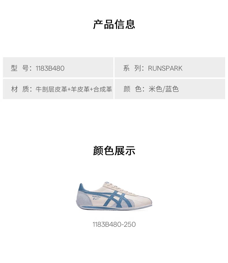 Onitsuka Tiger Runspark Winter Beige Blue Retro Comfortable Sneakers Casual Shoes