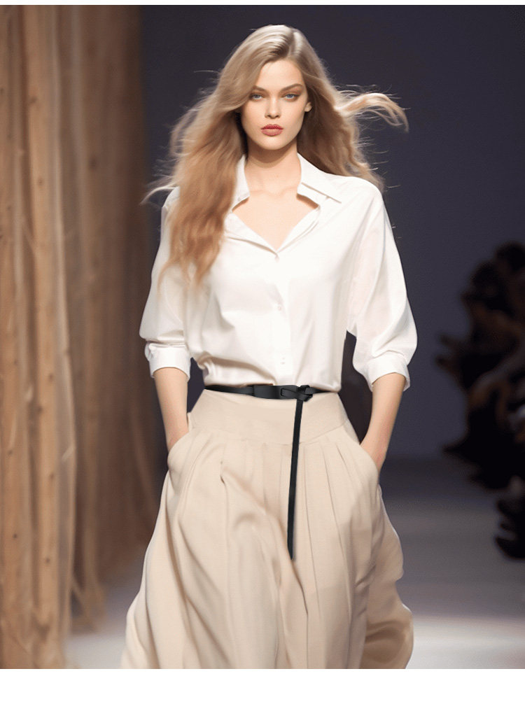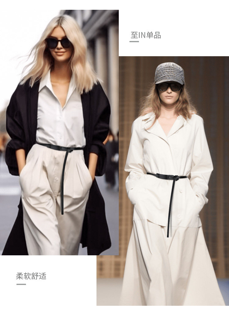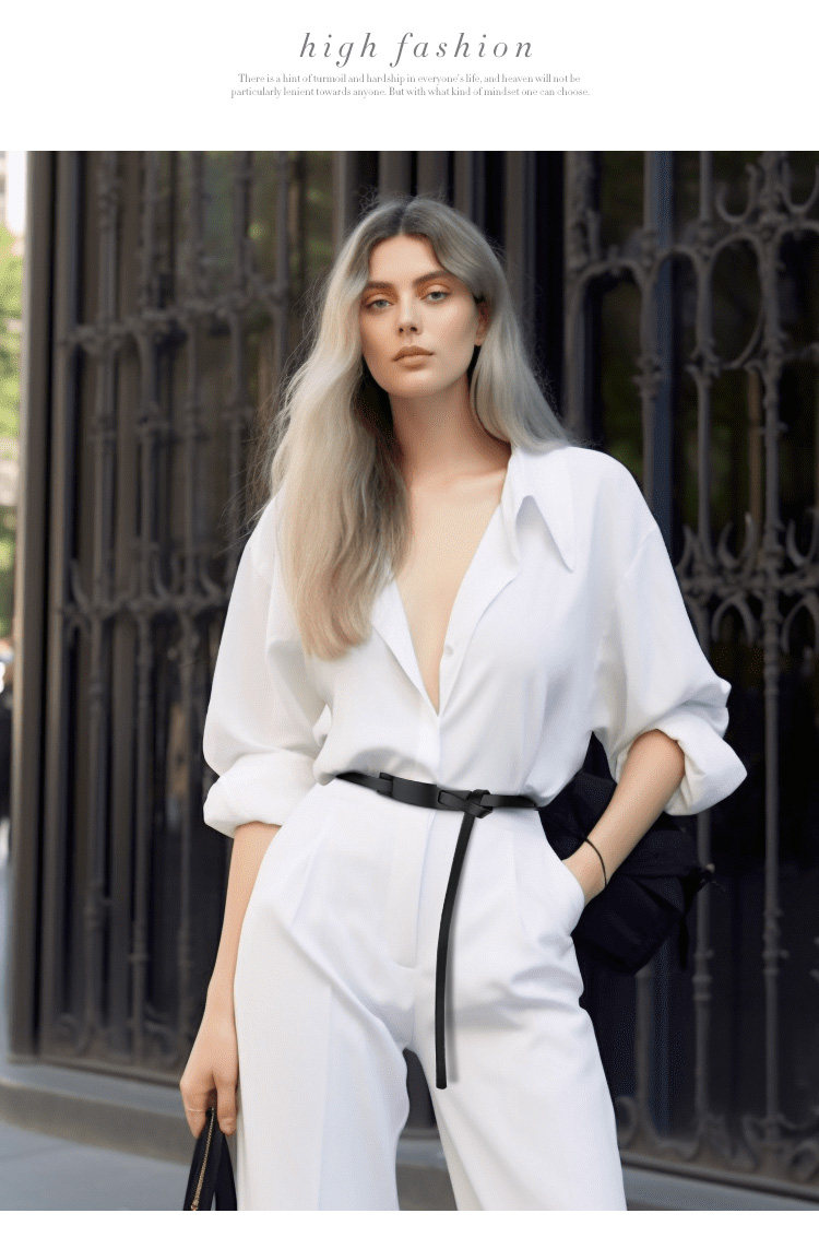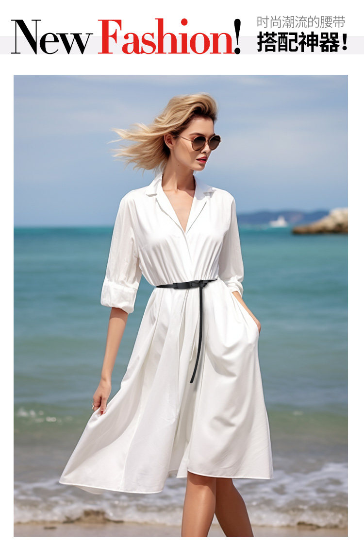 Women's Genuine Leather Belt, Top Layer Cowhide, Black, Versatile Waist Chain, Simple Decoration, Suitable for Pairing with Dresses, Waist-Cinching Thin Belt