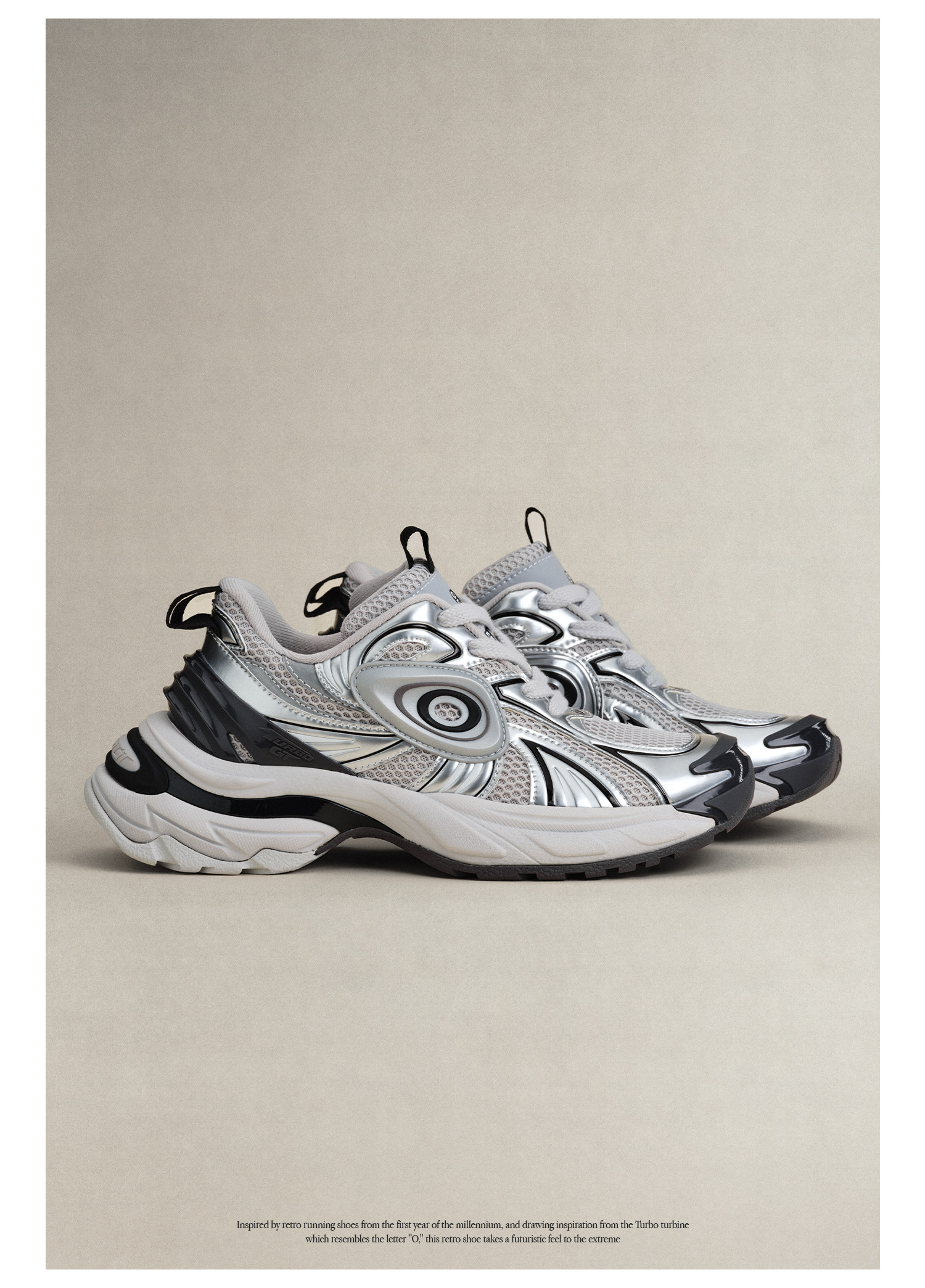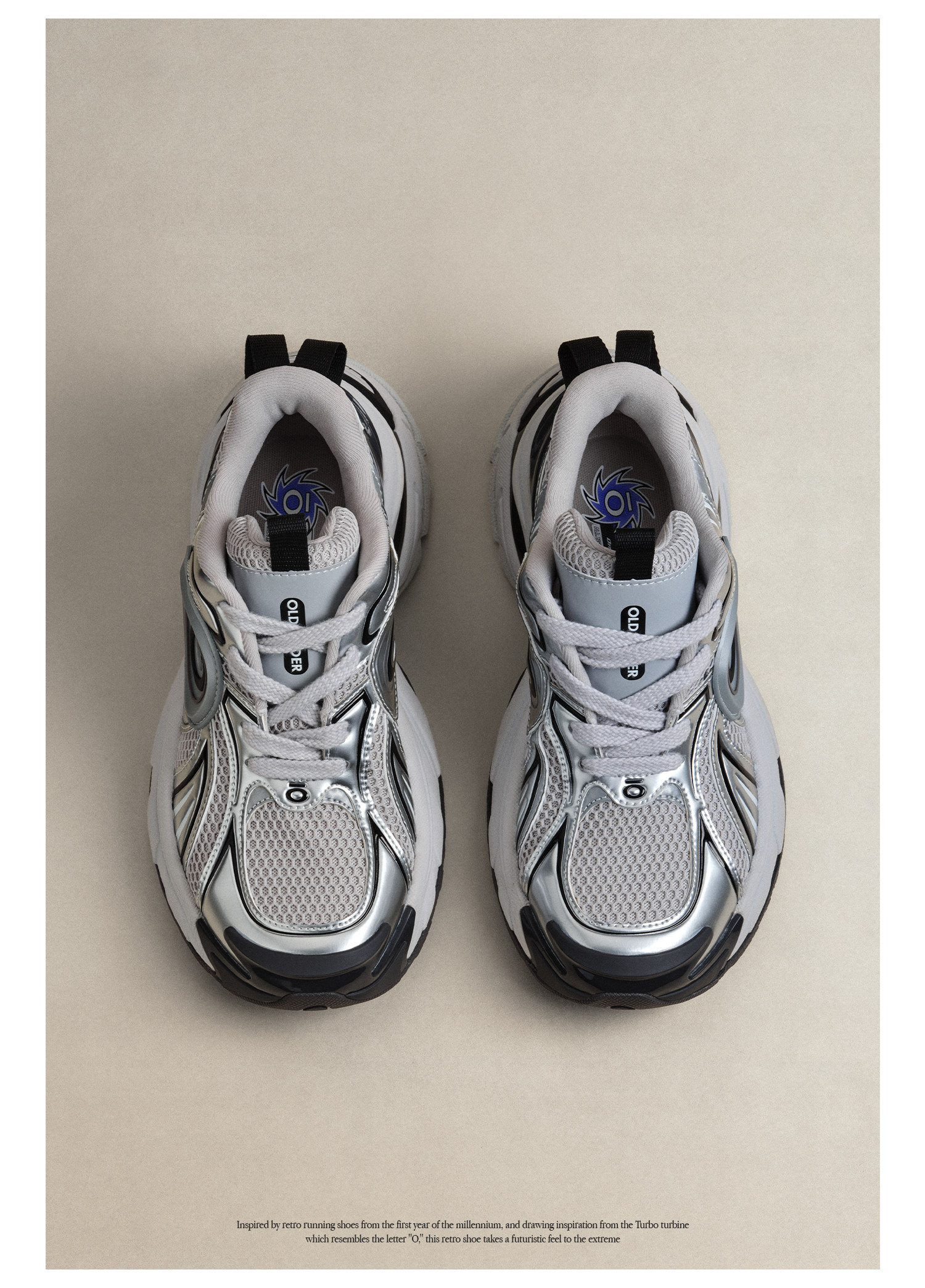 Oldorder-Turbo Gt-Metallic Silver Liquid Silver Retro Casual Versatile Dad Shoes Height Increasing Shoes for Men and Women
