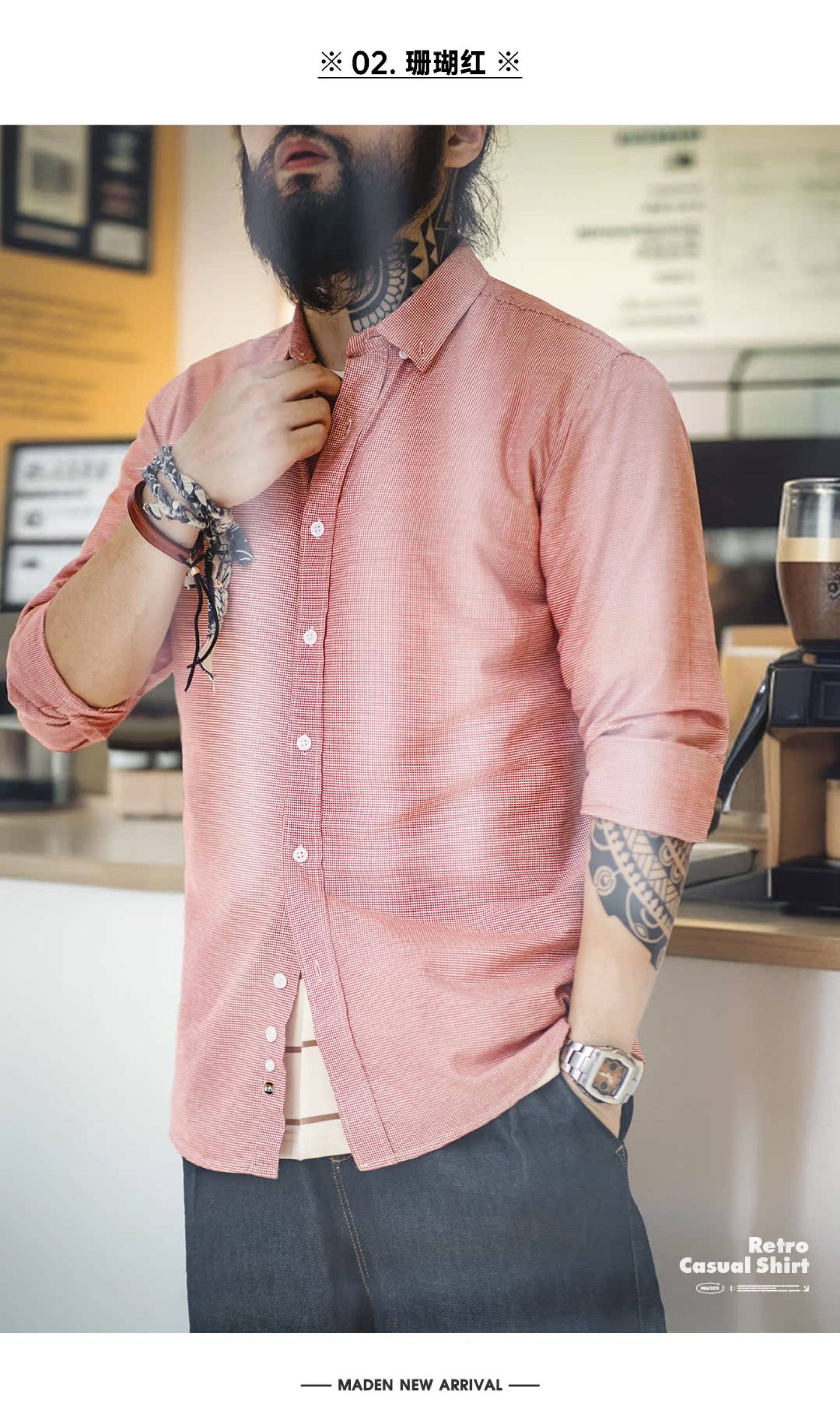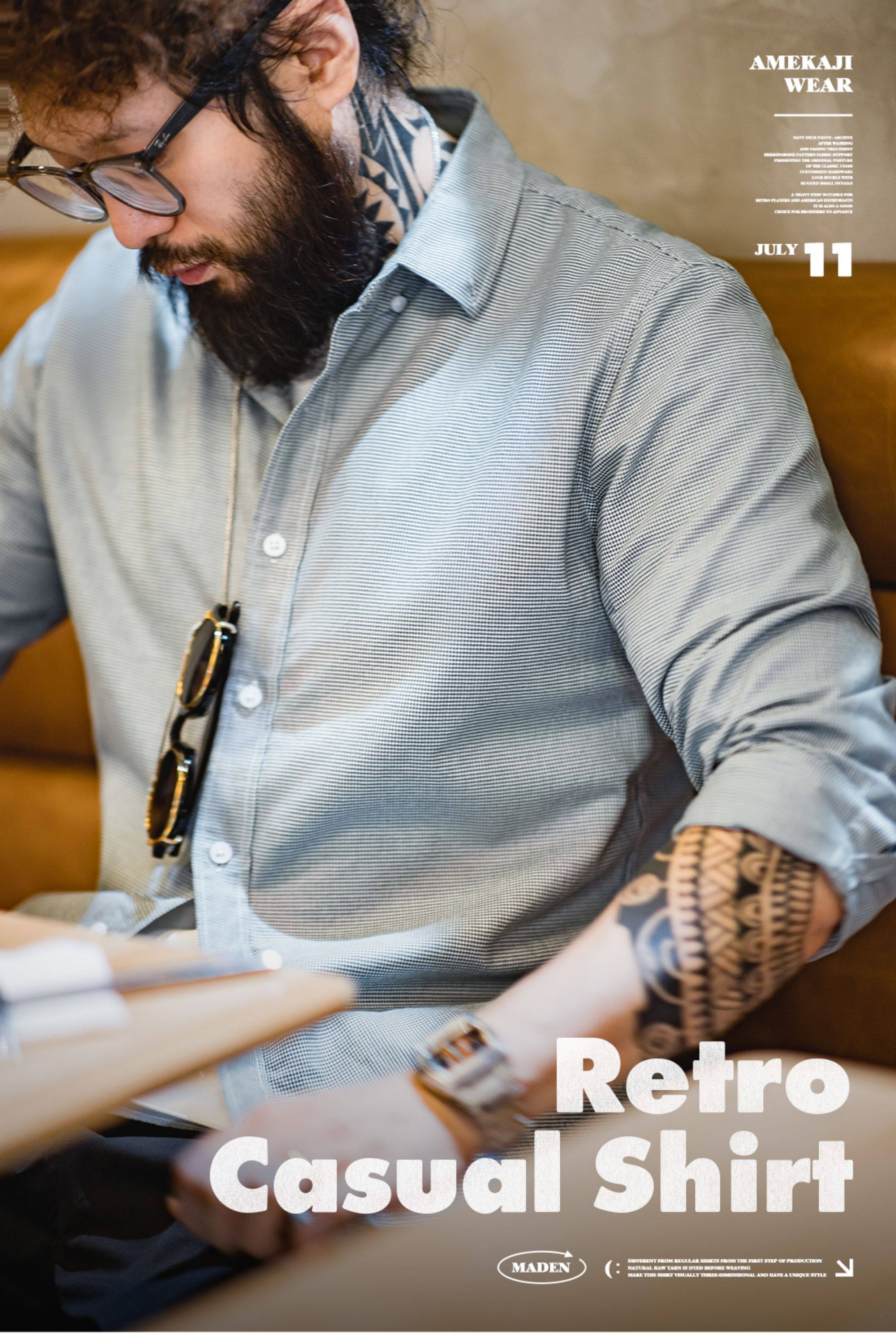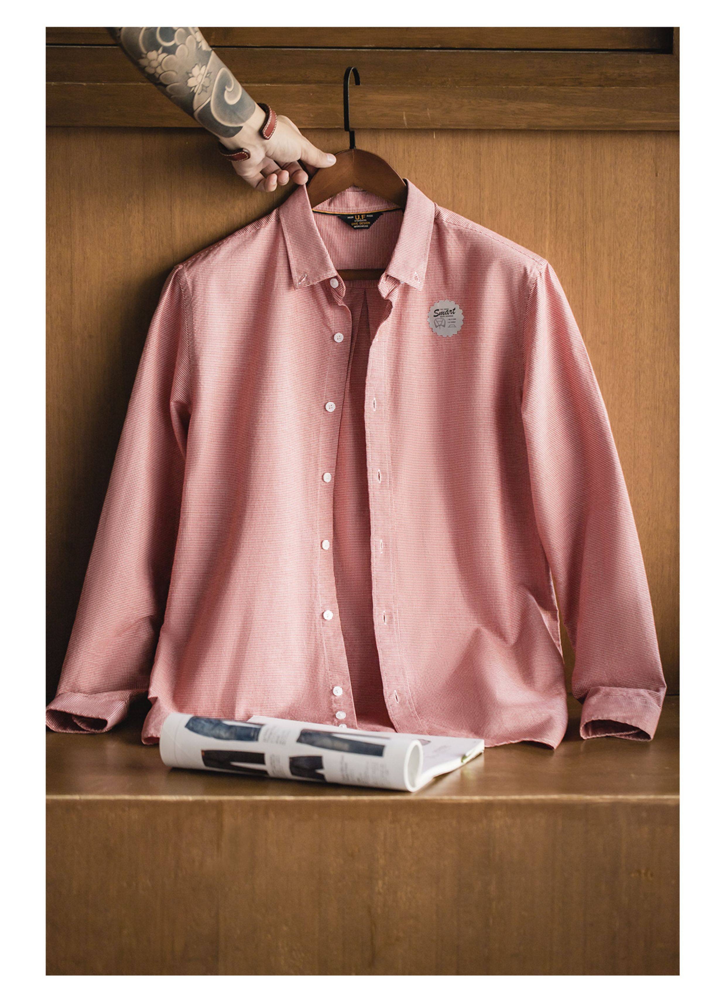 Madden Workwear American Casual Houndstooth Shirt Button-Down Pure Cotton Commuter Business Plaid Long-Sleeve Shirt for Men Spring