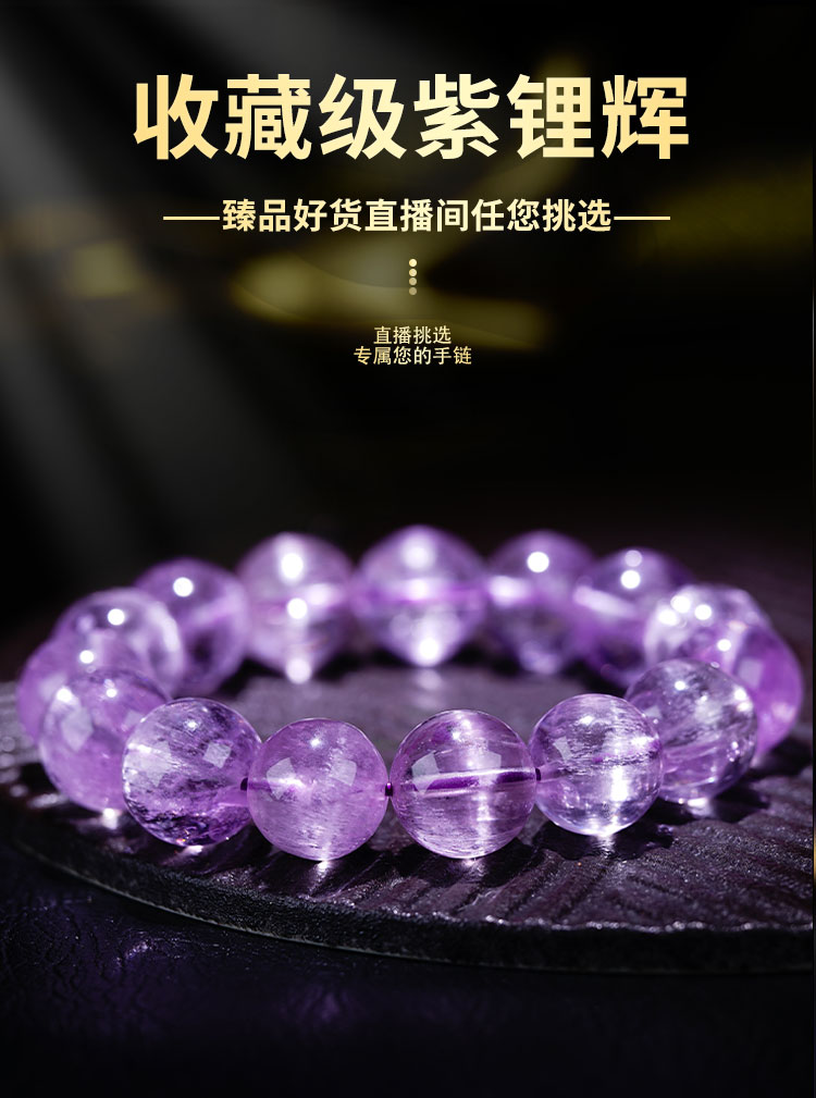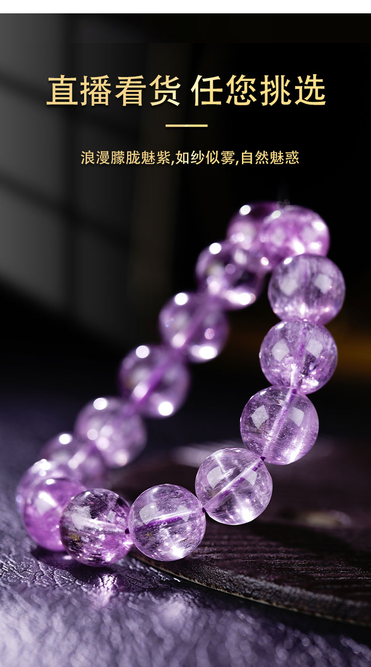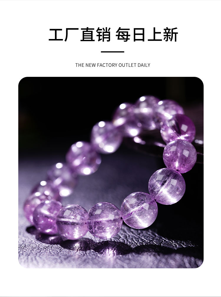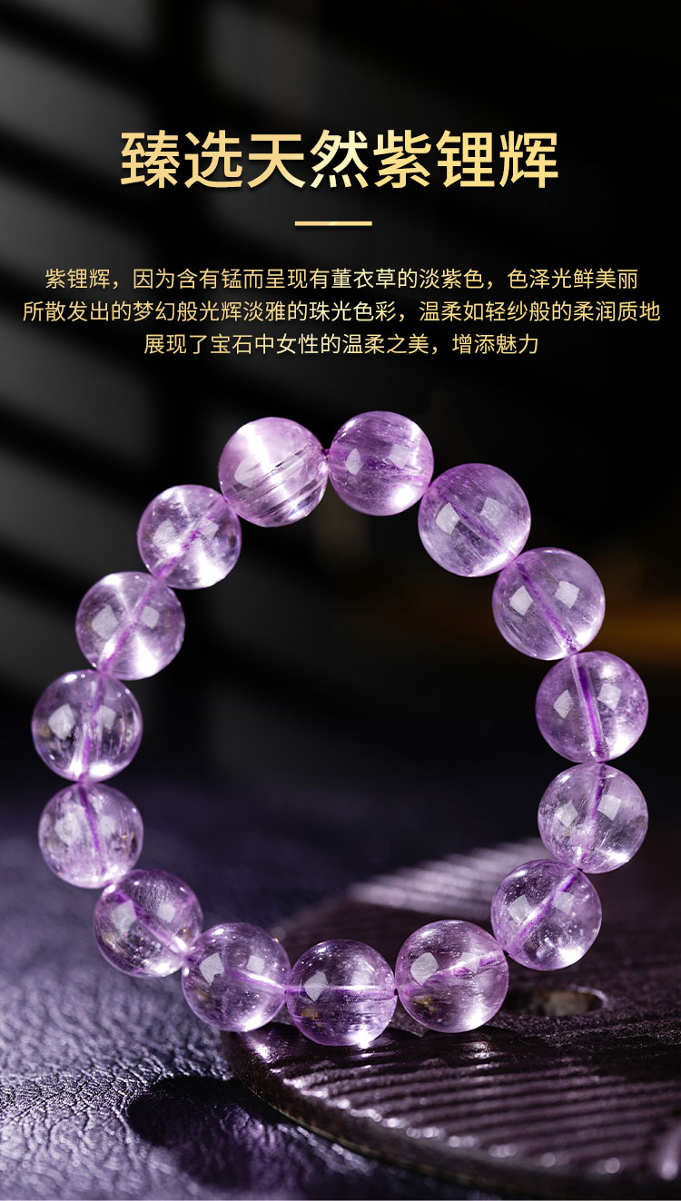 Zhonglong Jewelry Old Material Natural Brushed Ice Cat's Eye Kunzite Bracelet Single Circle Light Purple Beaded Bracelet Women's Crystal