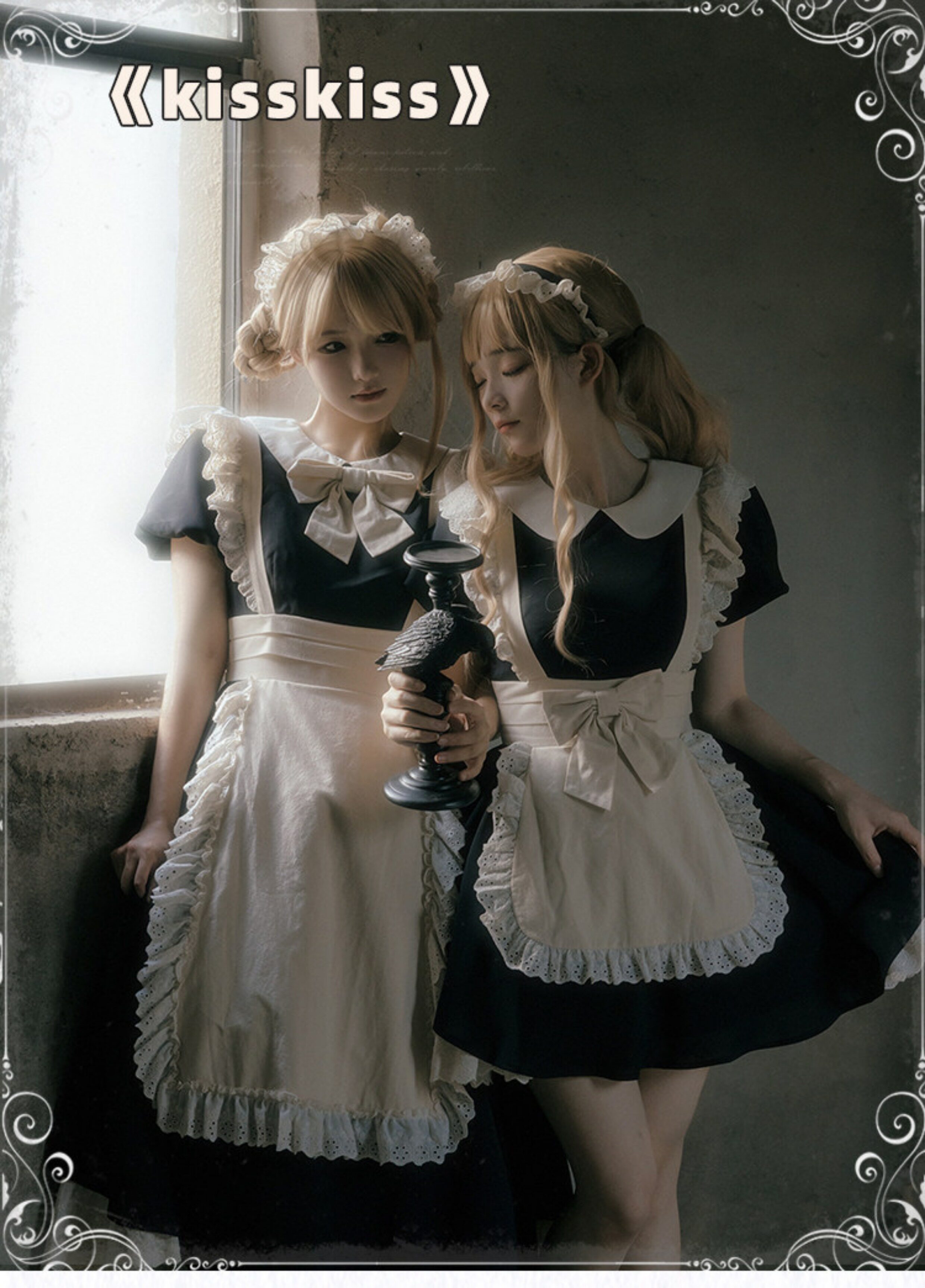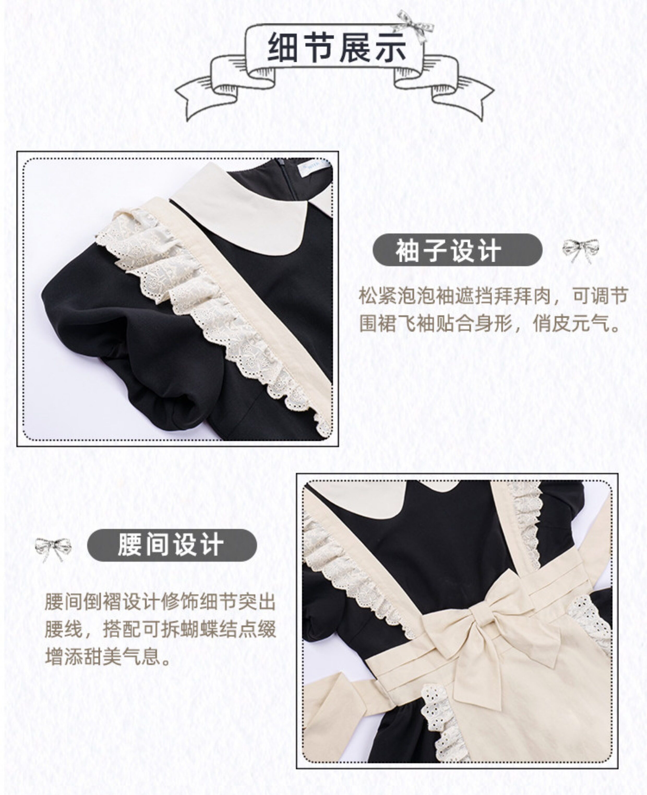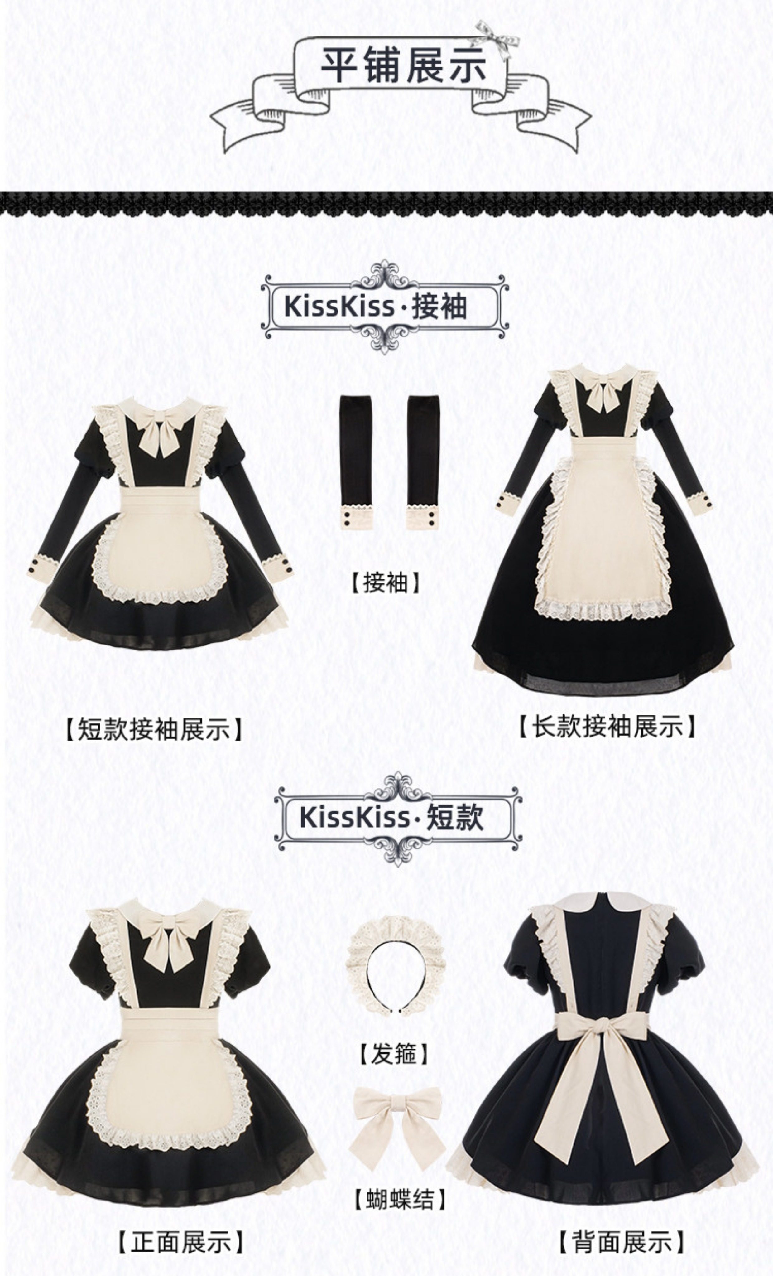 【Kisskiss】Withpuji Original Design Maid Outfit Vintage Style Pleated Lace Op with Bow Tie Lo