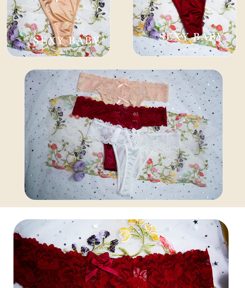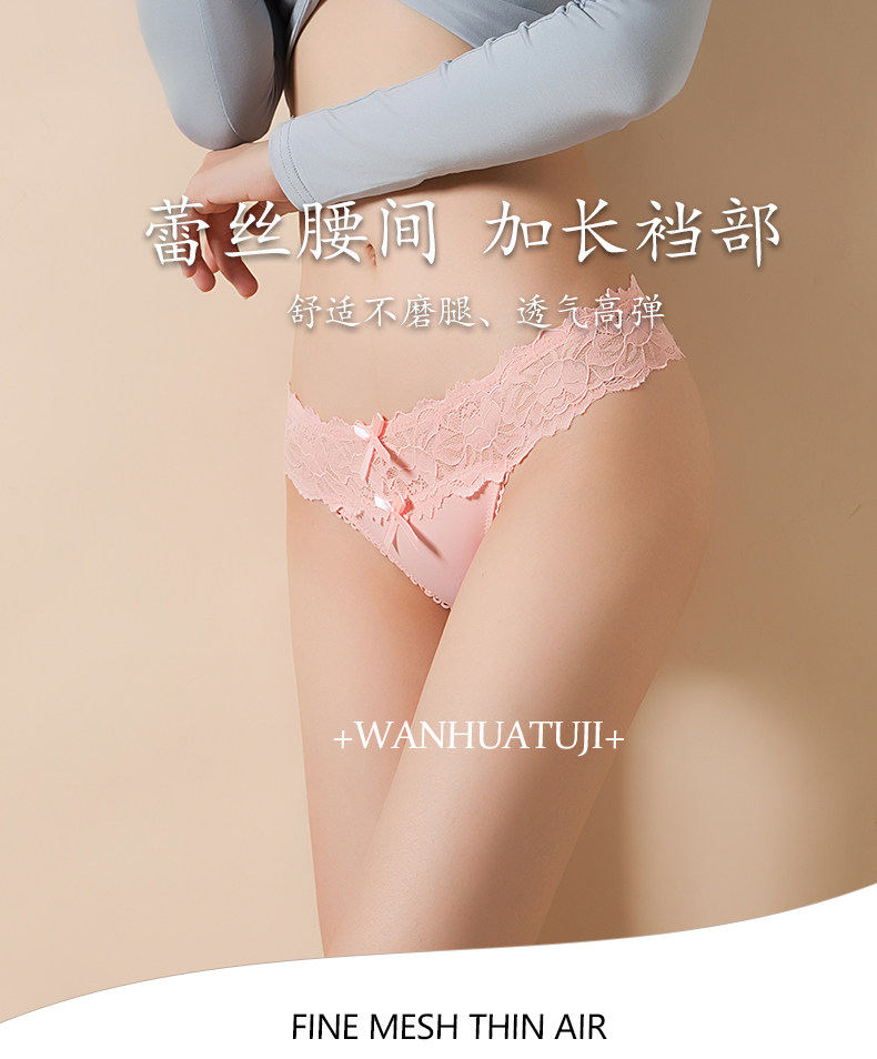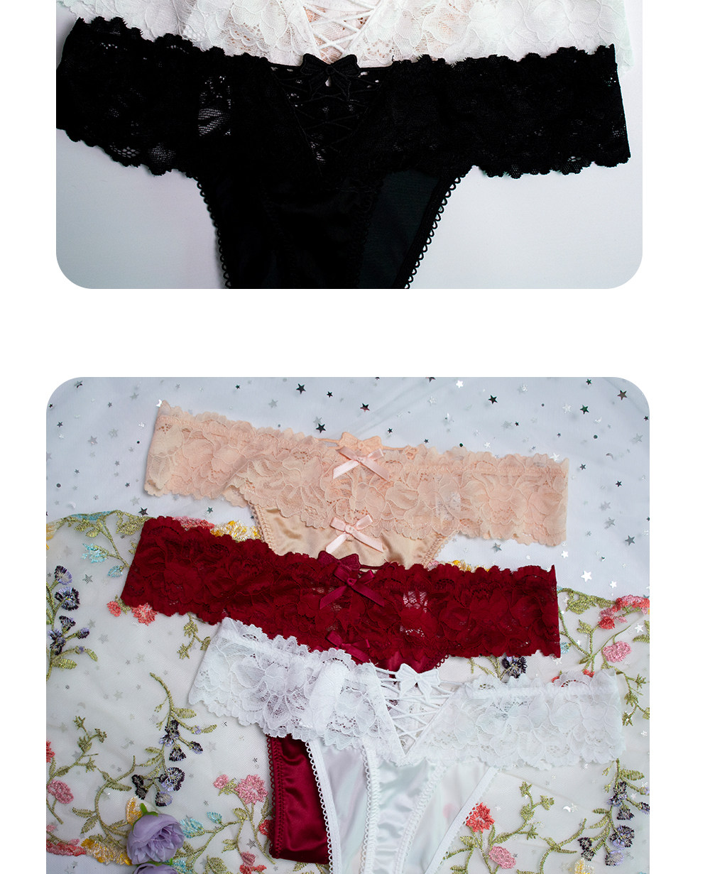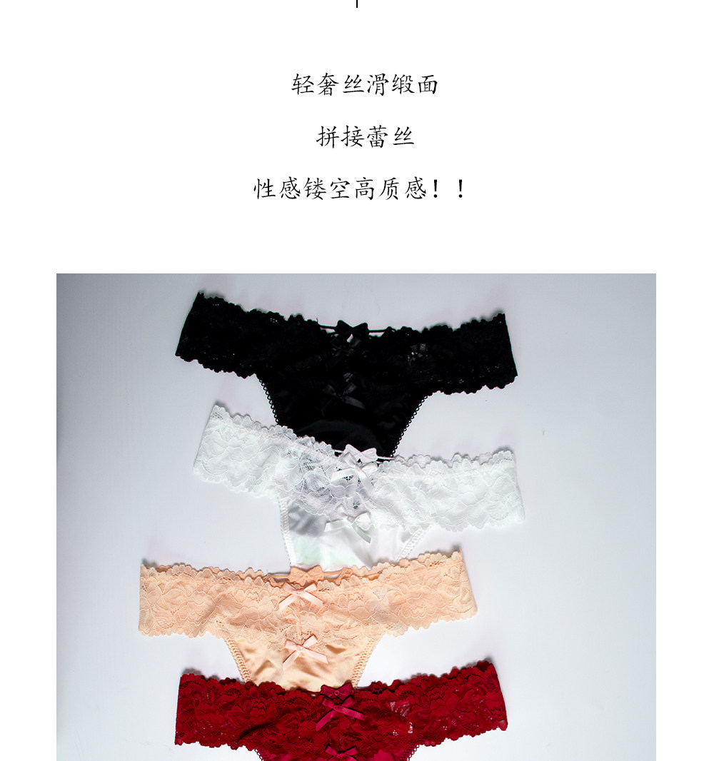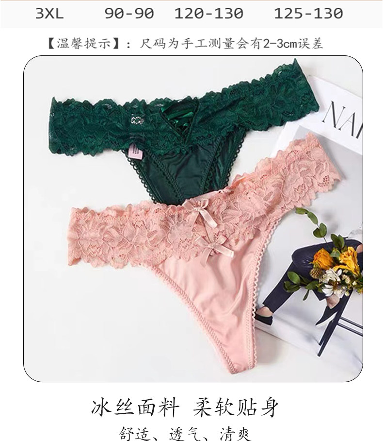 4 Pieces - European and American Plus-Size Sexy Lace Thong Panties for Women, Lace-Up Low-Waist Hollow Peach Butt Invisible T-Pants